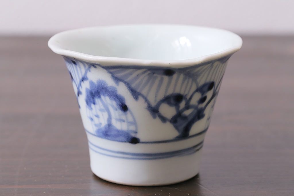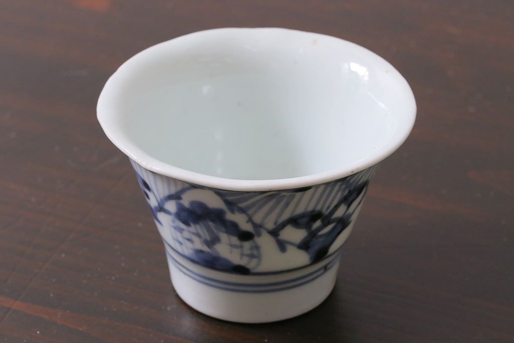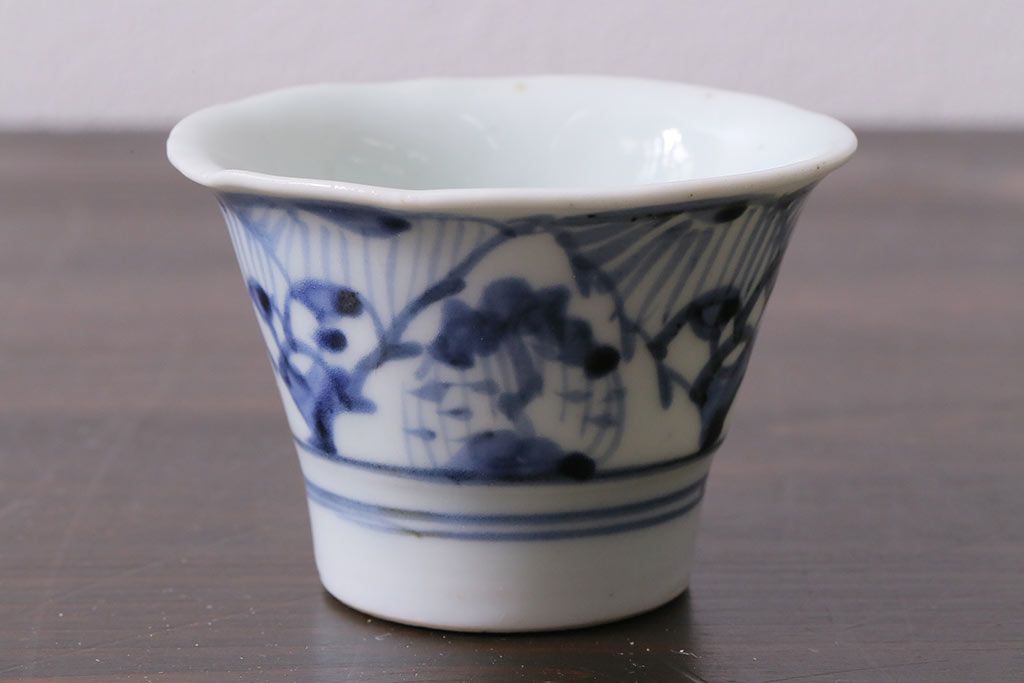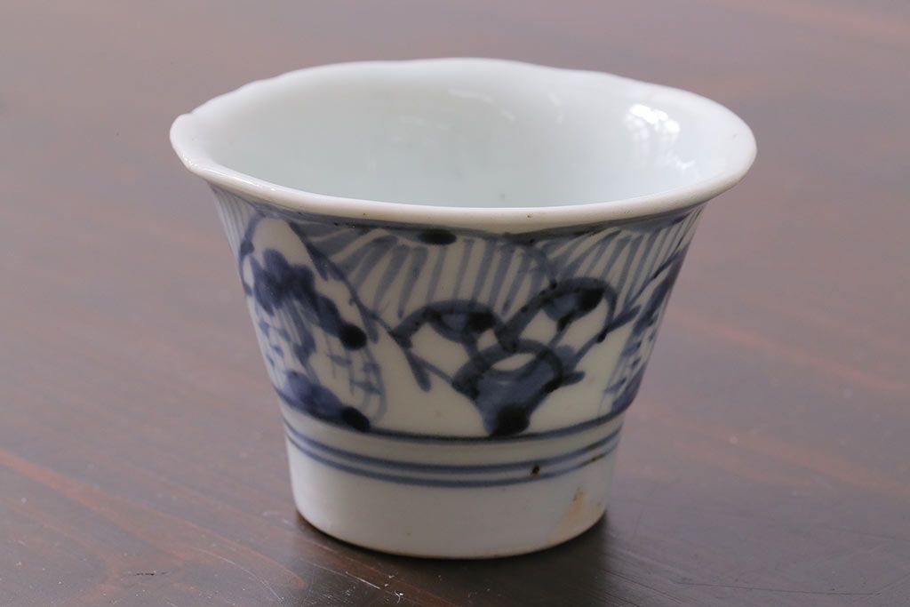 ラフジュ工房> 骨董・美術品> 骨董-陶磁器 > アンティーク雑貨 古民具・骨董 江戸期 広東形 古伊万里 染付蕎麦猪口(R-037223)