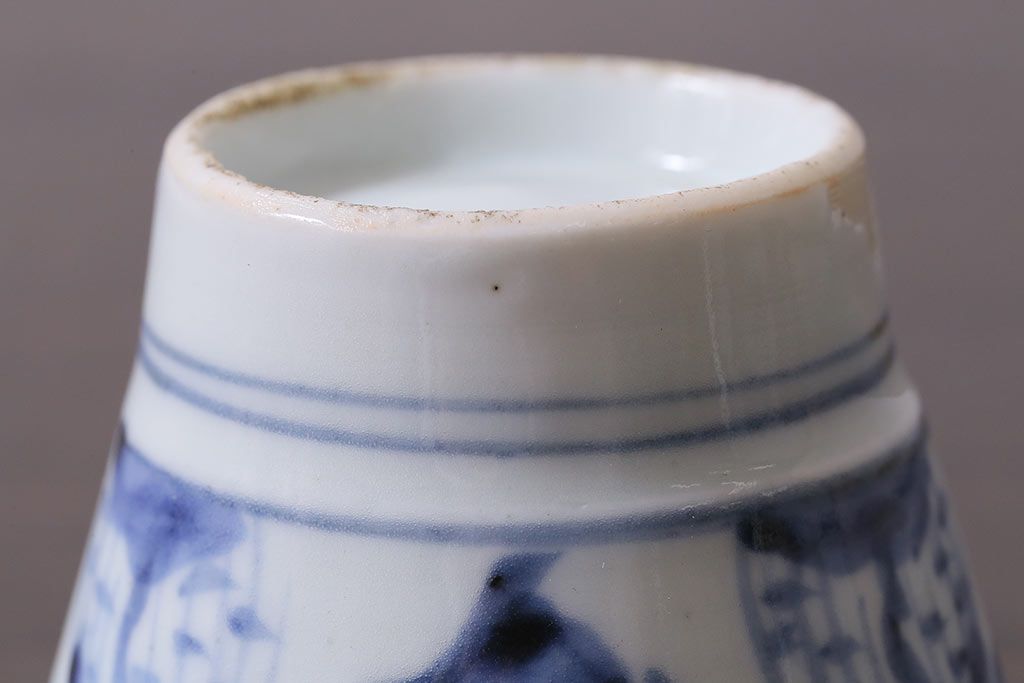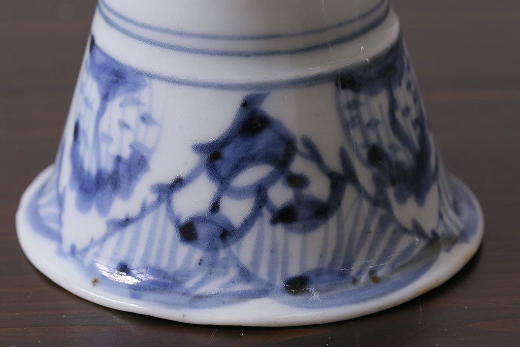 アンティーク雑貨 古民具・骨董 江戸期 広東形 古伊万里 染付蕎麦猪口(R-037223)