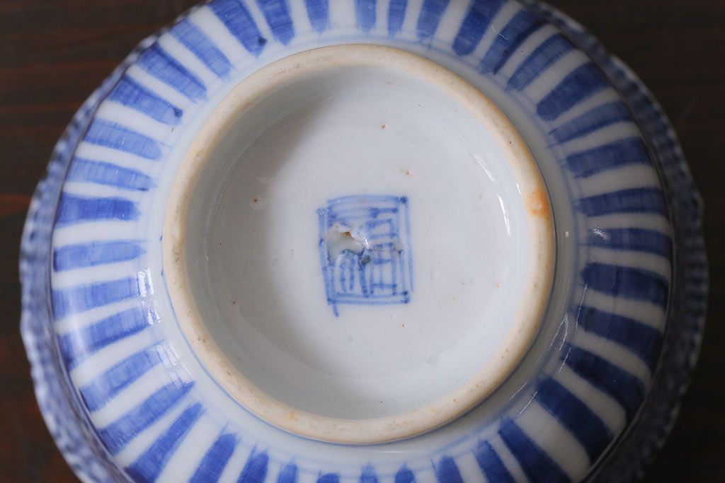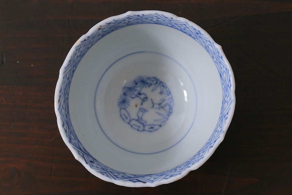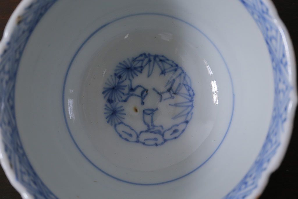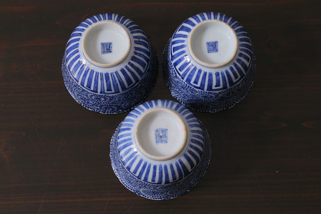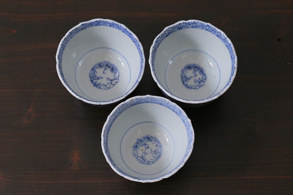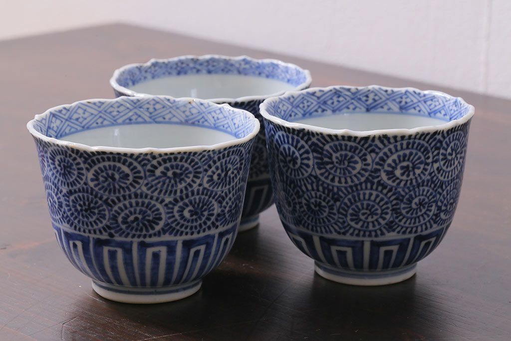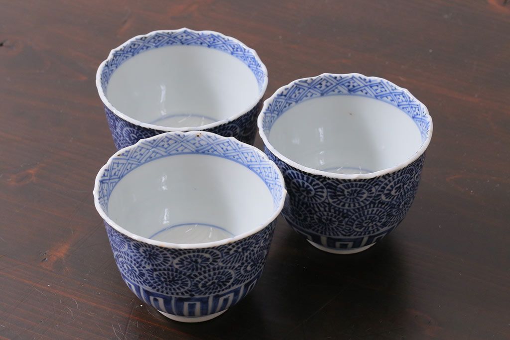 アンティーク雑貨 古民具・骨董 江戸後期 伊万里 蛸唐草 角福 蕎麦猪口3個セット(R-037224)