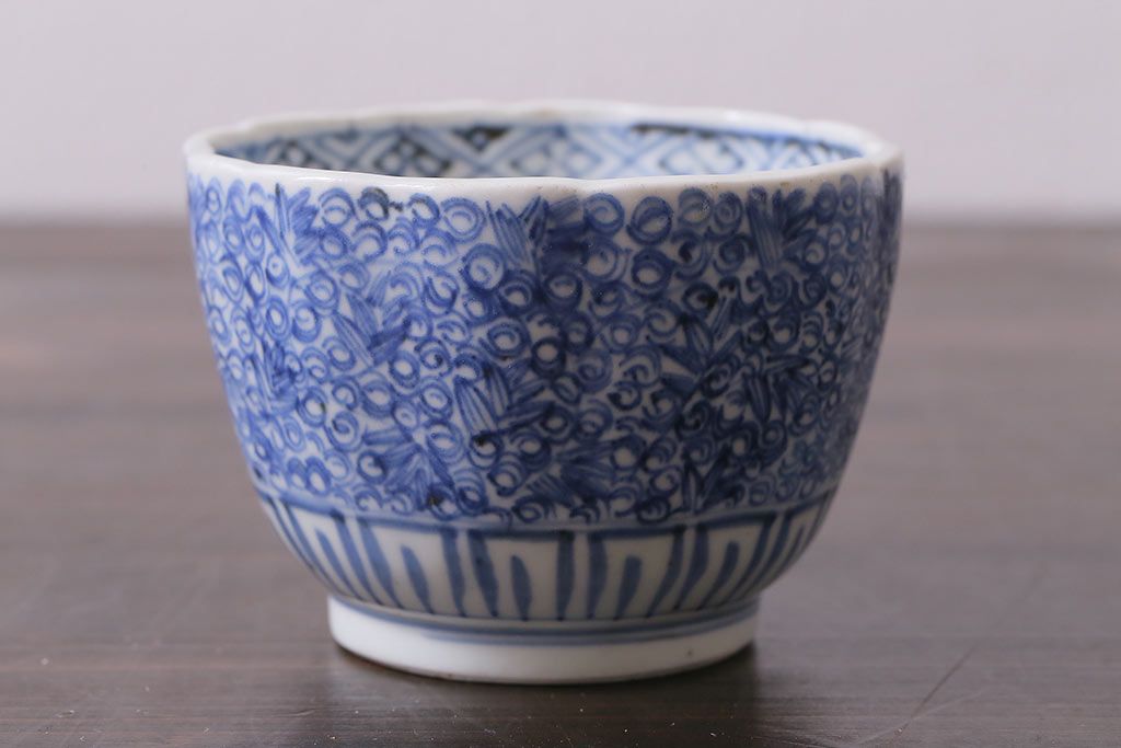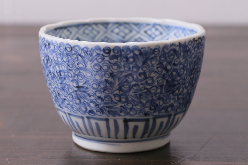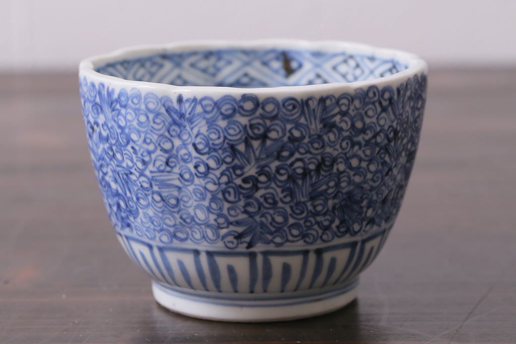 アンティーク雑貨 古民具・骨董 江戸期 古伊万里 微塵唐草蕎麦猪口(成化年製)(R-037226)