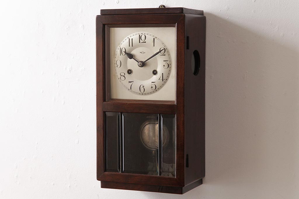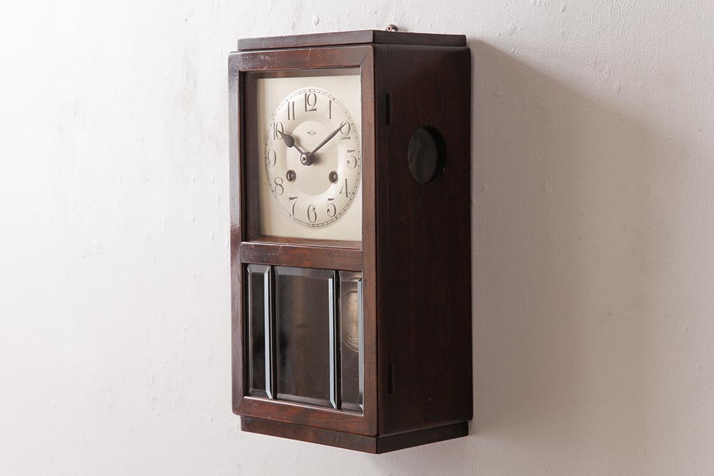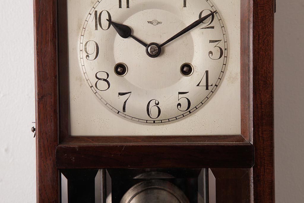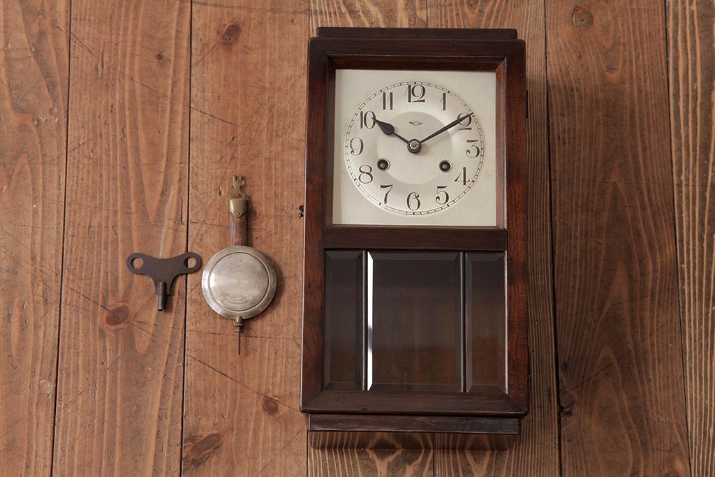 時計> 掛け時計 > アンティーク雑貨 ドイツ キンツレ(KIENZLE) シンプルモダンな手巻き式振り子時計(柱時計、掛け時計、古時計)(R-037643)