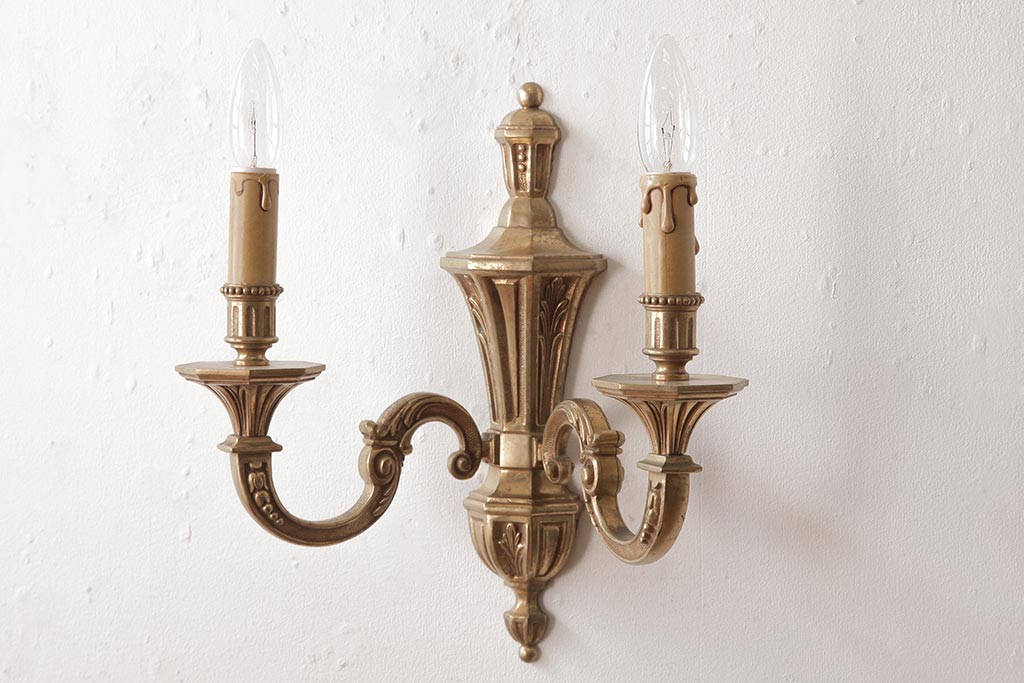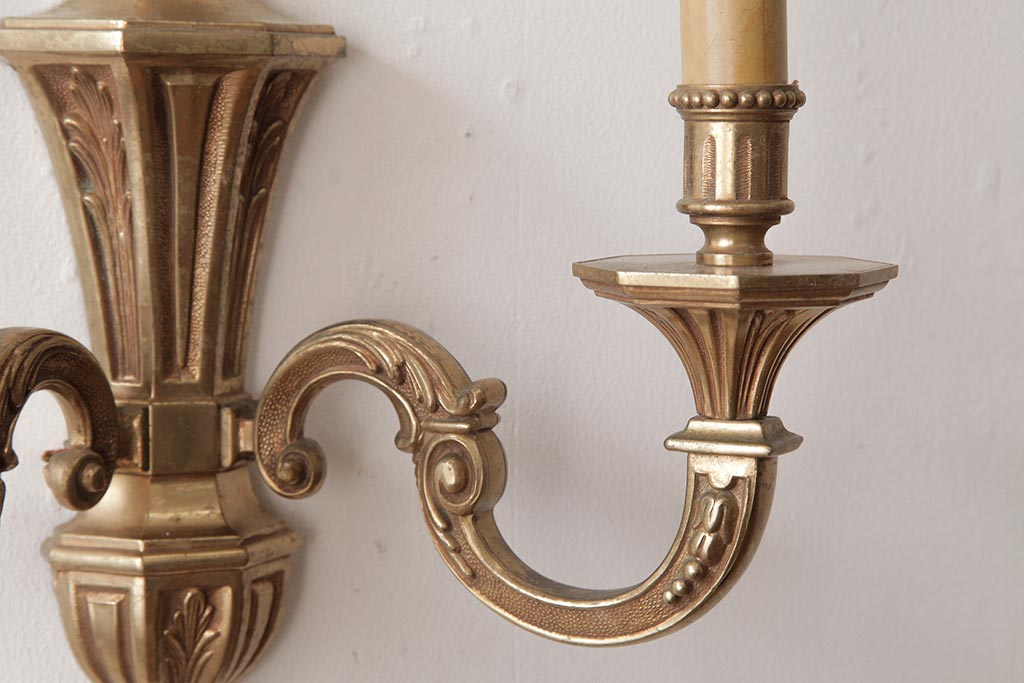 ビンテージ照明 ルイ16世様式 真鍮製 フランスヴィンテージのクラシカルなウォールランプ(壁掛けシャンデリア、壁付け照明)(R-037590)