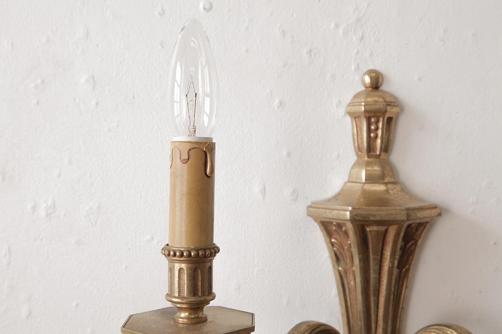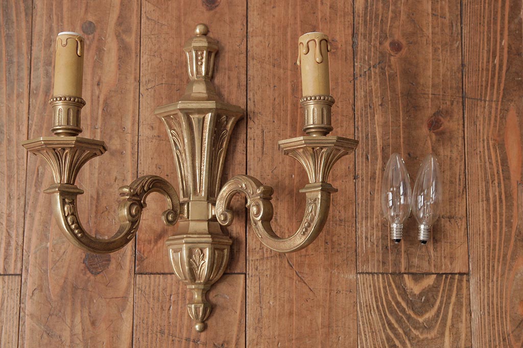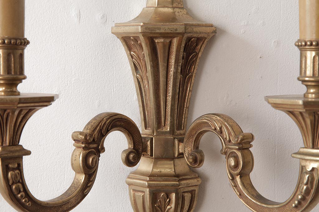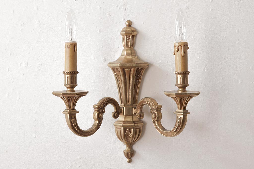 照明・ランプ> シャンデリア > ビンテージ照明 ルイ16世様式 真鍮製 フランスヴィンテージのクラシカルなウォールランプ(壁掛けシャンデリア、壁付け照明)(R-037590)