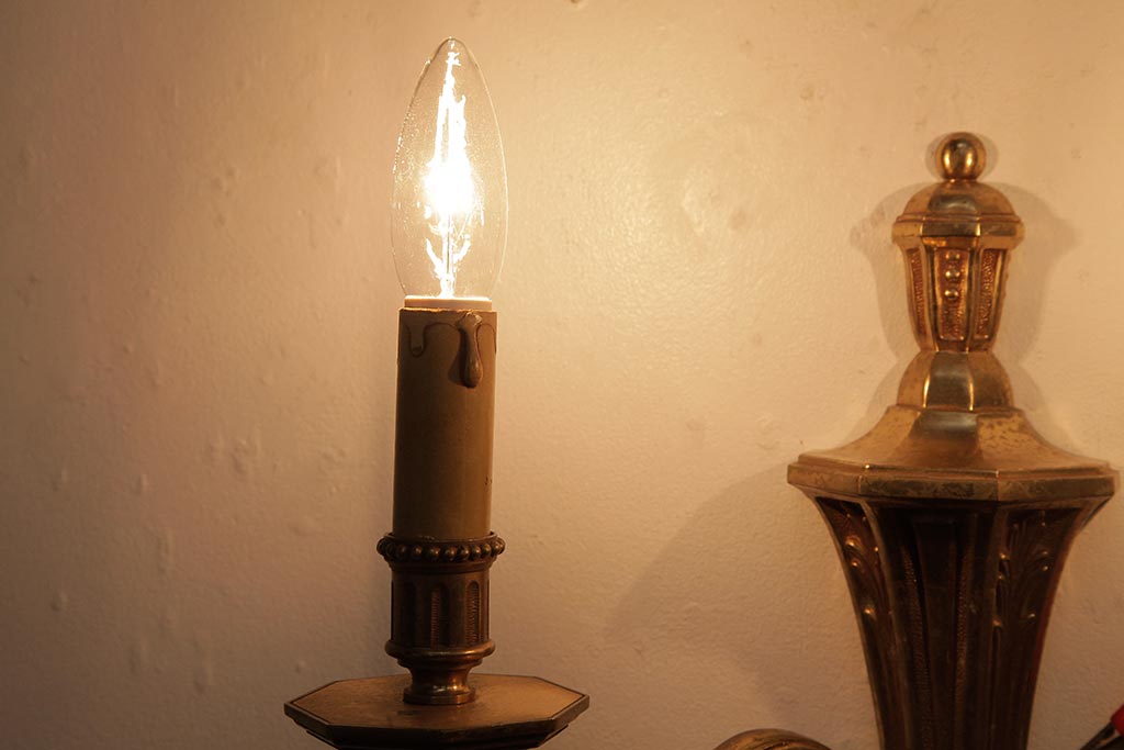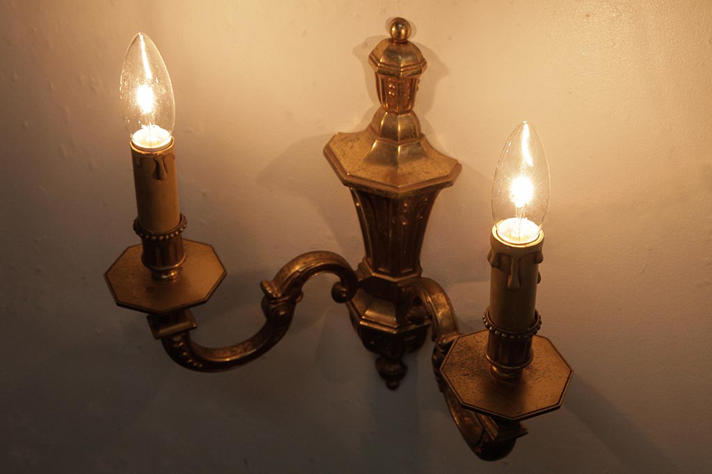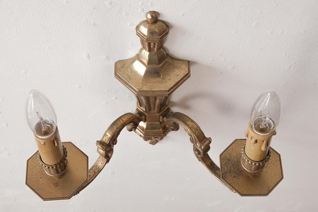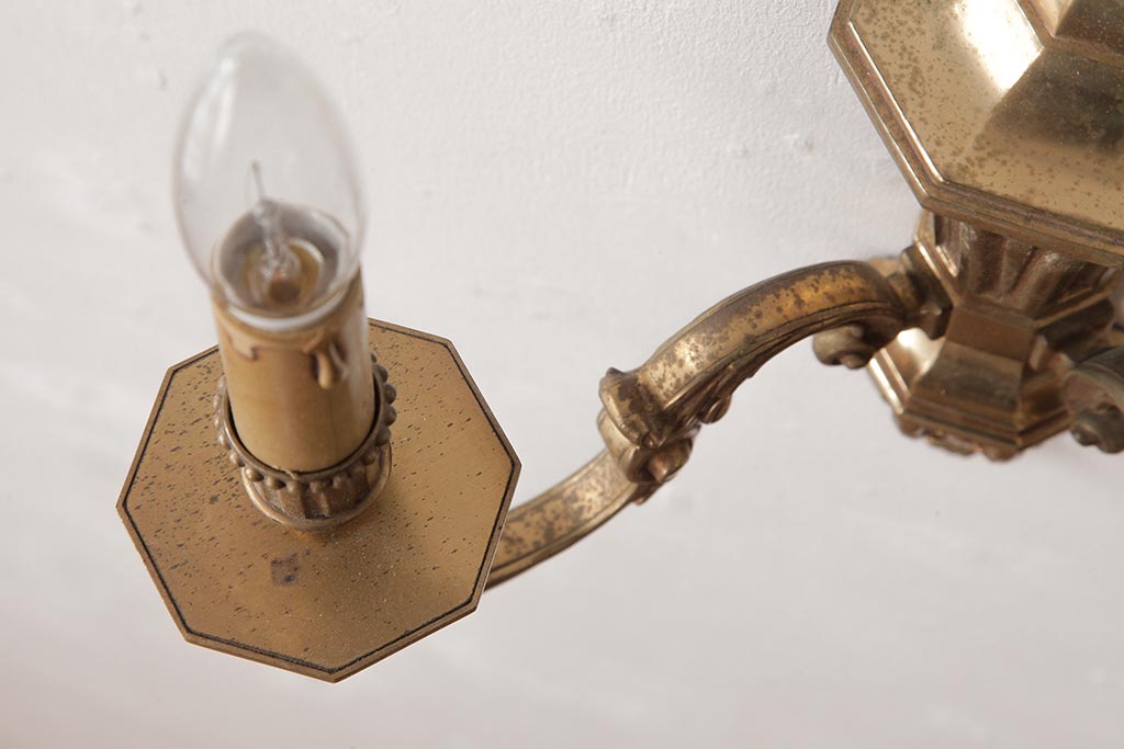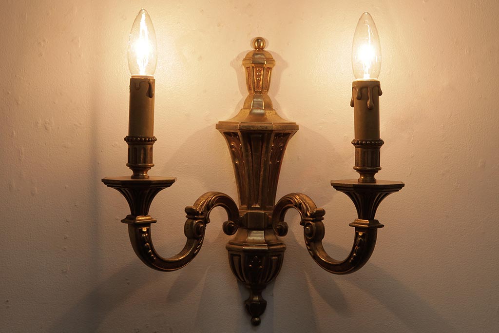 照明・ランプ> シャンデリア > ビンテージ照明 ルイ16世様式 真鍮製 フランスヴィンテージのクラシカルなウォールランプ(壁掛けシャンデリア、壁付け照明)(R-037590)