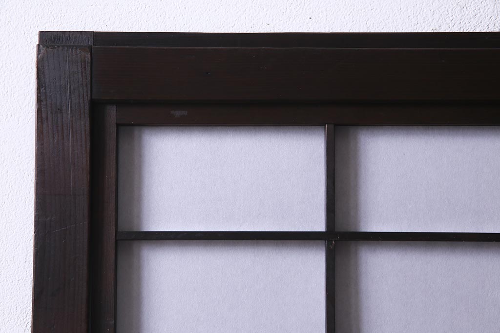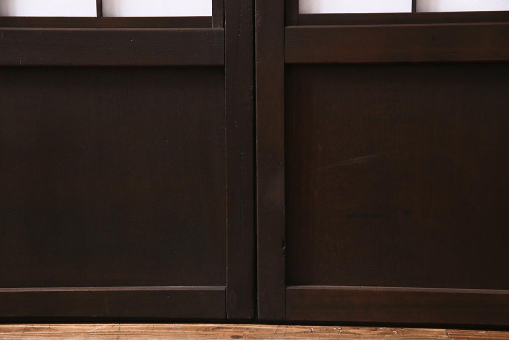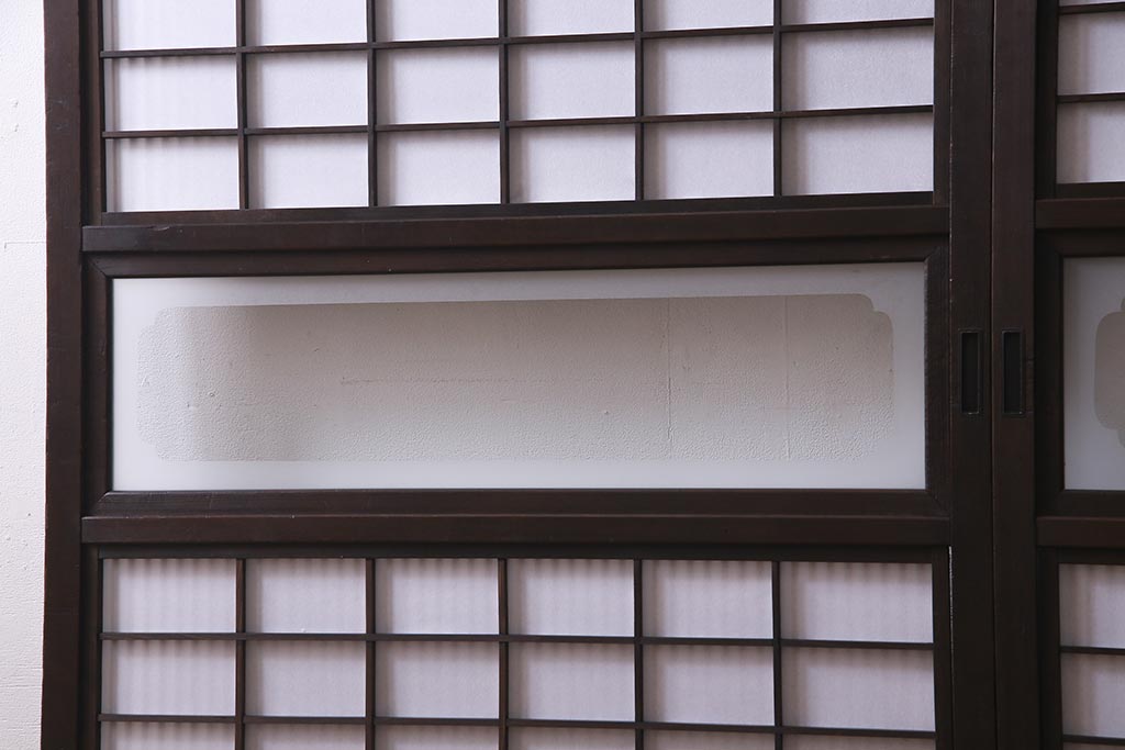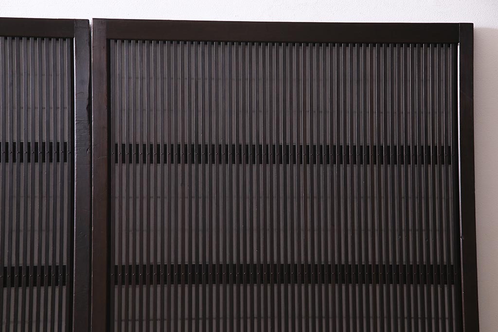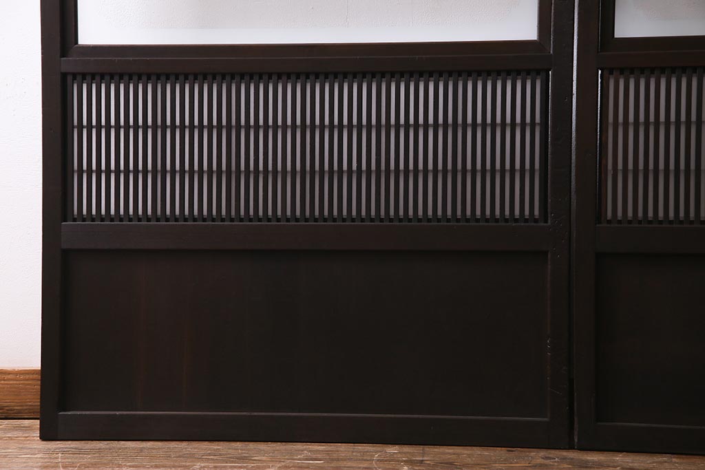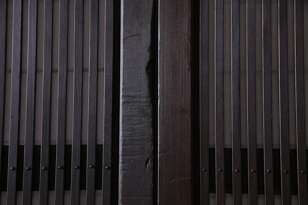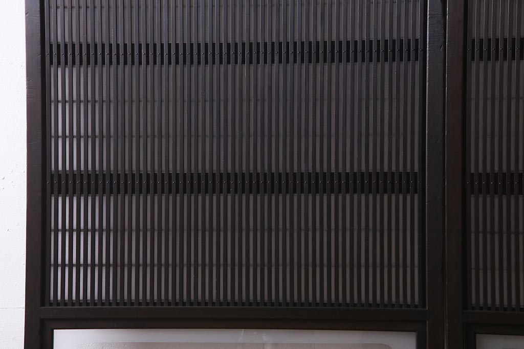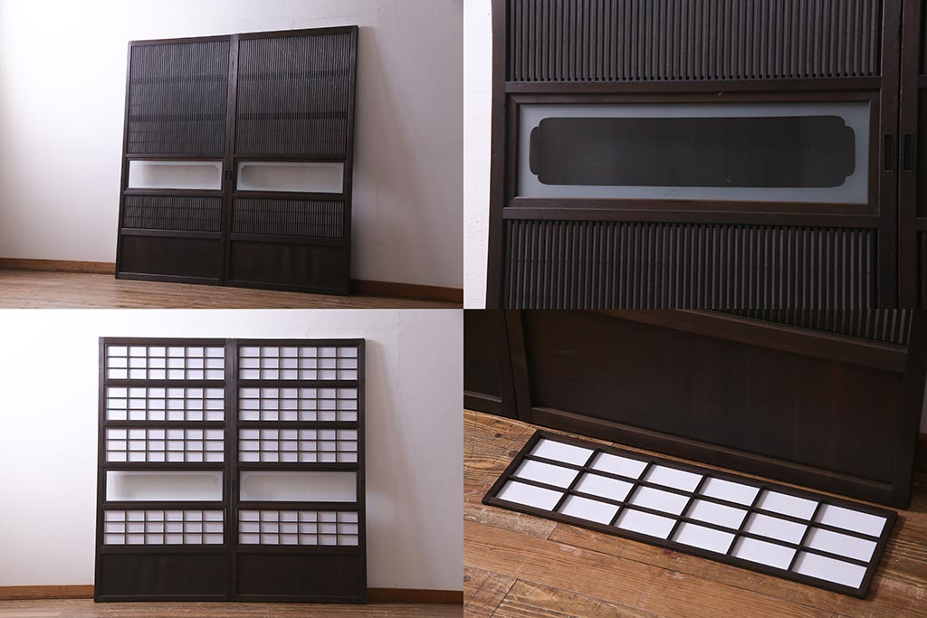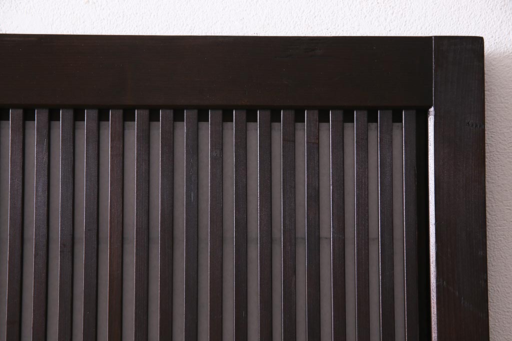 ドア・建具> 障子戸 > アンティーク建具 和製アンティーク 大正昭和初期 裏障子付き ガラス入り 縦格子が美しいシックでモダンな雰囲気の格子戸2枚セット(引き戸、障子戸、建具)(R-037745)