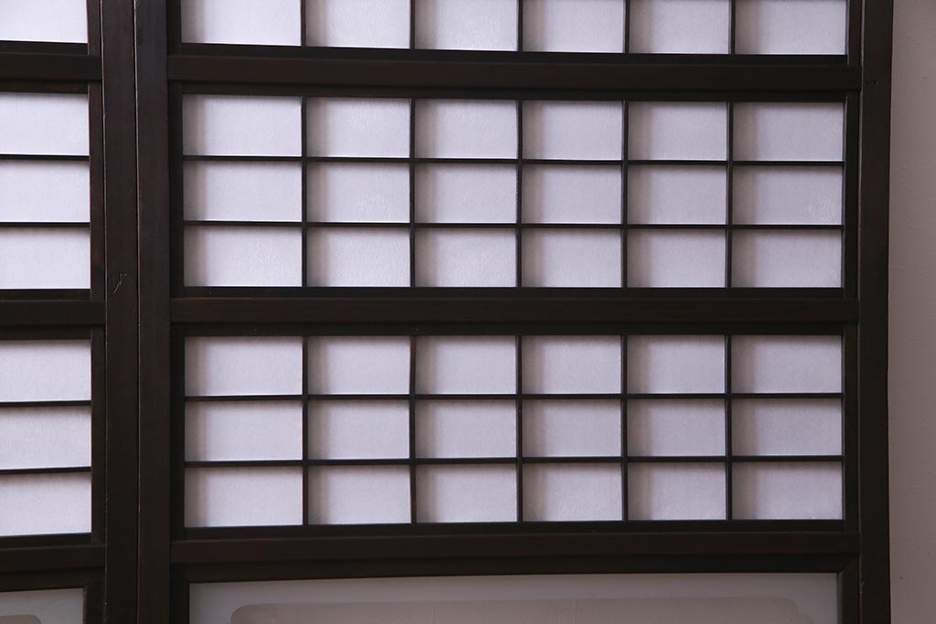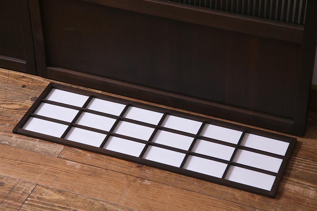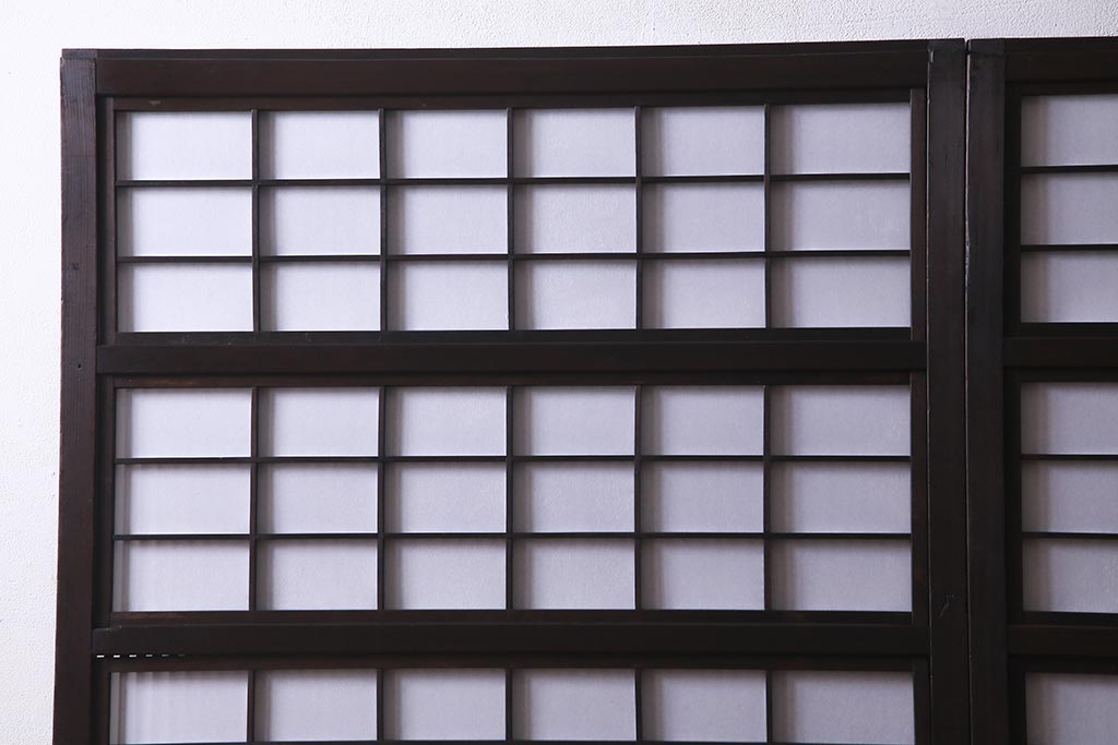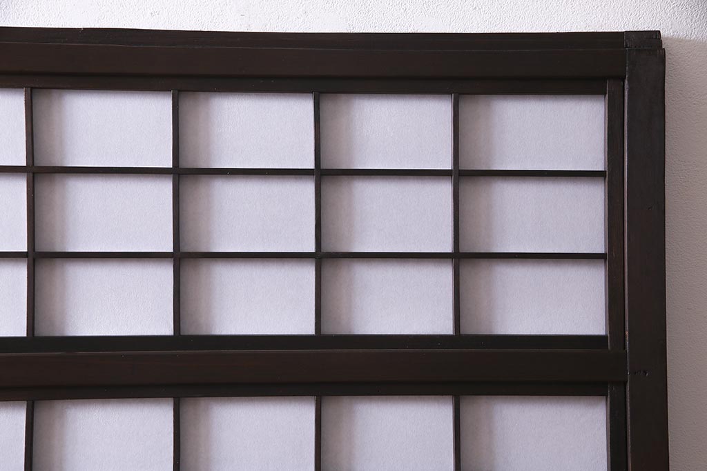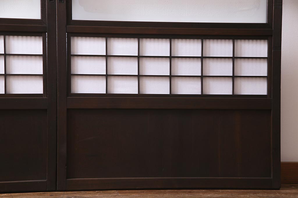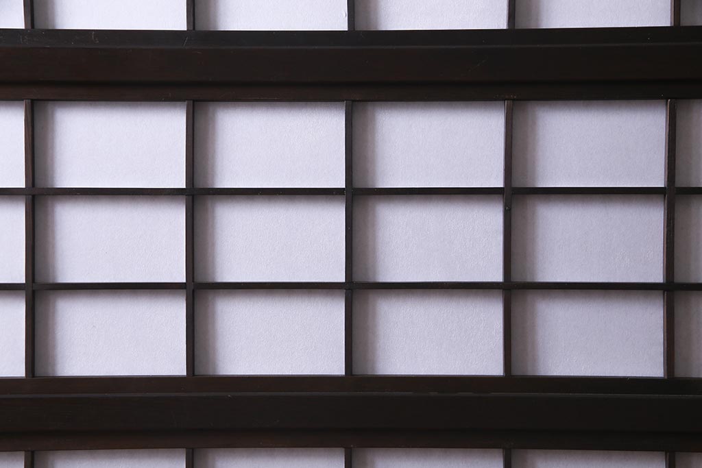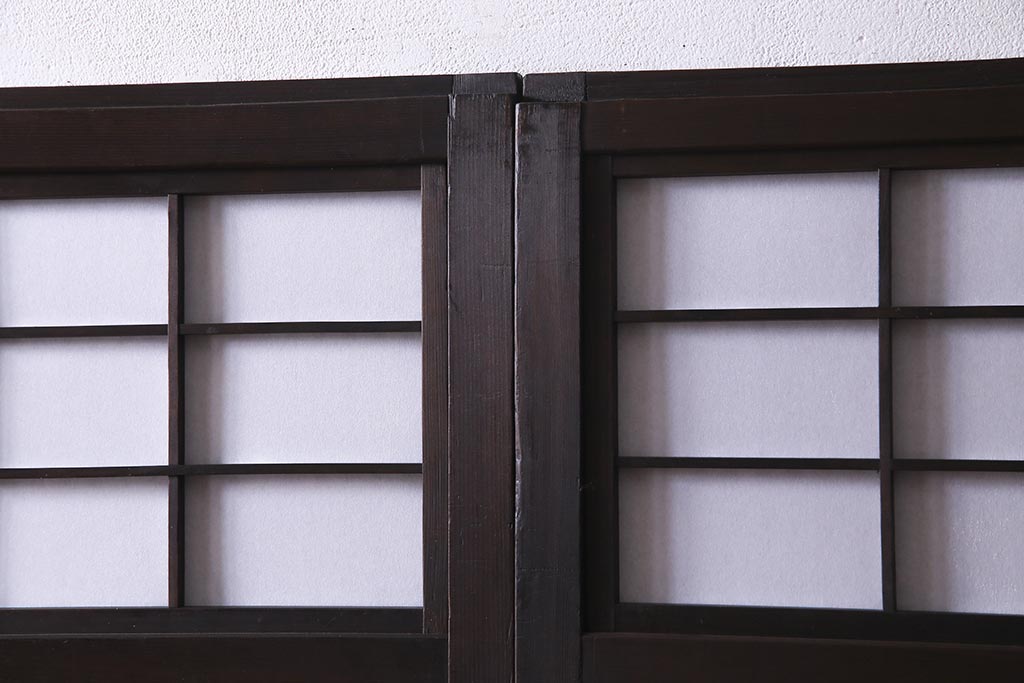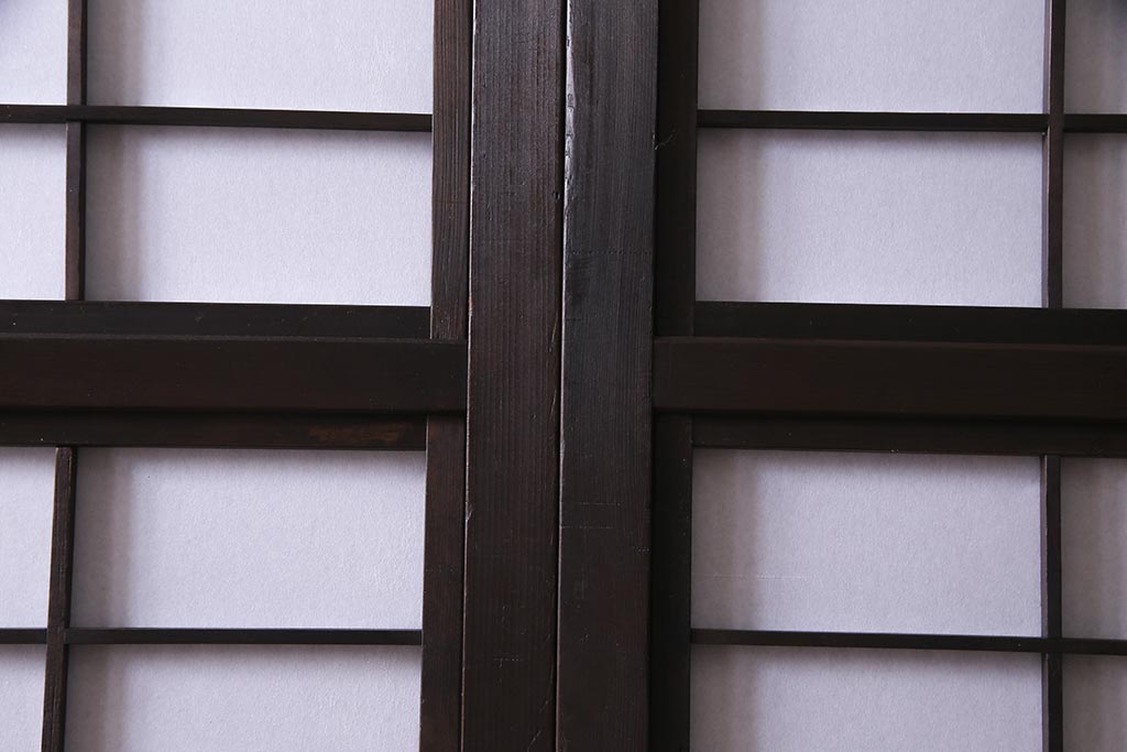 ドア・建具> 障子戸 > アンティーク建具 和製アンティーク 大正昭和初期 裏障子付き ガラス入り 縦格子が美しいシックでモダンな雰囲気の格子戸2枚セット(引き戸、障子戸、建具)(R-037745)