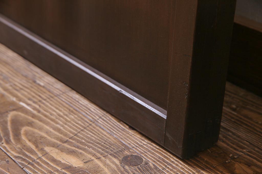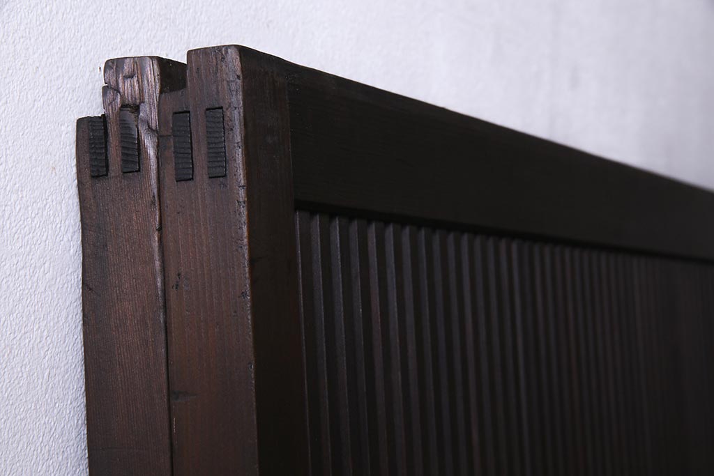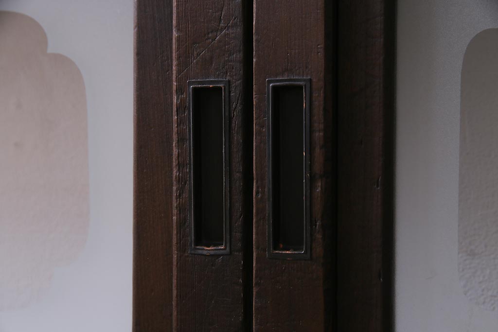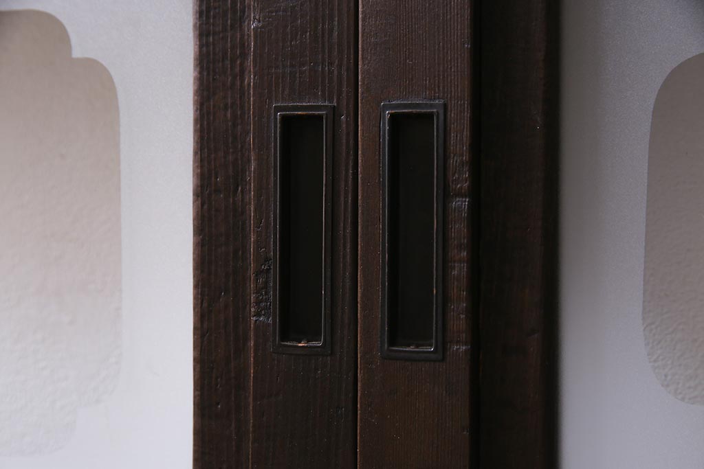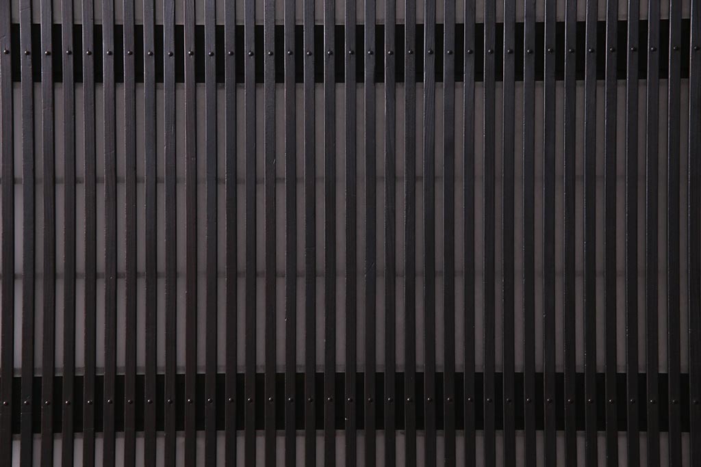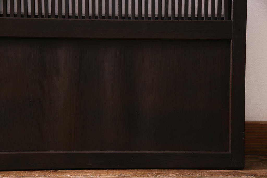 ドア・建具> 引き戸 > アンティーク建具 和製アンティーク 大正昭和初期 裏障子付き ガラス入り 縦格子が美しいシックでモダンな雰囲気の格子戸2枚セット(引き戸、障子戸、建具)(R-037745)