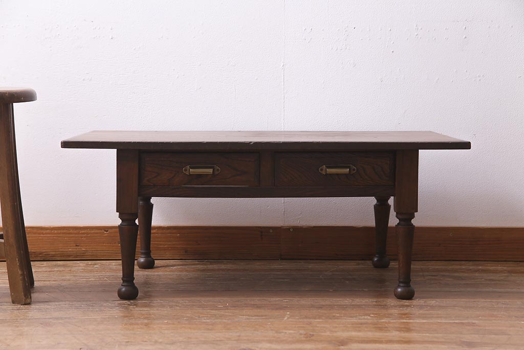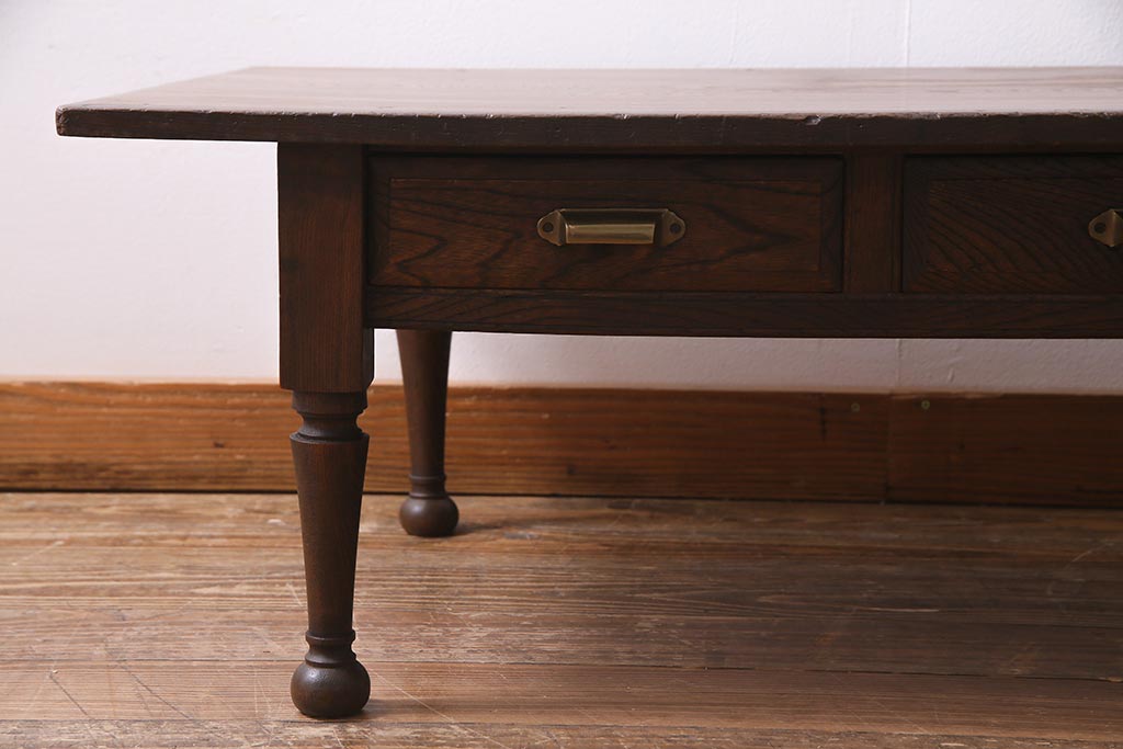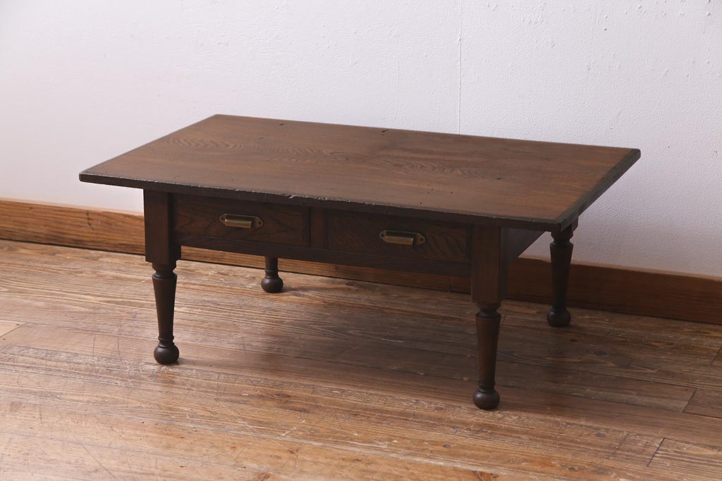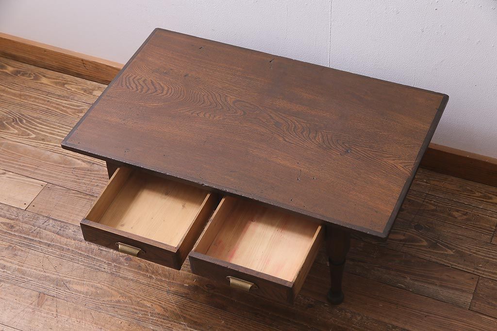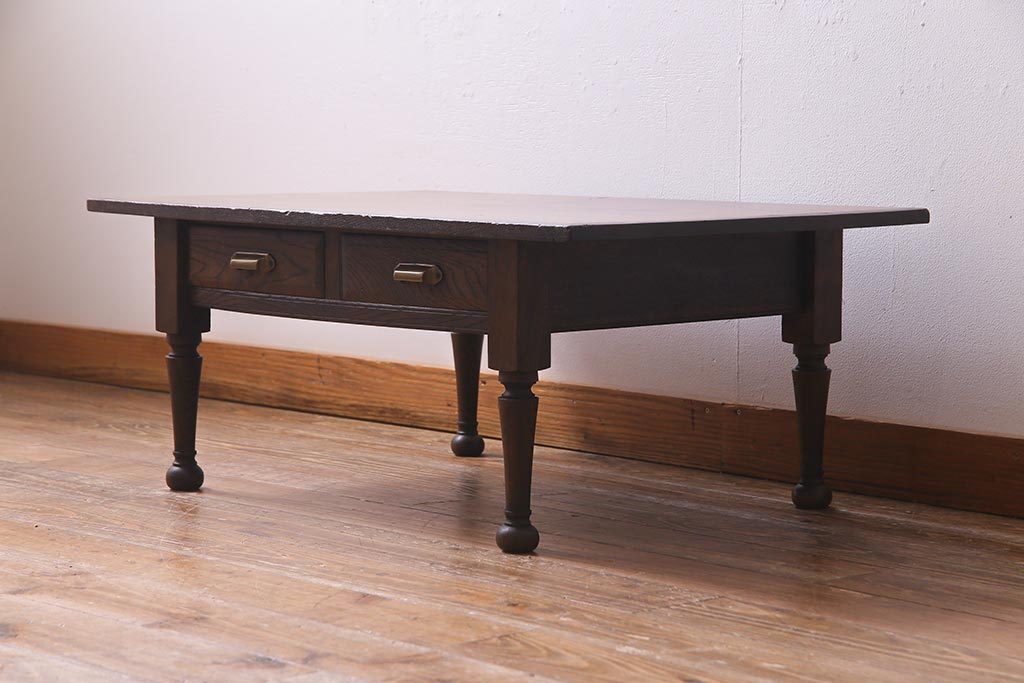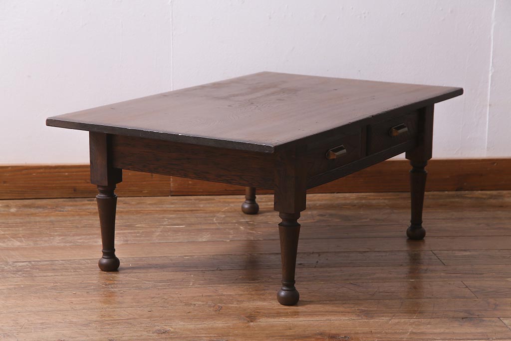 テーブル> センターテーブル・ローテーブル > アンティーク家具 和製アンティーク 大正昭和初期 栓材 大正ロマンの空気を醸すシックな文机(ローテーブル、センターテーブル)(R-037735)