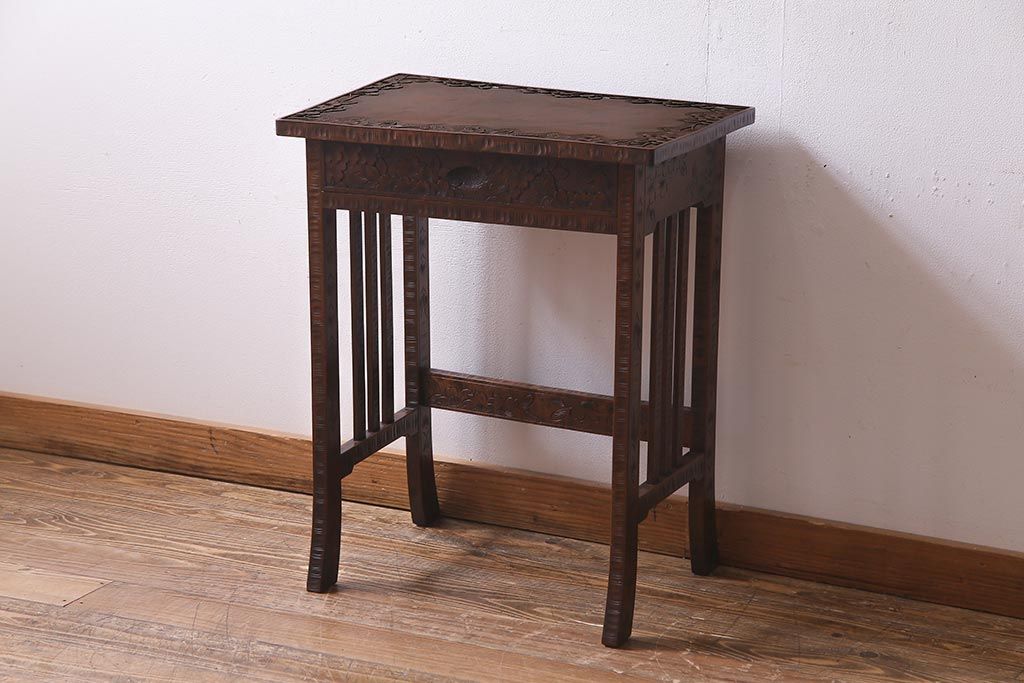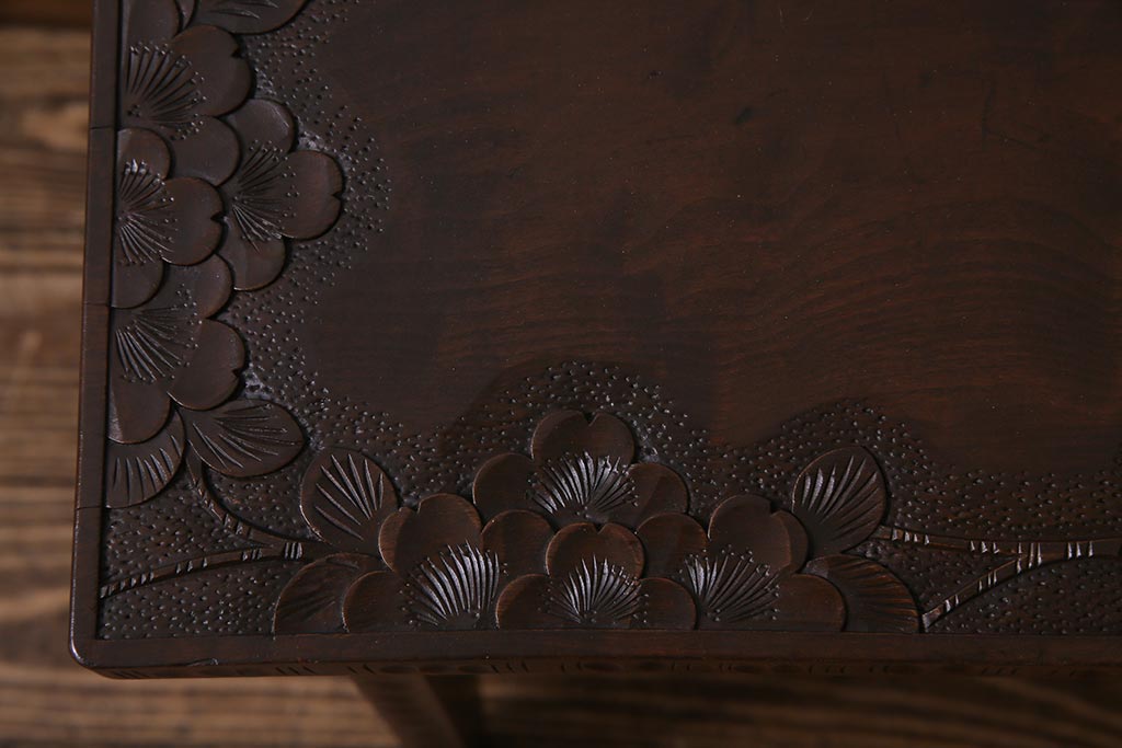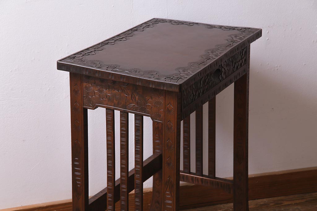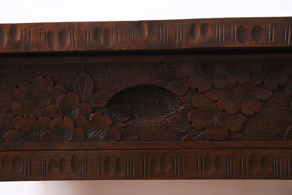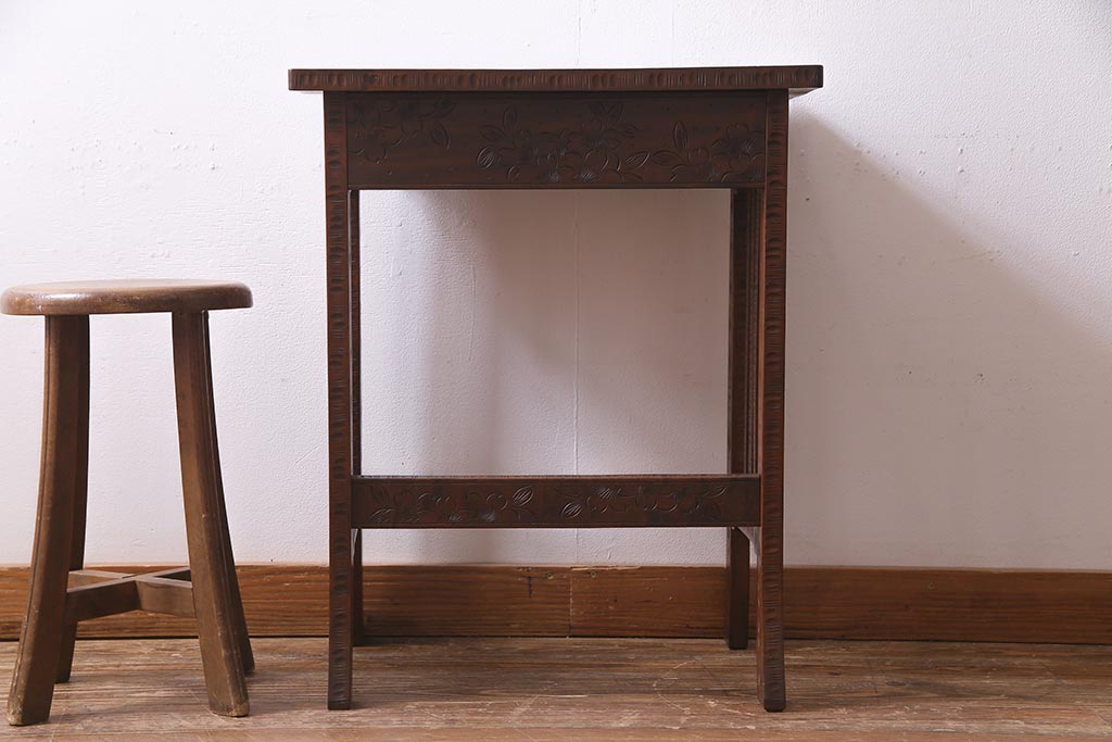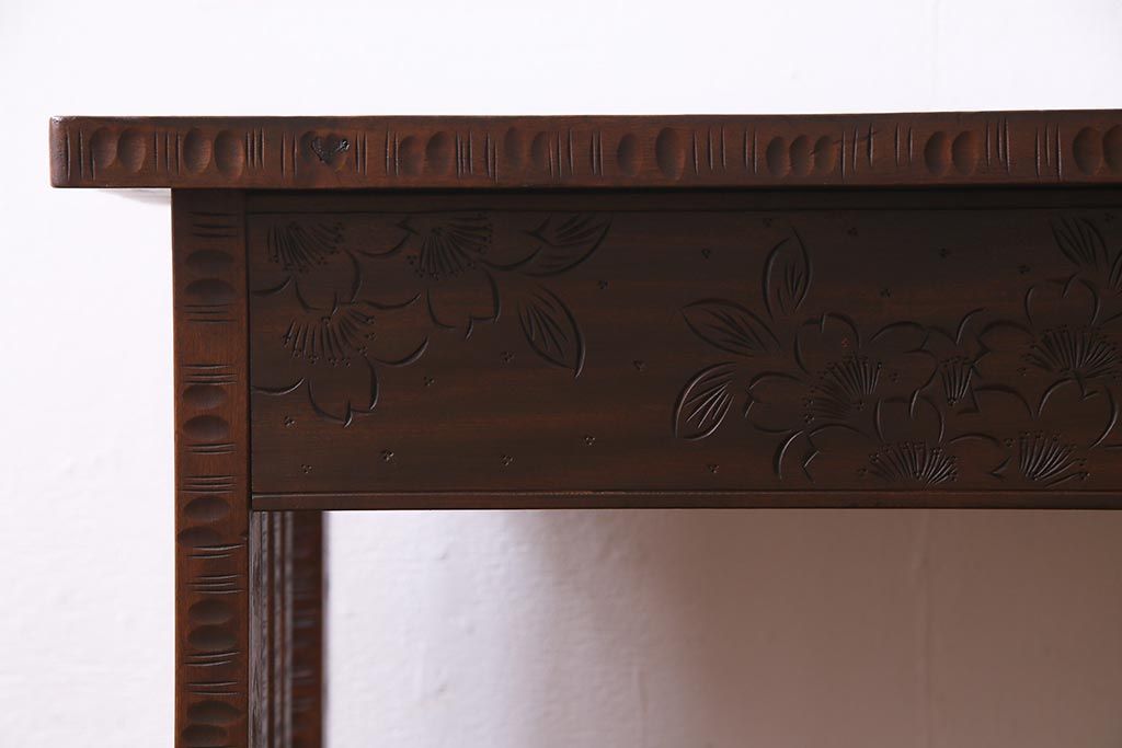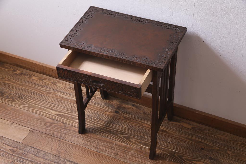テーブル> サイドテーブル > 中古 伝統工芸 軽井沢彫り 引き出し付き 繊細な桜の彫りが美しいサイドテーブル(花台、飾り台、引き出し)(R-037726)