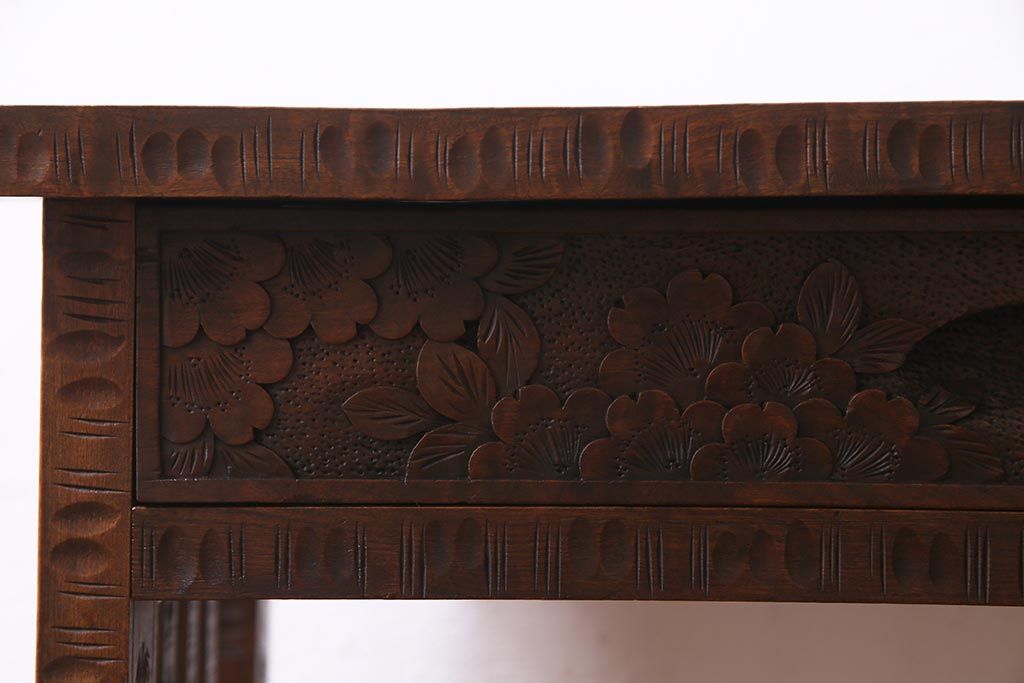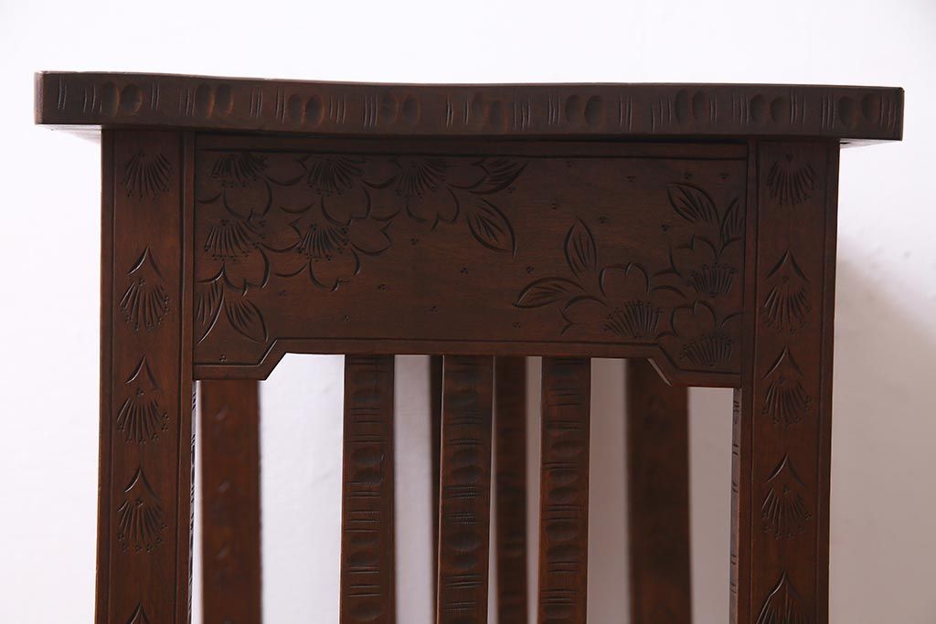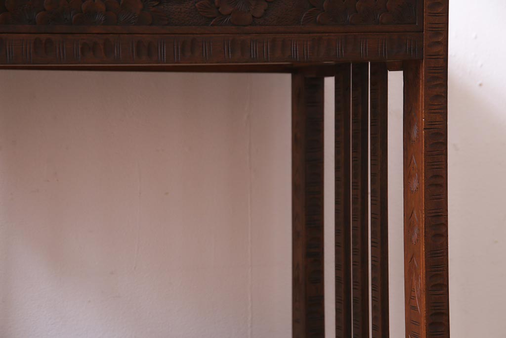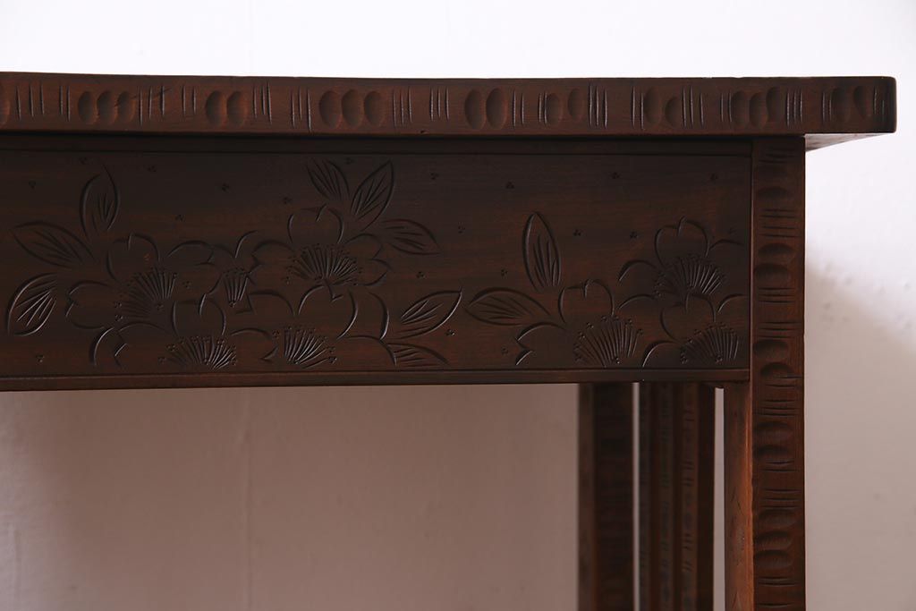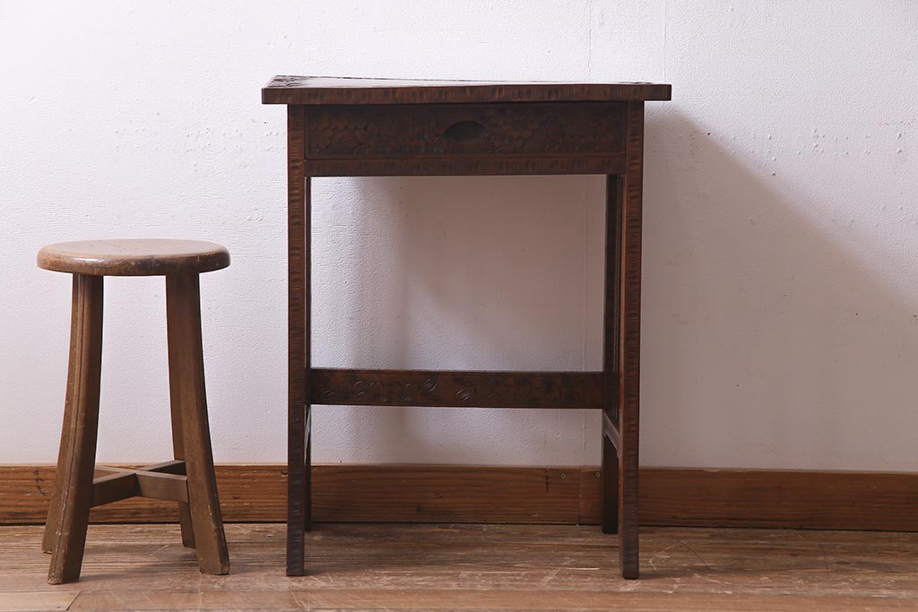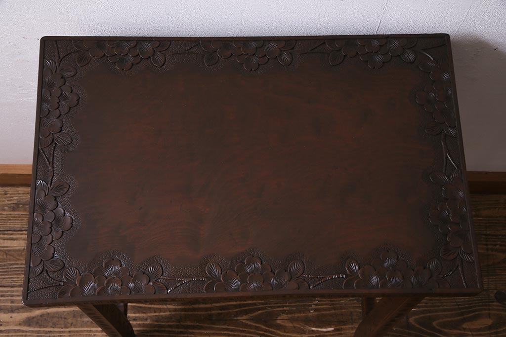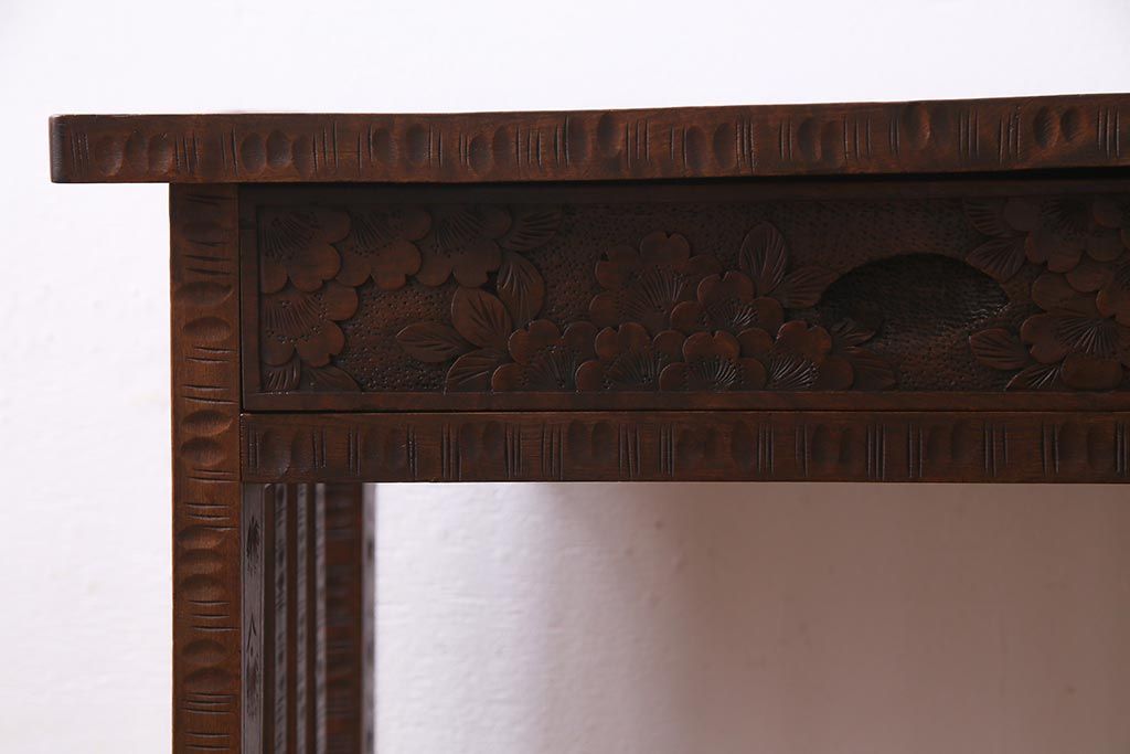 テーブル> サイドテーブル > 中古 伝統工芸 軽井沢彫り 引き出し付き 繊細な桜の彫りが美しいサイドテーブル(花台、飾り台、引き出し)(R-037726)