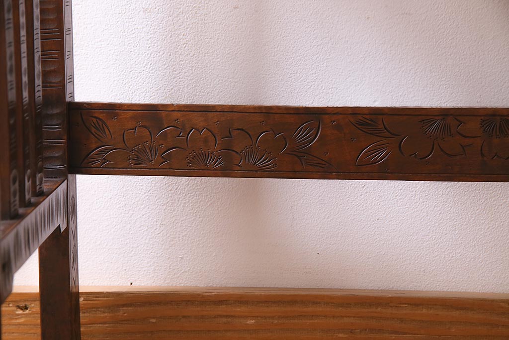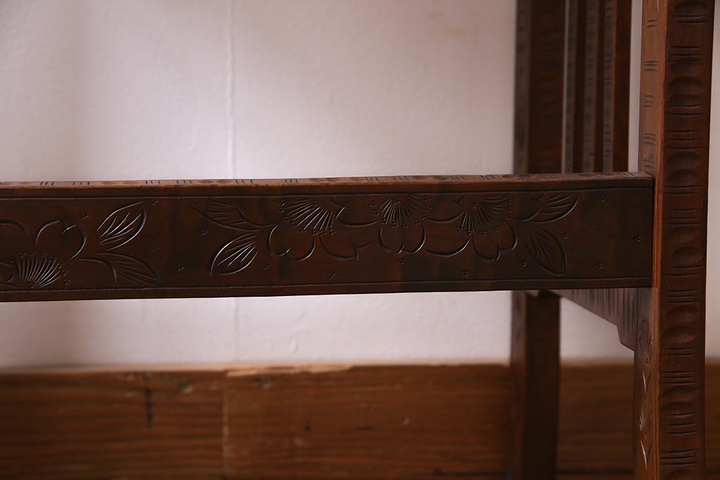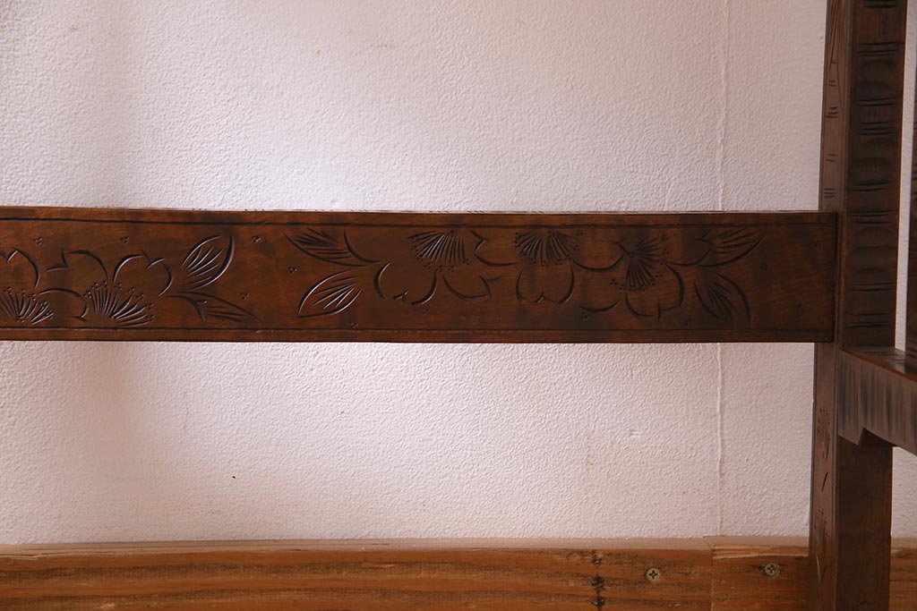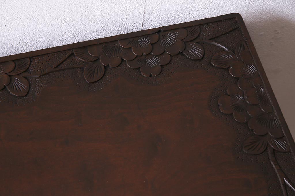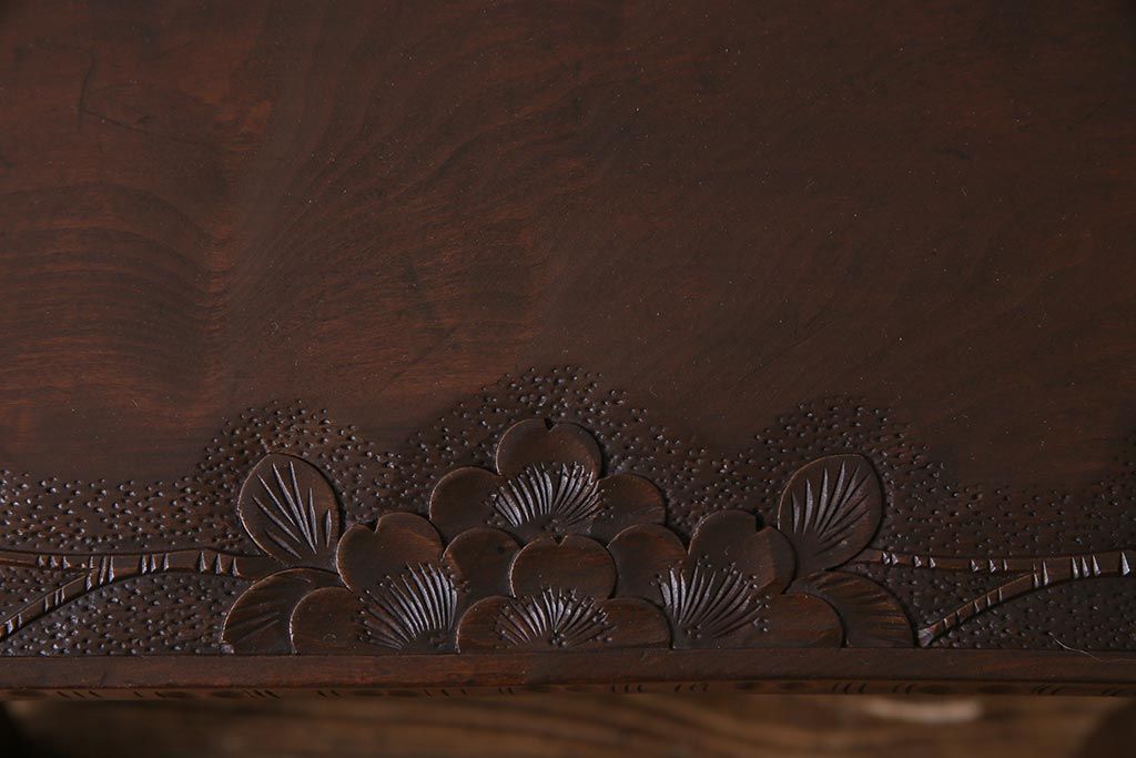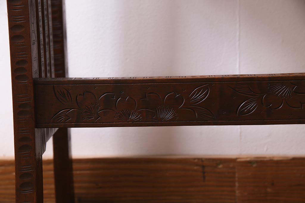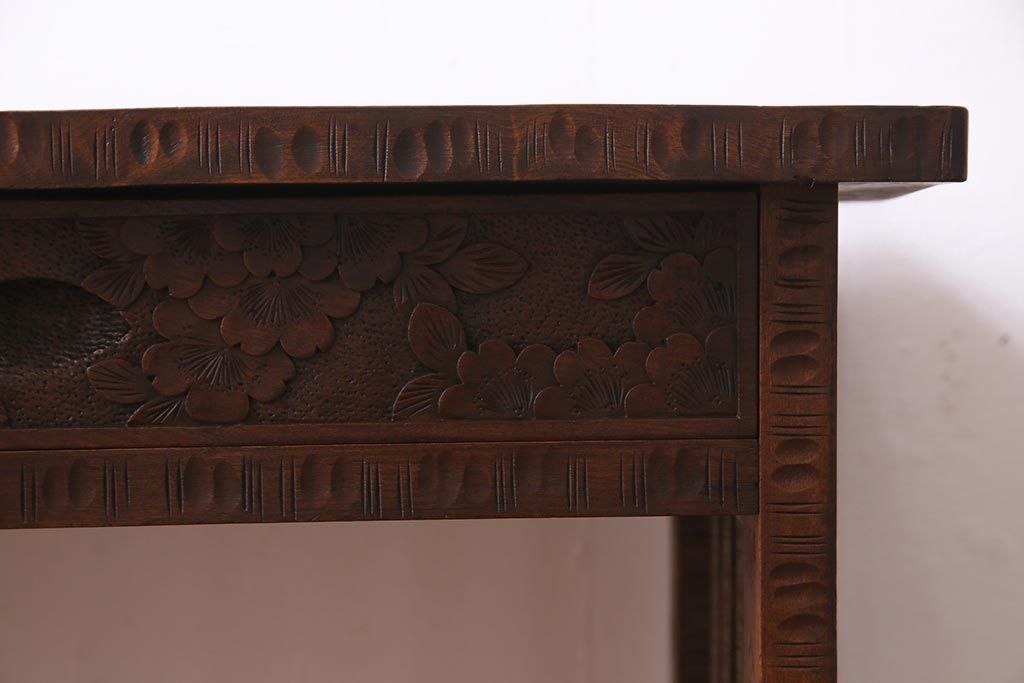 テーブル> サイドテーブル > 中古 伝統工芸 軽井沢彫り 引き出し付き 繊細な桜の彫りが美しいサイドテーブル(花台、飾り台、引き出し)(R-037726)