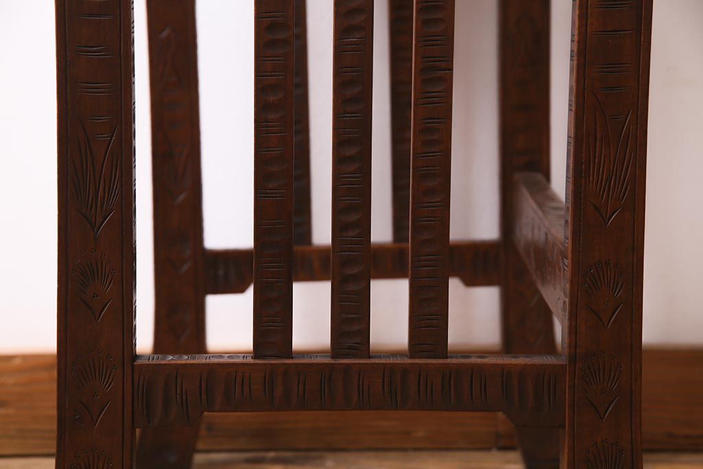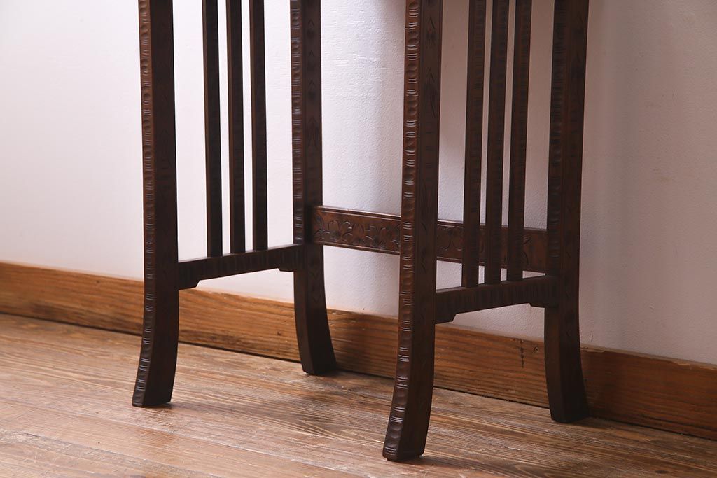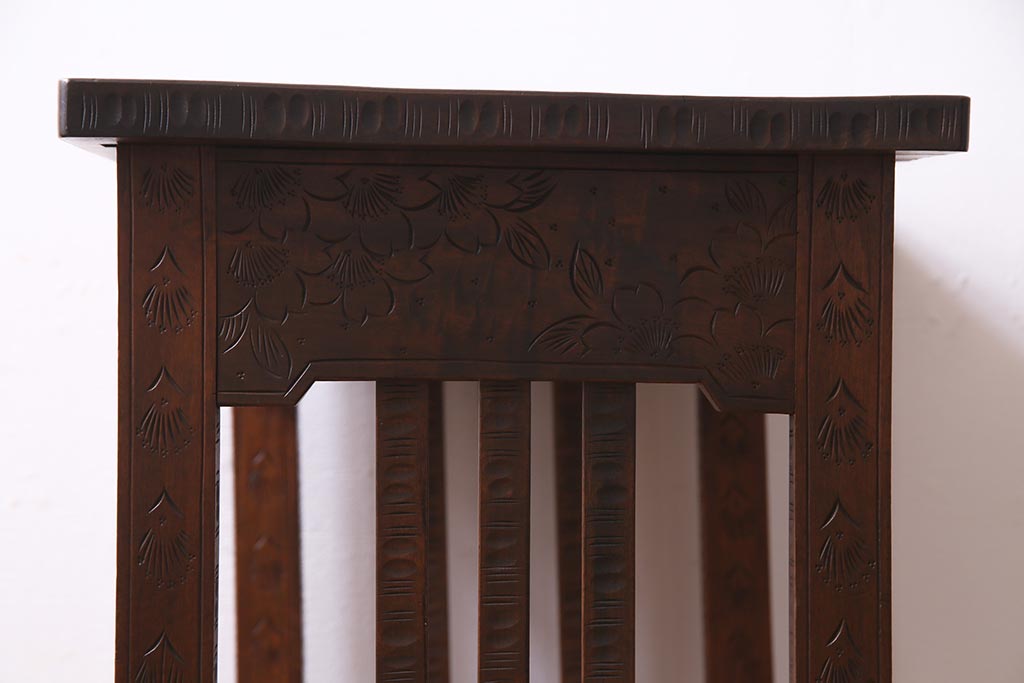 中古 伝統工芸 軽井沢彫り 引き出し付き 繊細な桜の彫りが美しいサイドテーブル(花台、飾り台、引き出し)(R-037726)