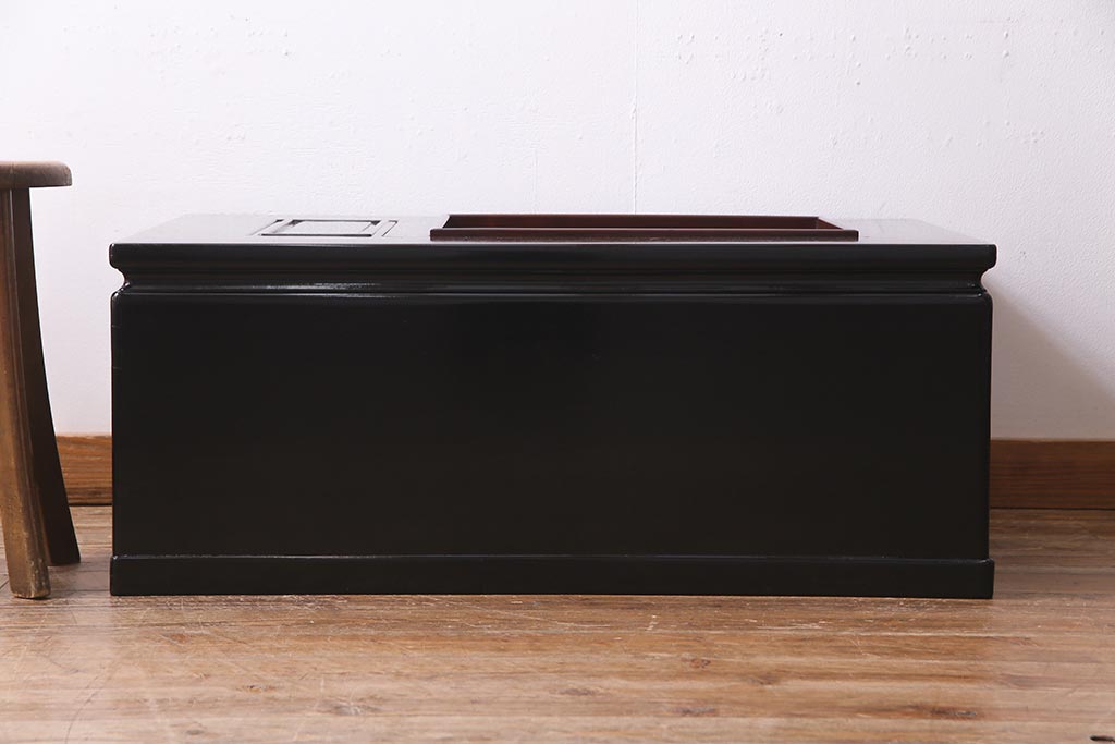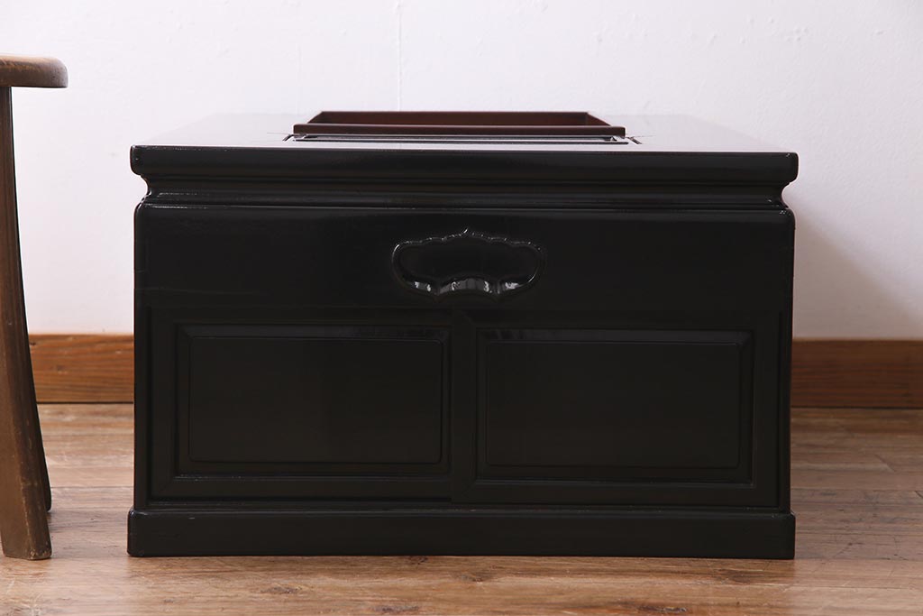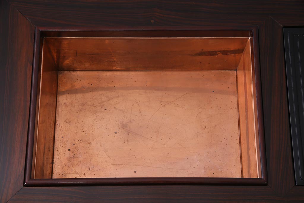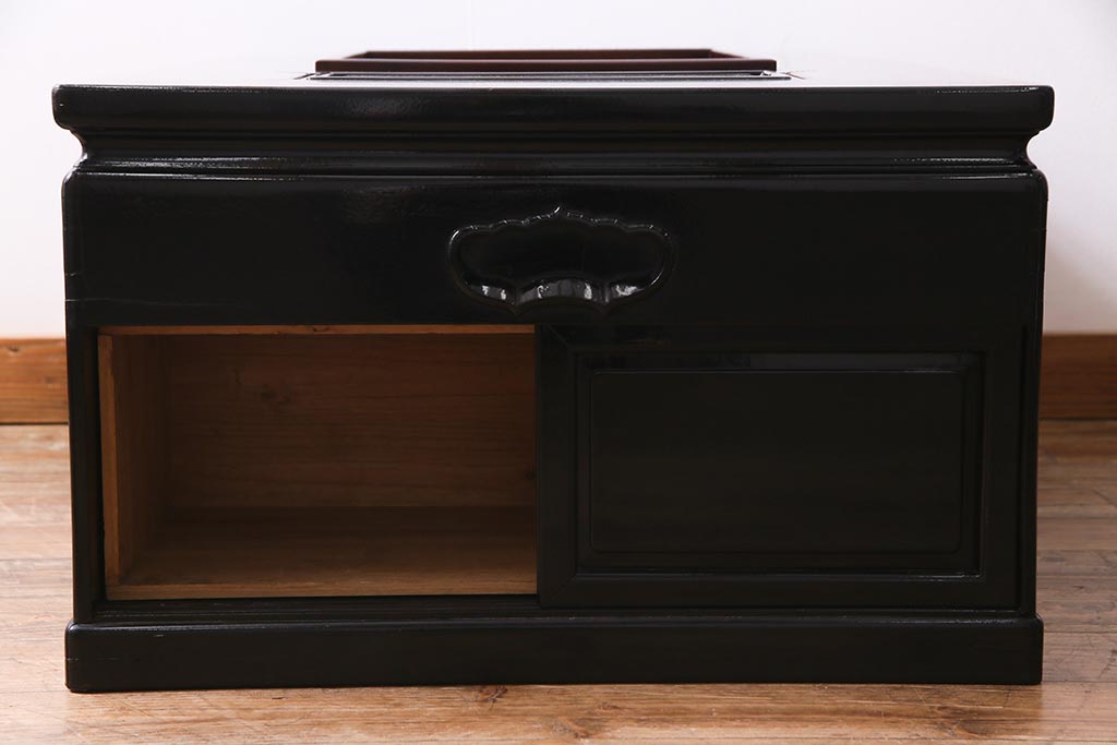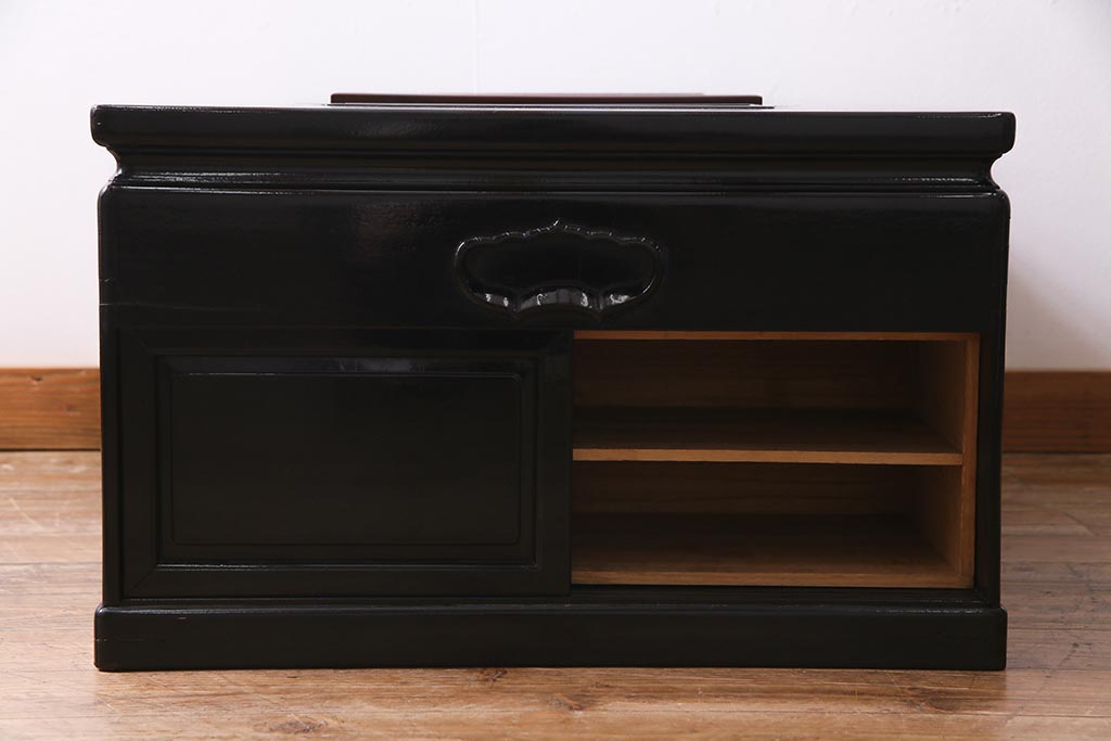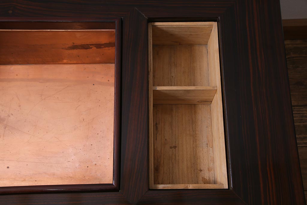 火鉢> 長火鉢 > アンティーク雑貨 和製アンティーク 昭和初期 天板縞黒檀材・唐木材使用 つややかな黒塗りが高級感漂う長火鉢(手あぶり)(R-037739)