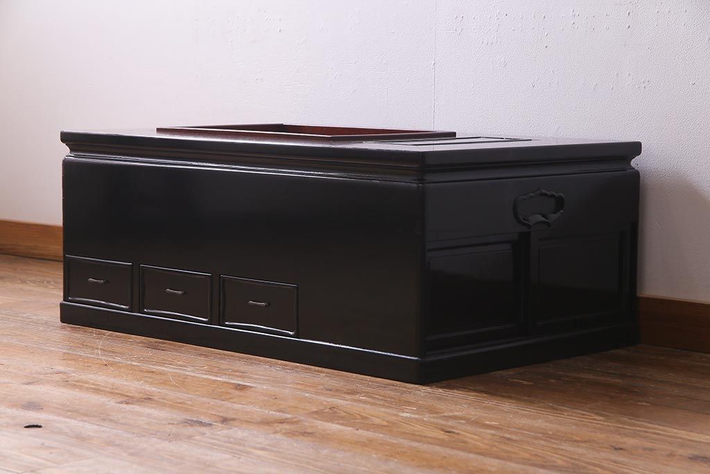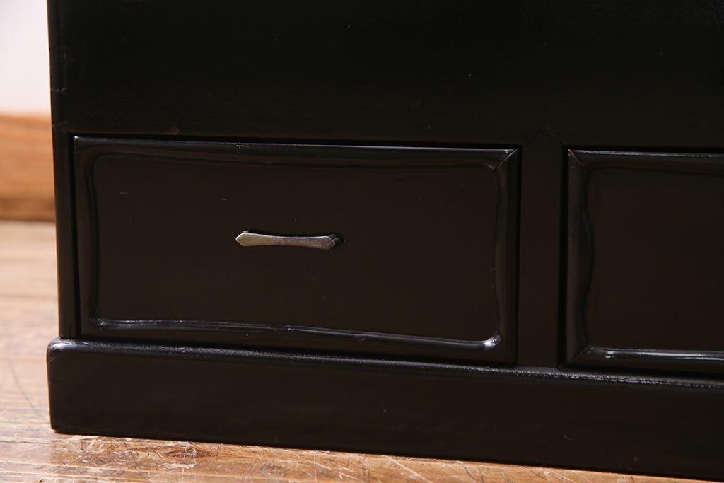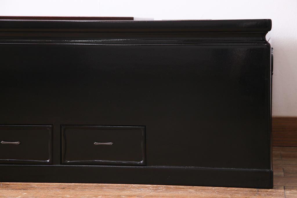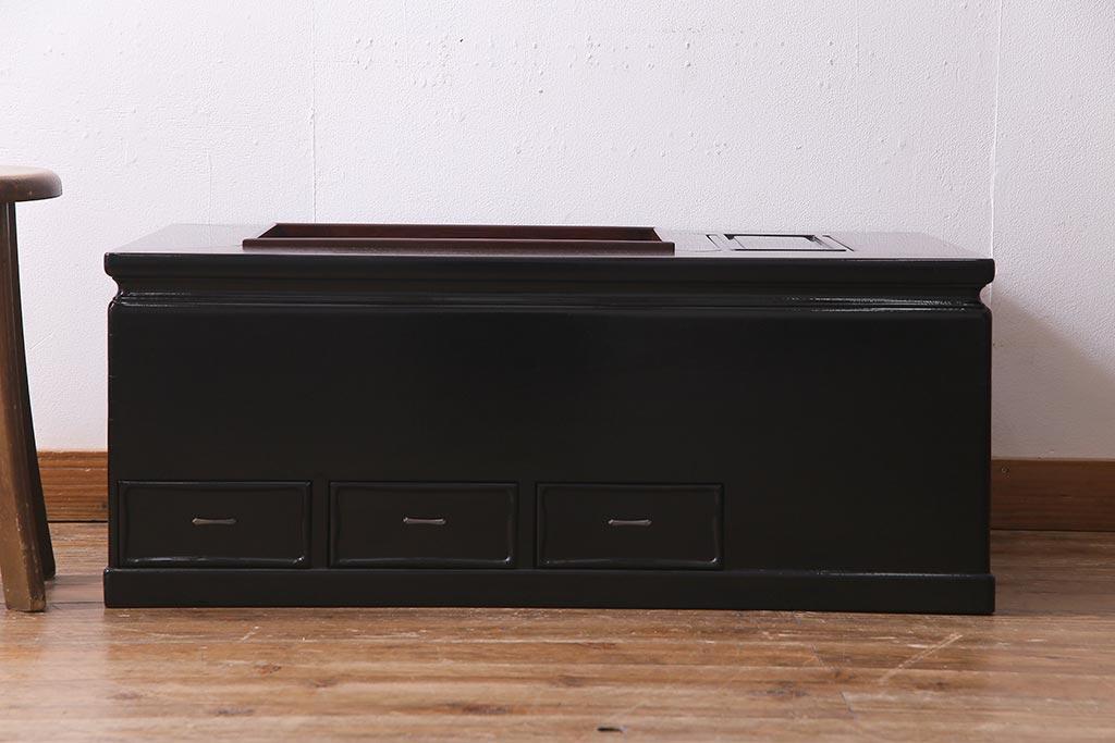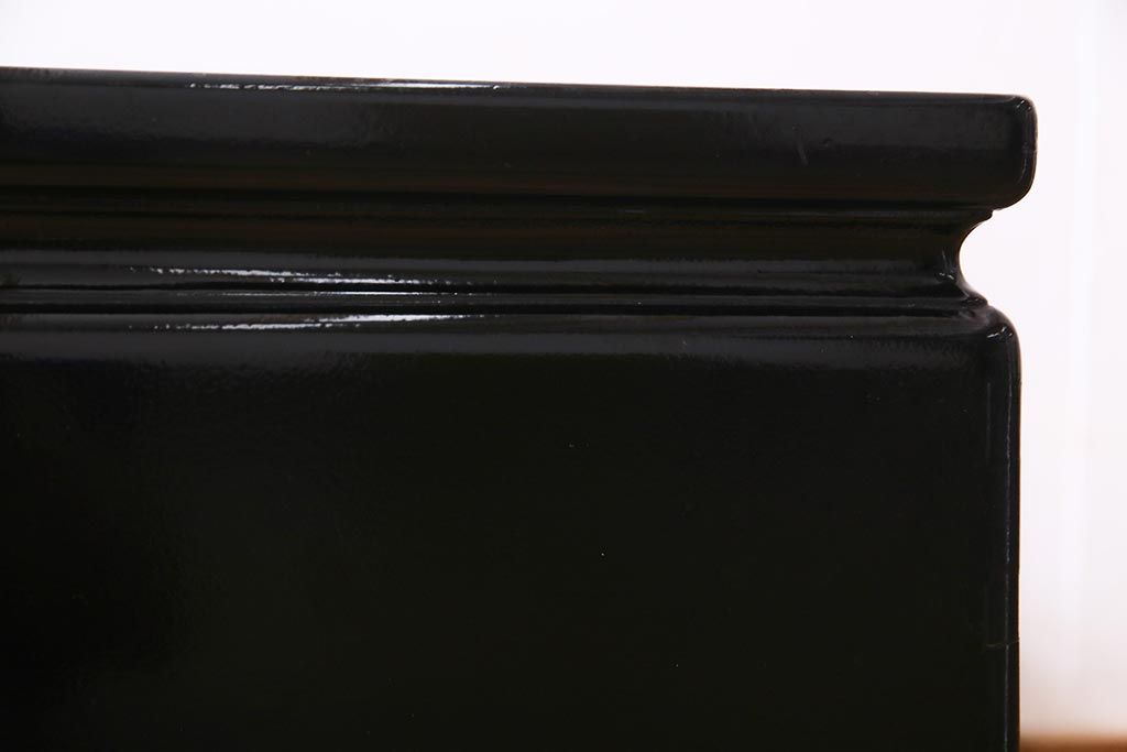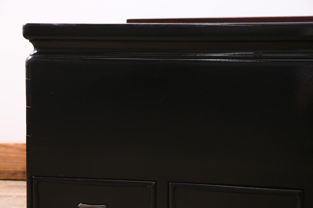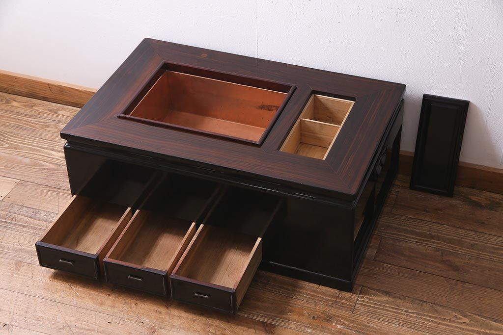火鉢> 長火鉢 > アンティーク雑貨 和製アンティーク 昭和初期 天板縞黒檀材・唐木材使用 つややかな黒塗りが高級感漂う長火鉢(手あぶり)(R-037739)