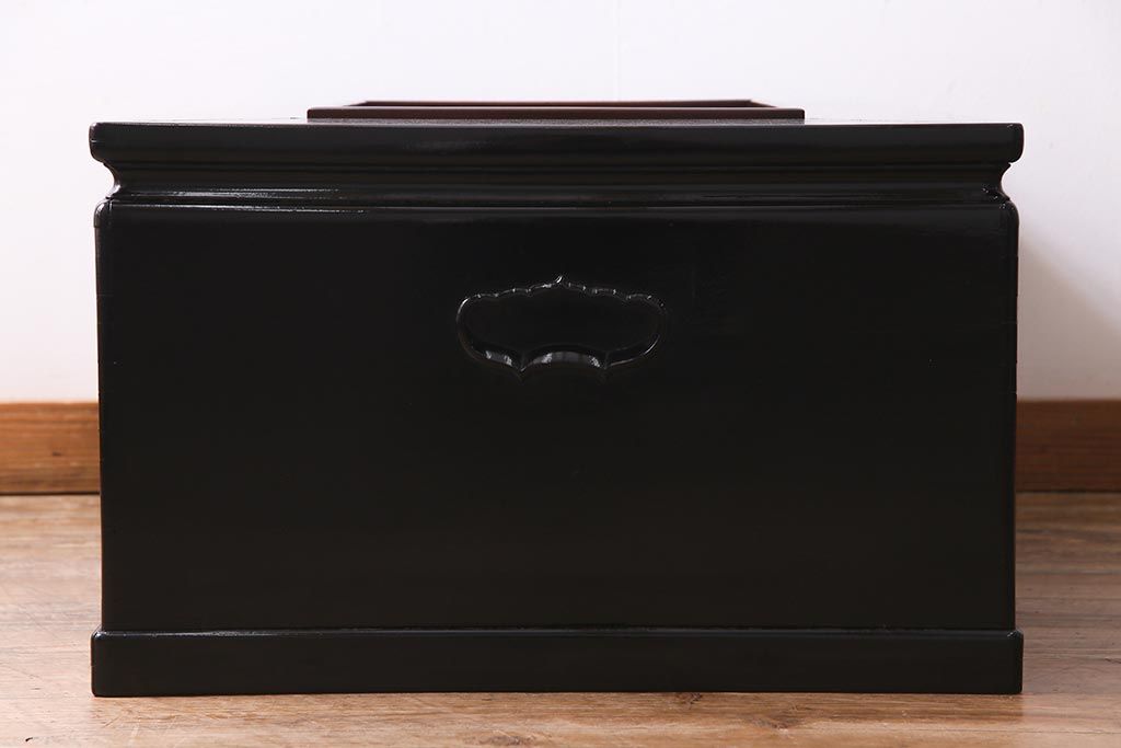 アンティーク雑貨 和製アンティーク 昭和初期 天板縞黒檀材・唐木材使用 つややかな黒塗りが高級感漂う長火鉢(手あぶり)(R-037739)です。