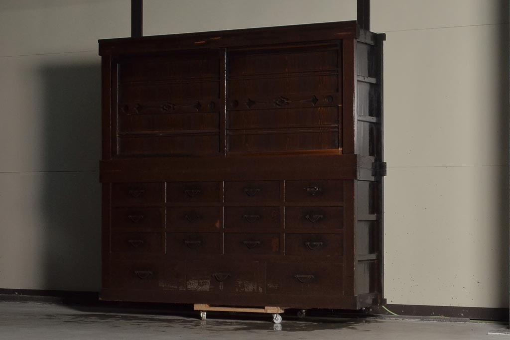 和箪笥 > アンティーク家具 古民具 ヒノキ材 六尺サイズの収納箪笥キャビネット(水屋箪笥)(R-036645)