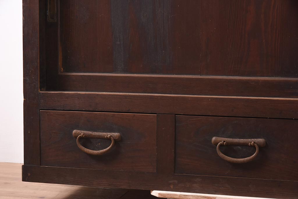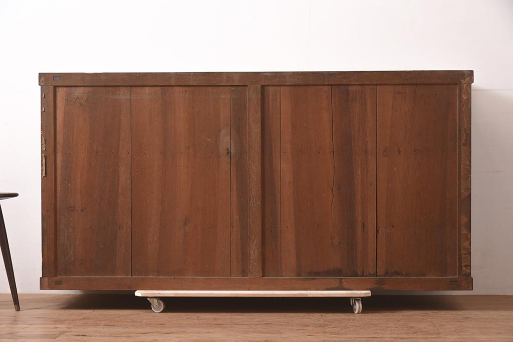 アンティーク家具 欅(ケヤキ)材・ヒノキ材・桜材 シンプルで重厚な箪笥サイドボード(収納棚、ガラス戸棚)(R-036681)です。