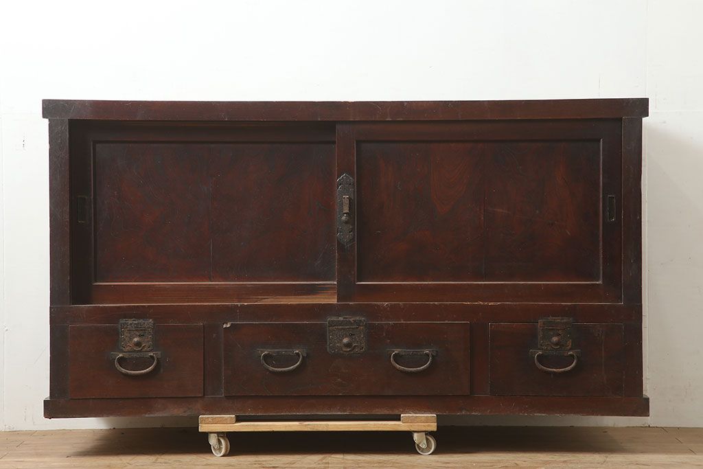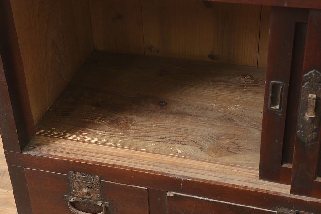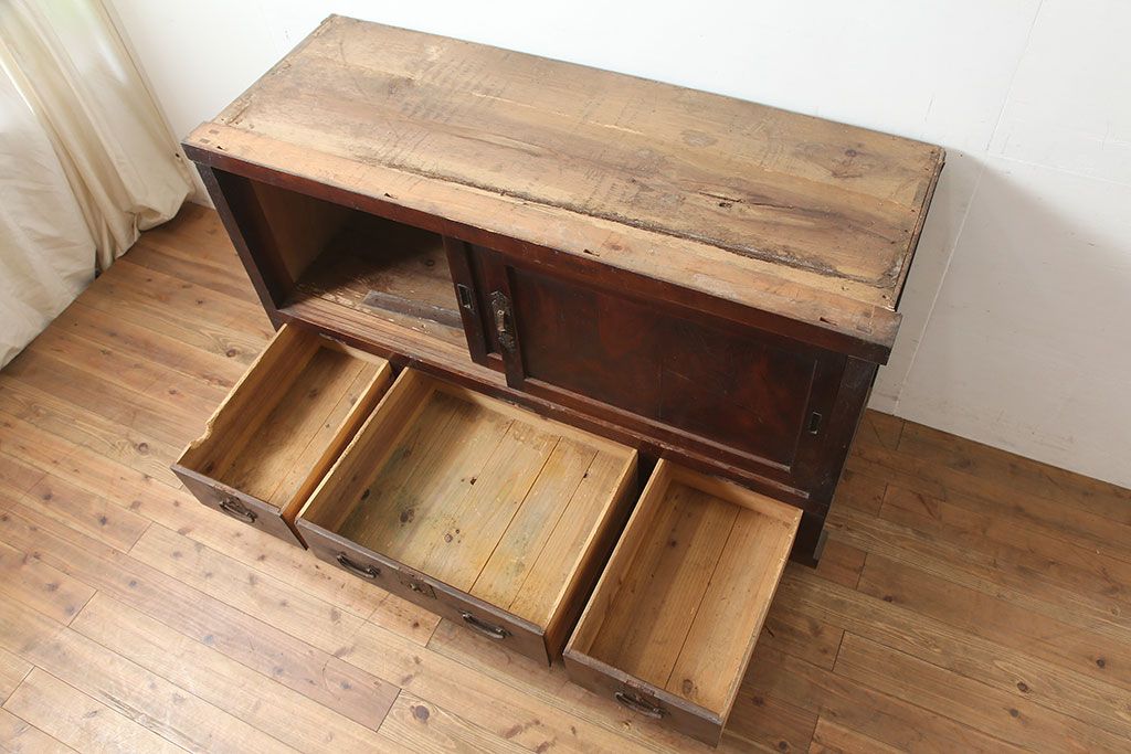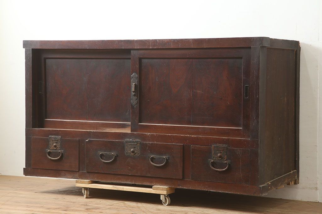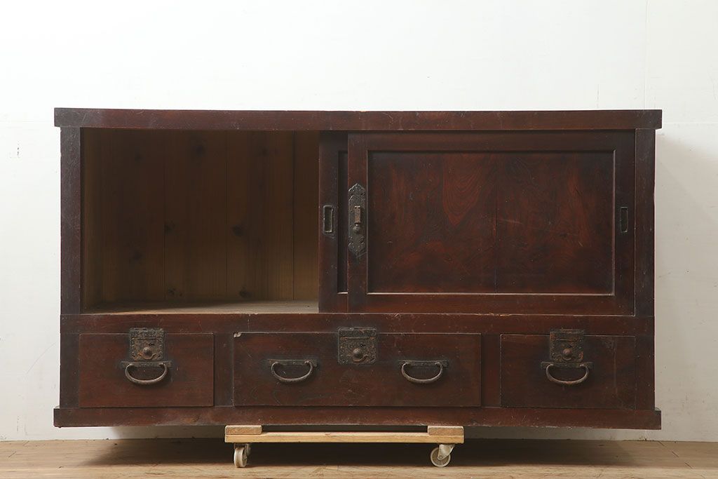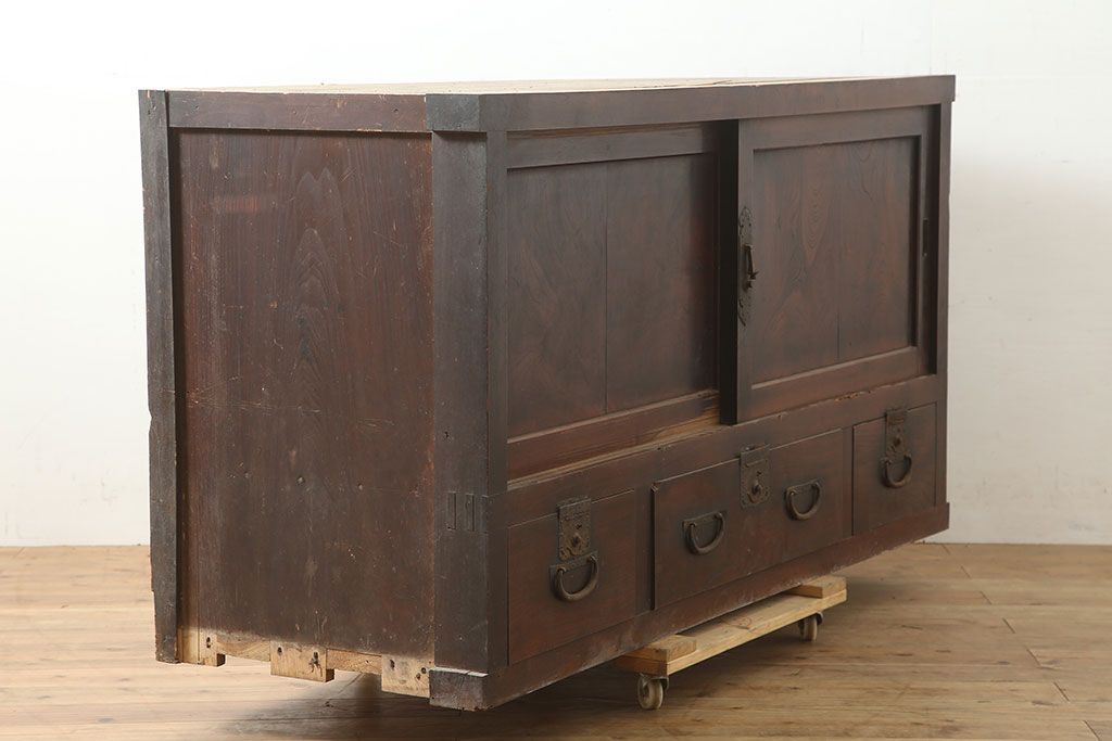 ラフジュ工房> キャビネット・戸棚> テレビ台・ローボード > アンティーク家具 前面ケヤキ・桜材 和モダンスタイルにおすすめの五尺収納箪笥(サイドボード、テレビ台)(R-036668)
