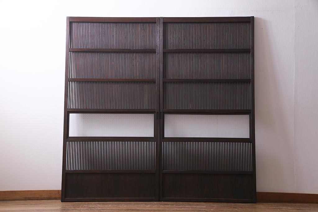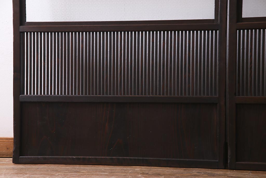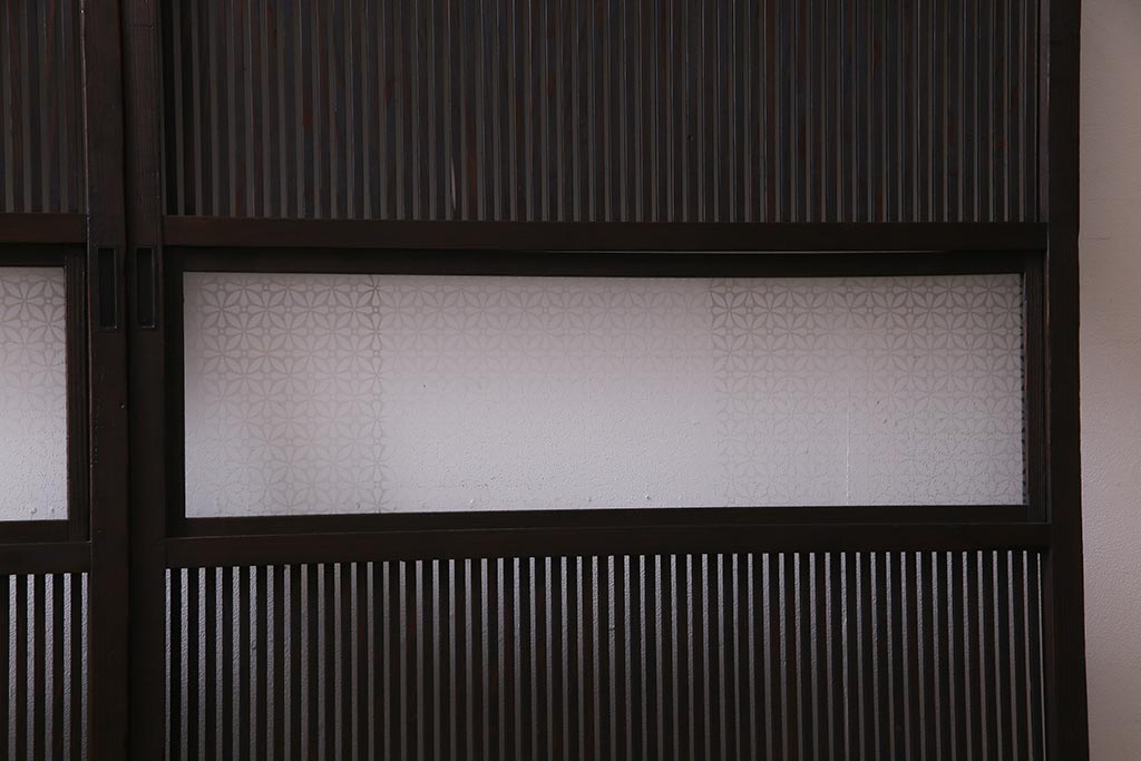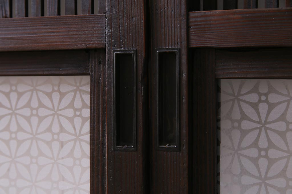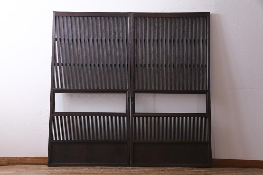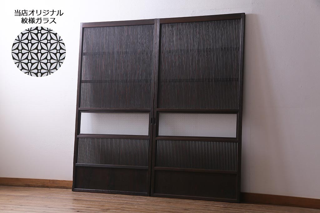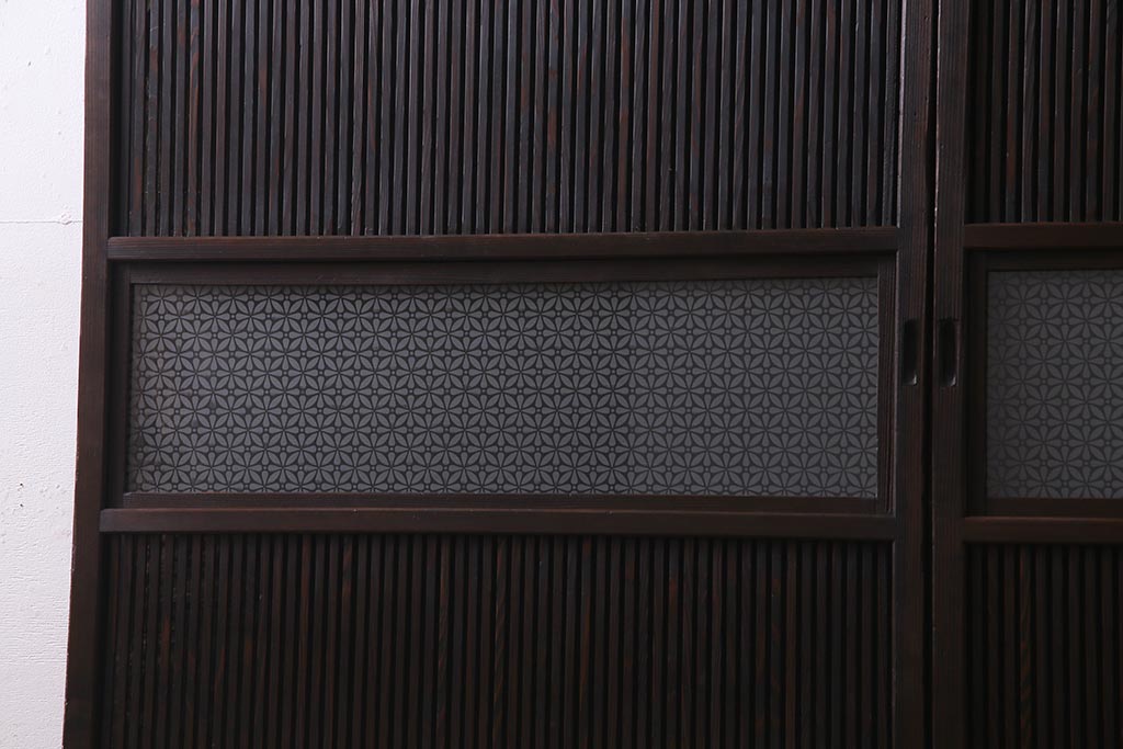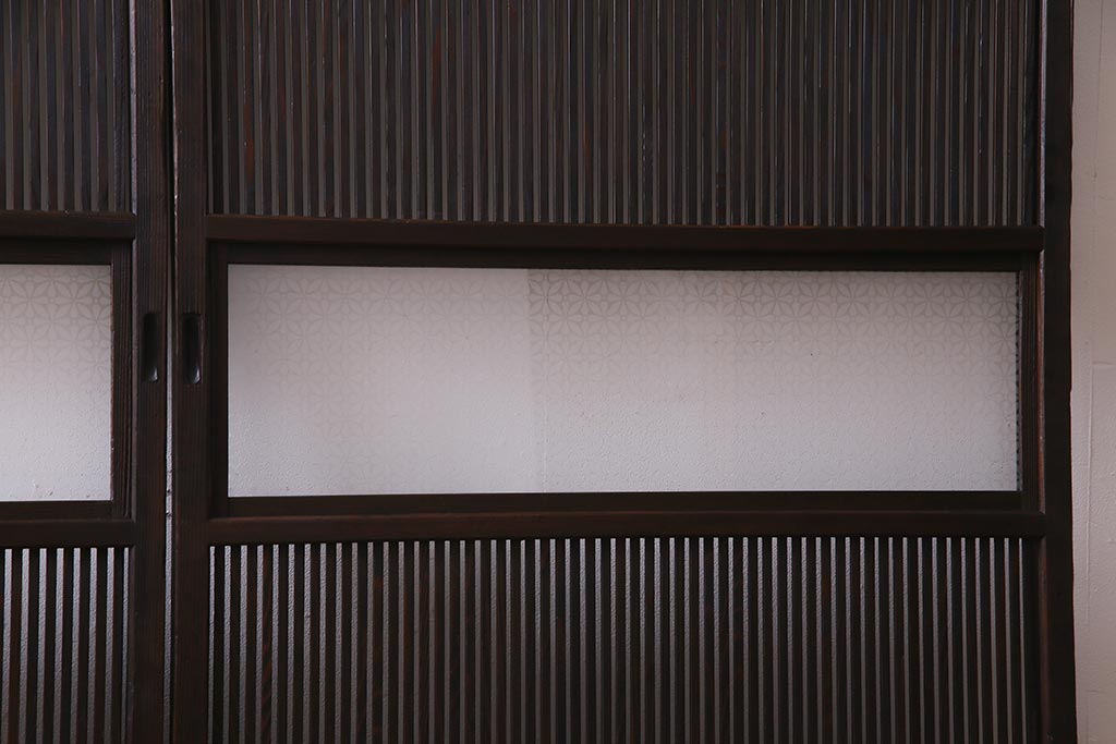 アンティーク建具 当店オリジナルガラス レトロシックな格子戸2枚セット(建具、引き戸、ガラス帯戸)(R-037674)