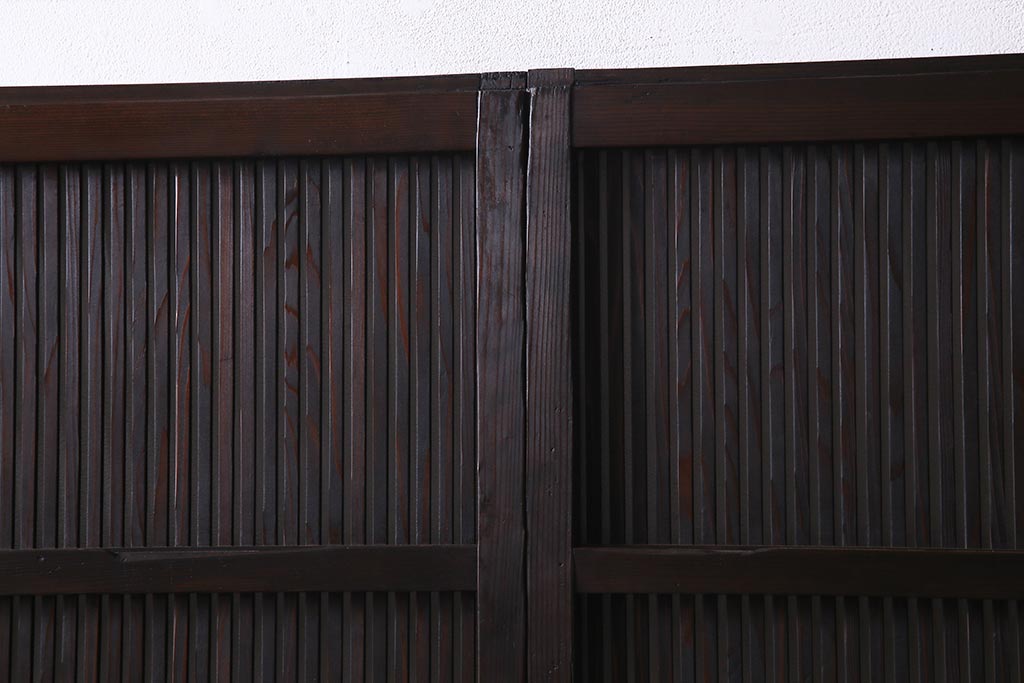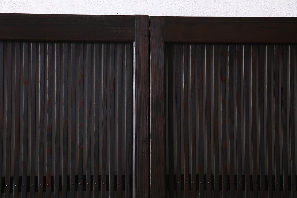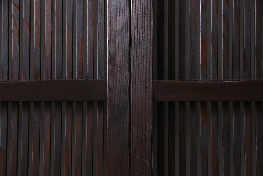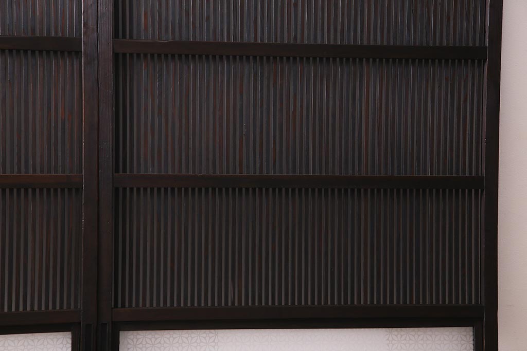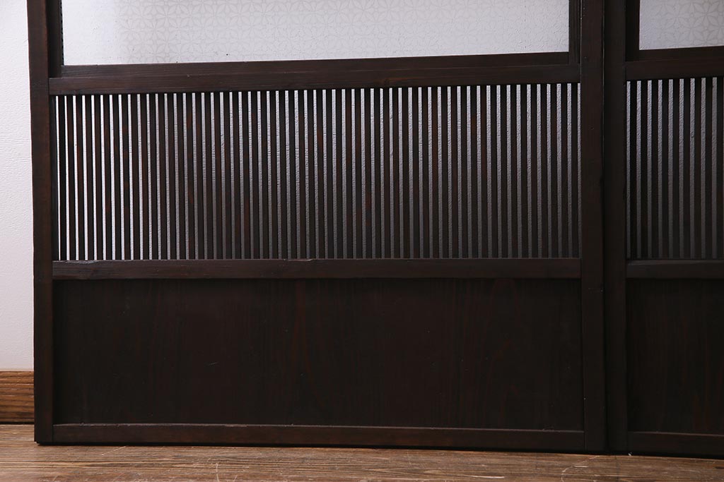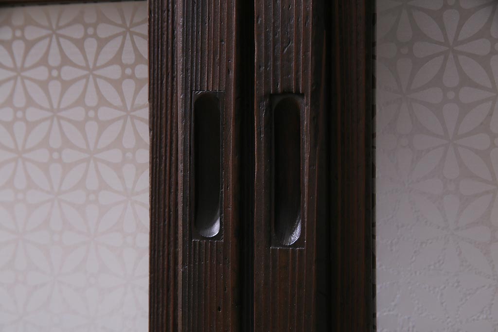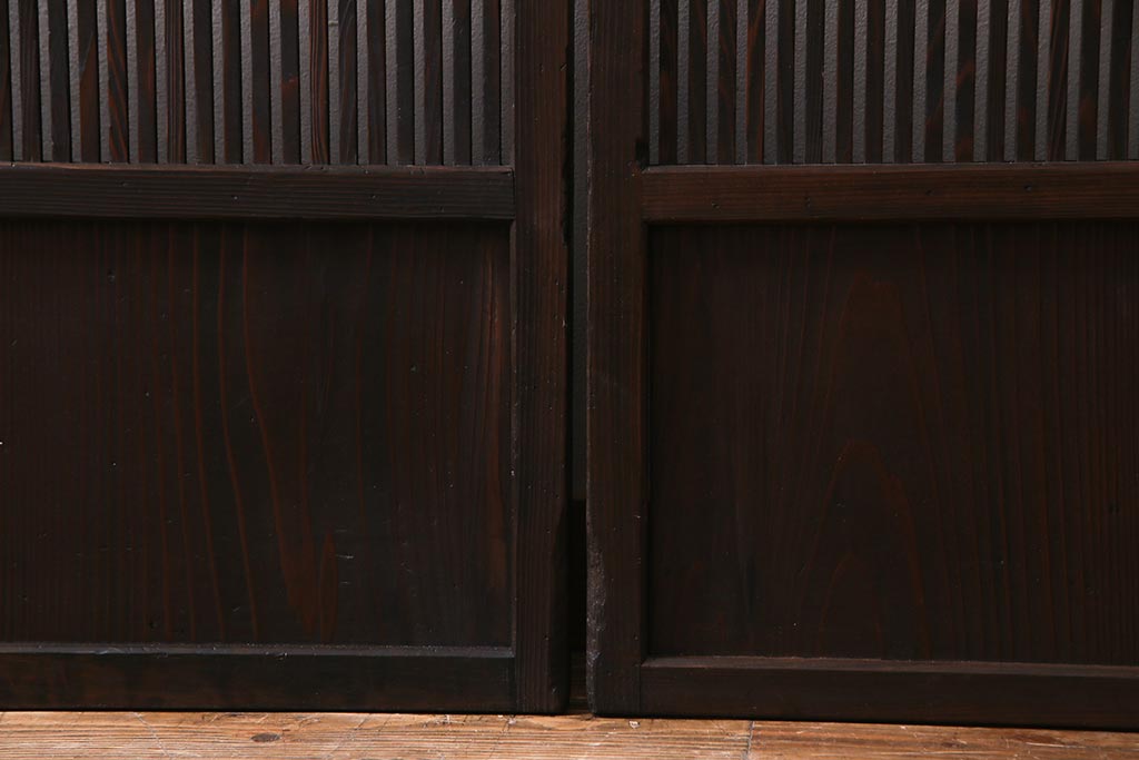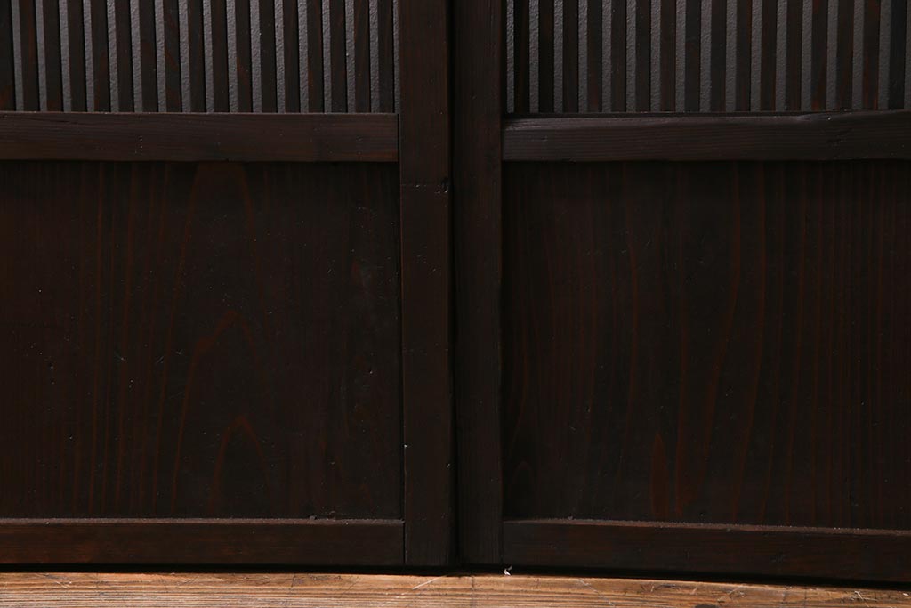 アンティーク建具 当店オリジナルガラス レトロシックな格子戸2枚セット(建具、引き戸、ガラス帯戸)(R-037674)