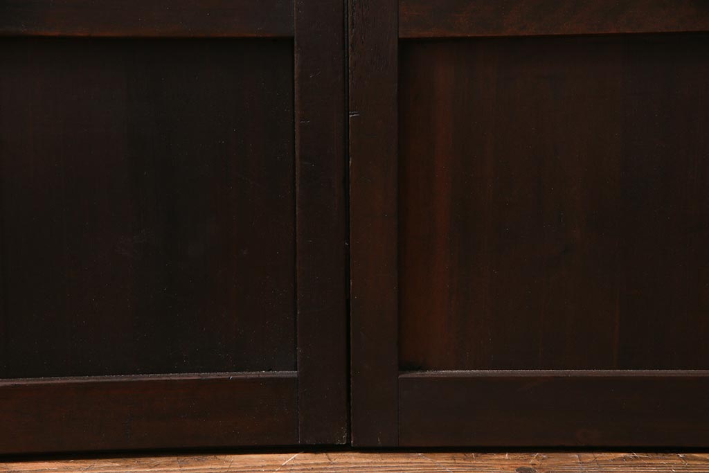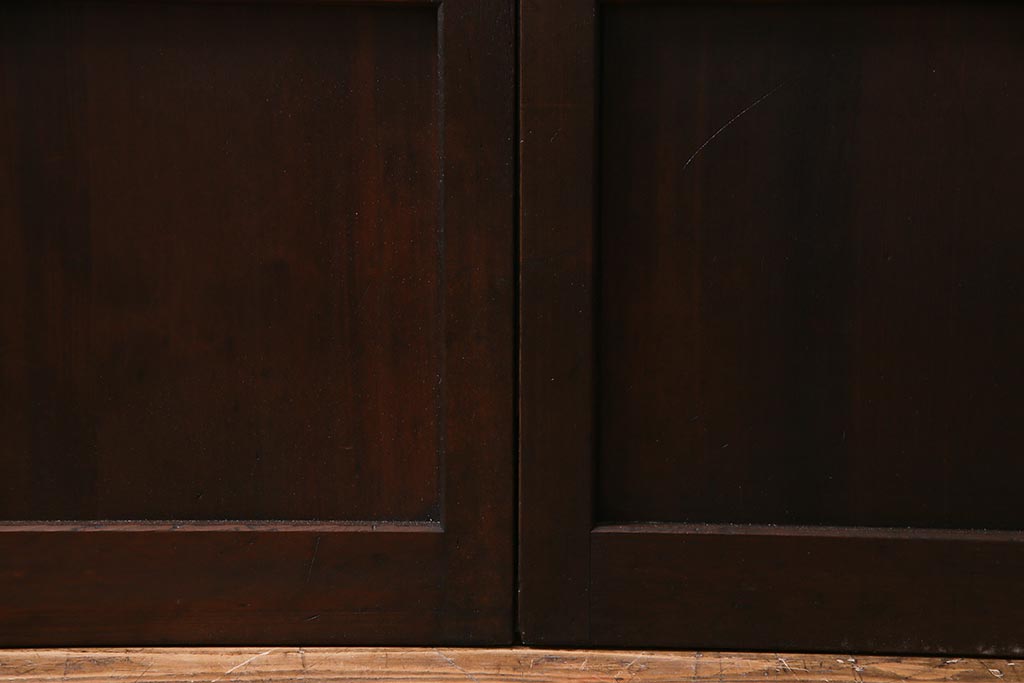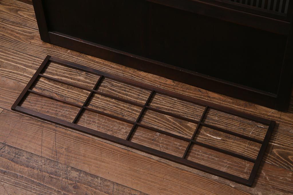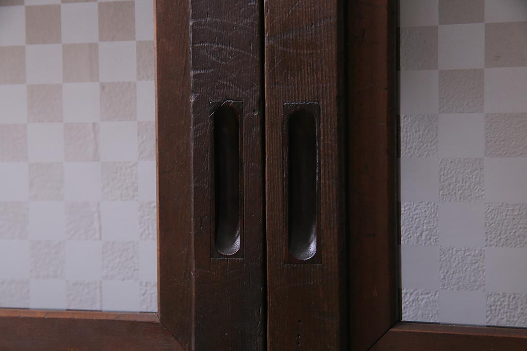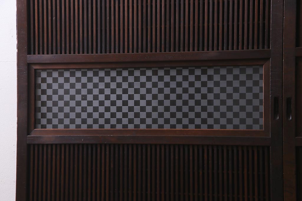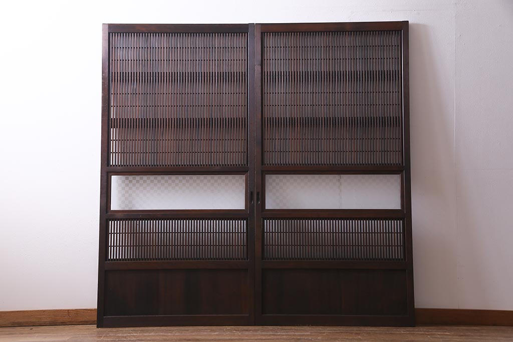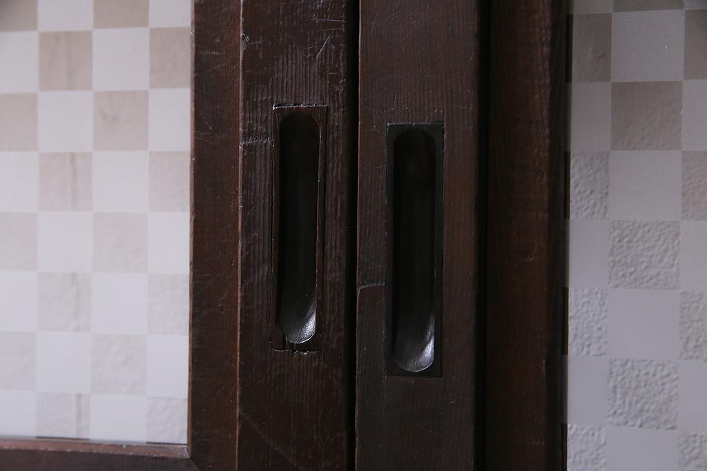 アンティーク建具 裏障子枠付き 当店オリジナルガラス 市松模様がモダンな格子戸2枚セット(建具、引き戸、ガラス帯戸)(R-037673)です。