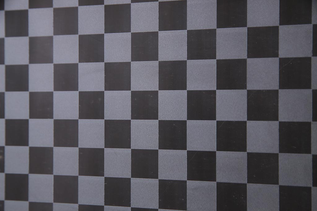 ドア・建具> 引き戸 > アンティーク建具 裏障子枠付き 当店オリジナルガラス 市松模様がモダンな格子戸2枚セット(建具、引き戸、ガラス帯戸)(R-037673)