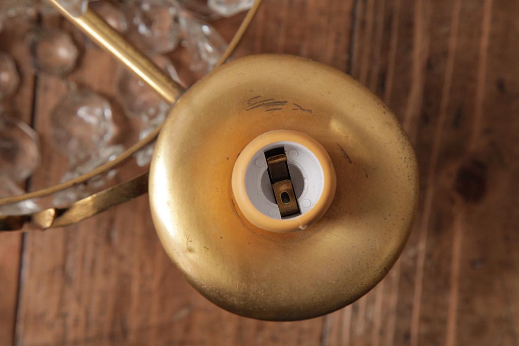 ビンテージ照明 真鍮製 ガラスドロップとカメオがおしゃれなフランスヴィンテージのウォールランプ(壁掛けシャンデリア、壁付け照明)(R-037588)