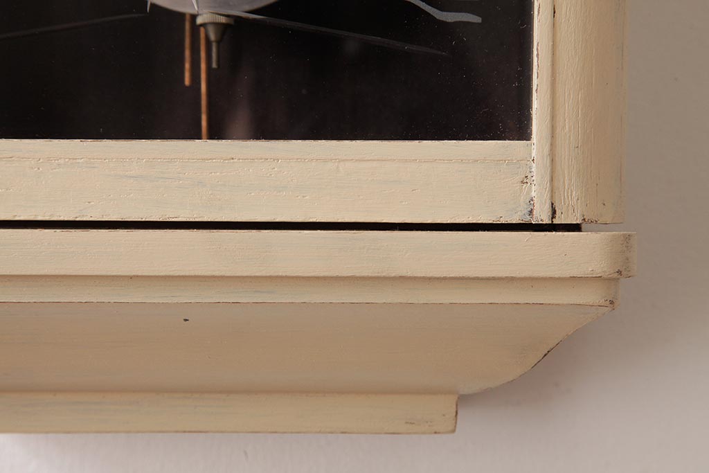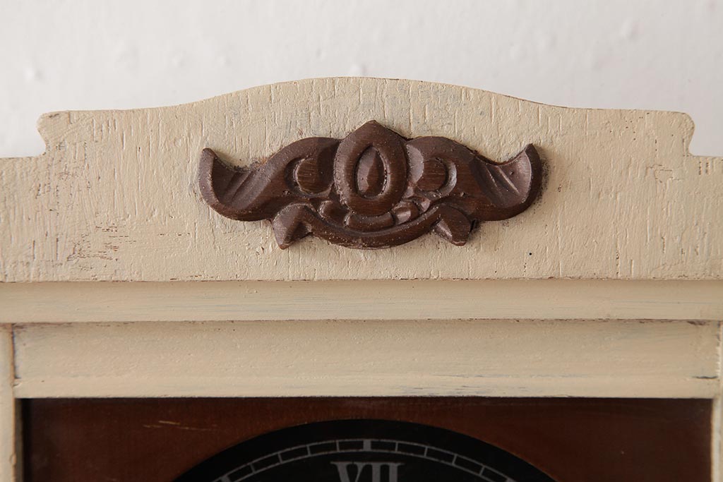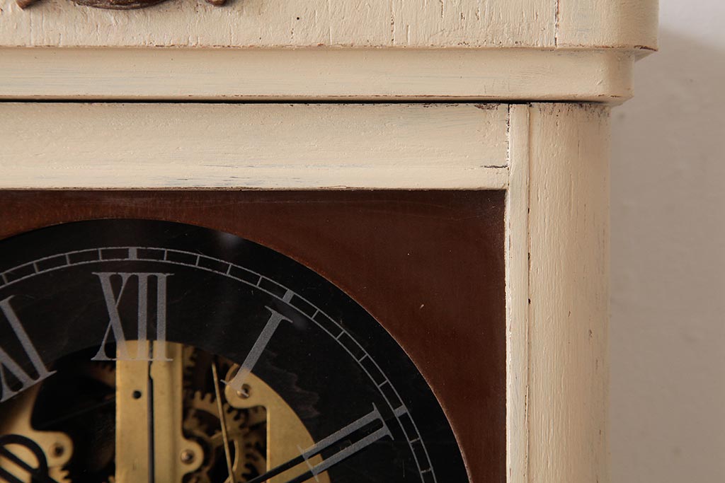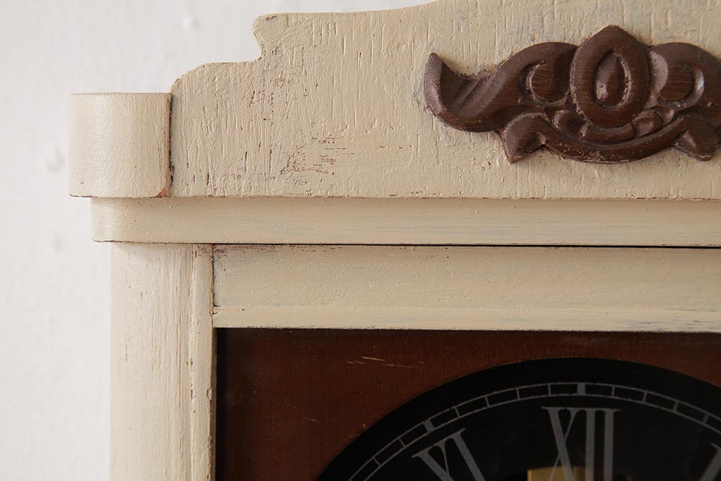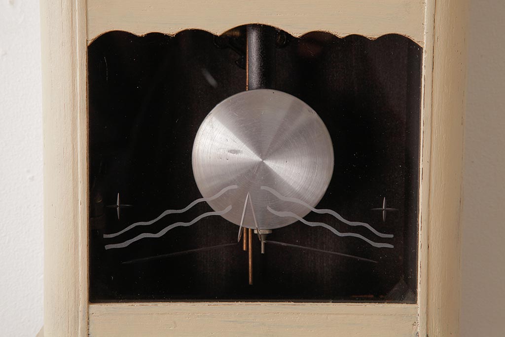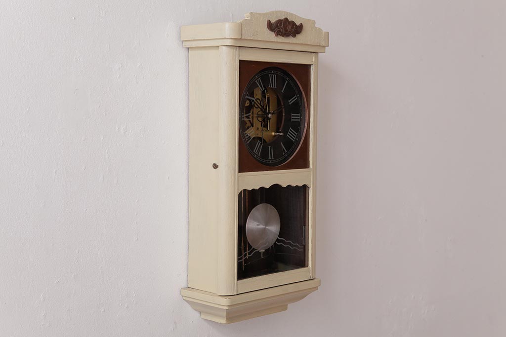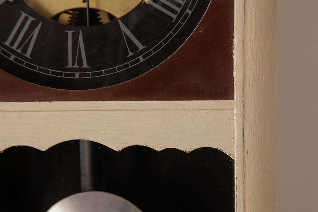 時計> 掛け時計 > ビンテージ雑貨 ペイント 堀田時計店 N.H.T スケルトン仕様のレトロシックなゼンマイ式柱時計(振り子時計、壁掛け時計)(R-037668)