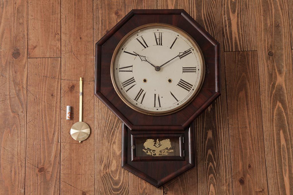 時計> 掛け時計 > アンティーク雑貨 E.N.WELCH(ウェルチ) 電池式 PENDULUM OCTAGON 八角合長 掛け時計(振り子時計、柱時計)(R-037698)