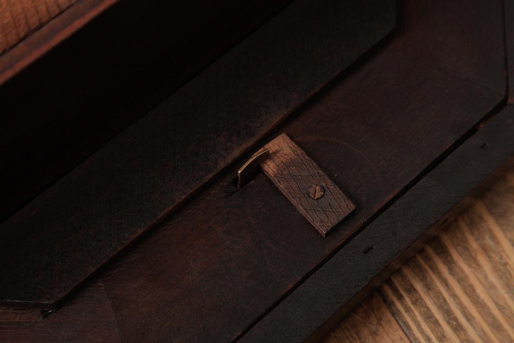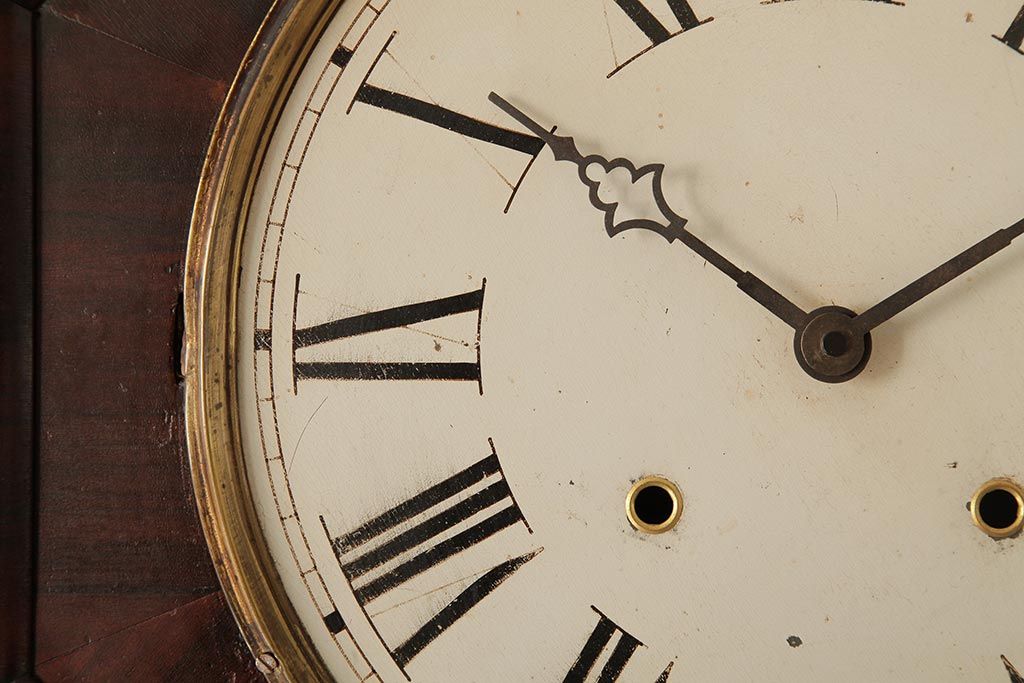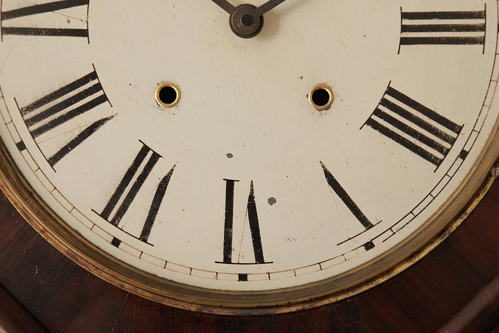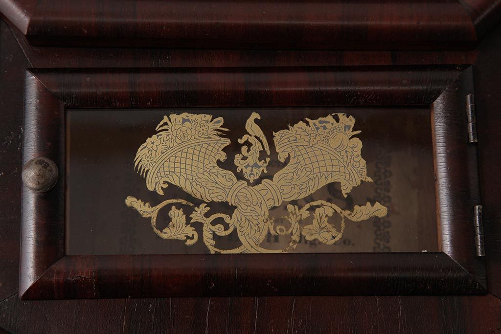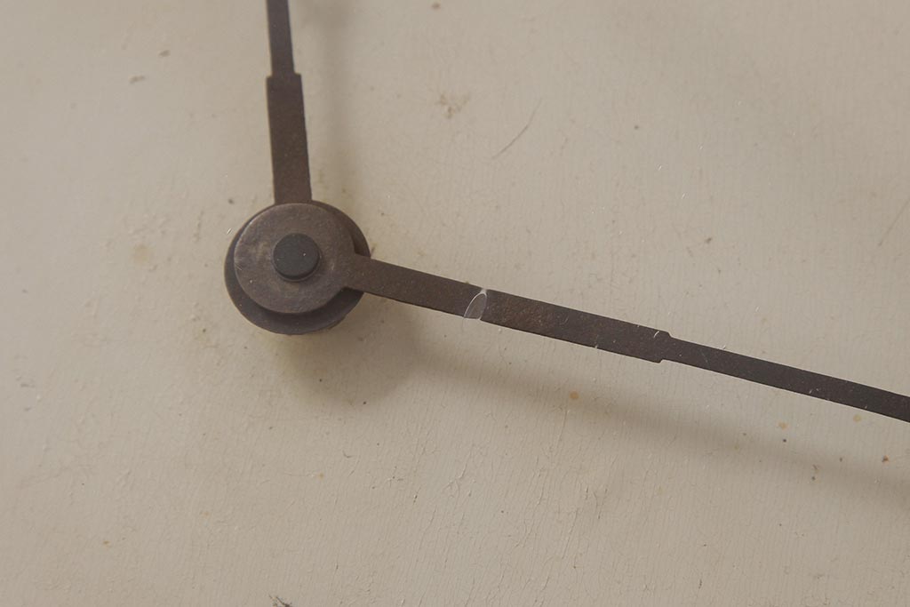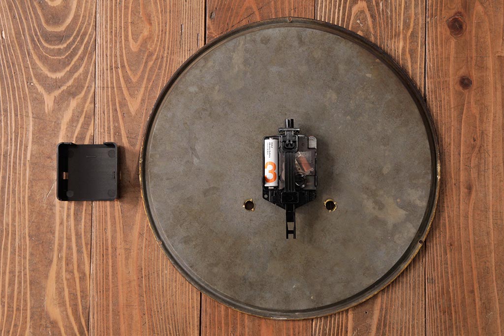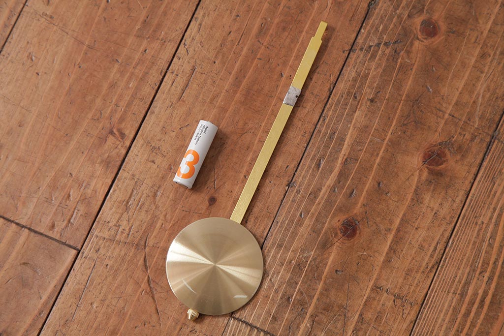 ムーブメントは新品の電池式に交換してあります。乾電池が付属します。振り子は飾りで、動きますが針と連動はしていません。