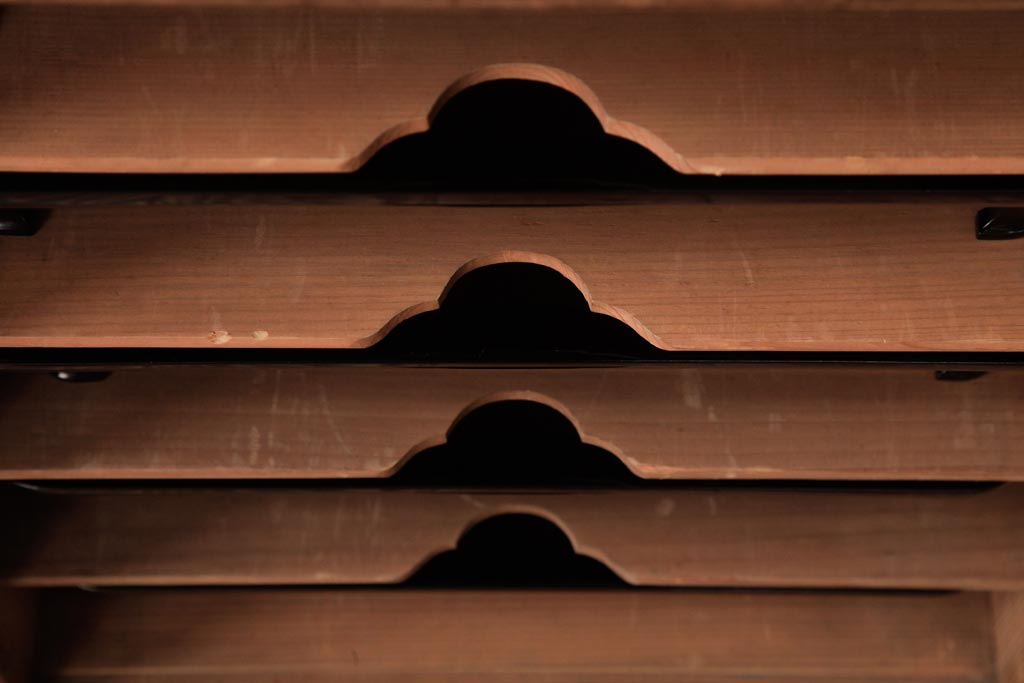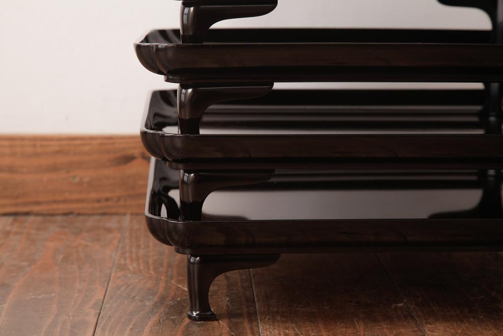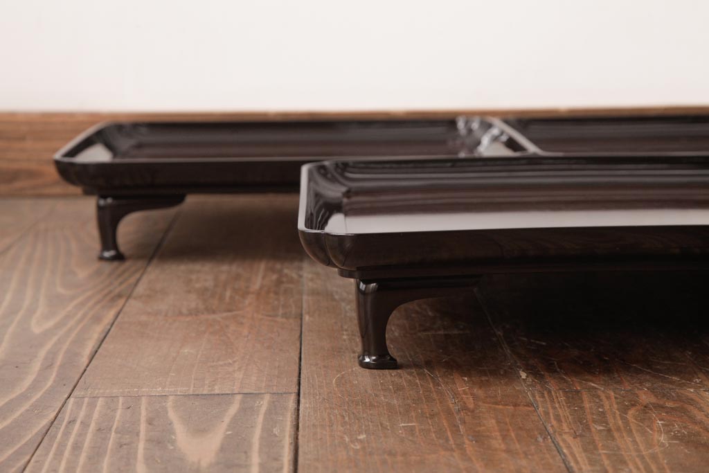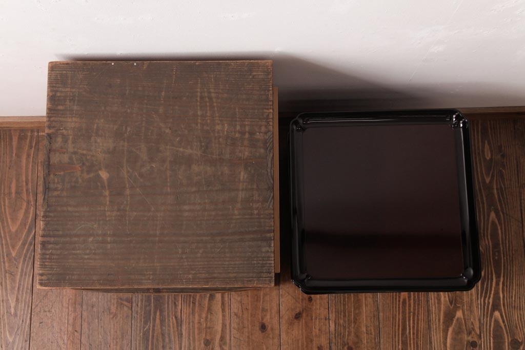 ラフジュ工房> 和食器・茶道具> お盆・お膳・お重 > アンティーク雑貨 鶴田双鶴銅 栗色香盆形木製膳5客セット・箱付き(お膳、漆器、脚付膳、和食器)(R-036260)