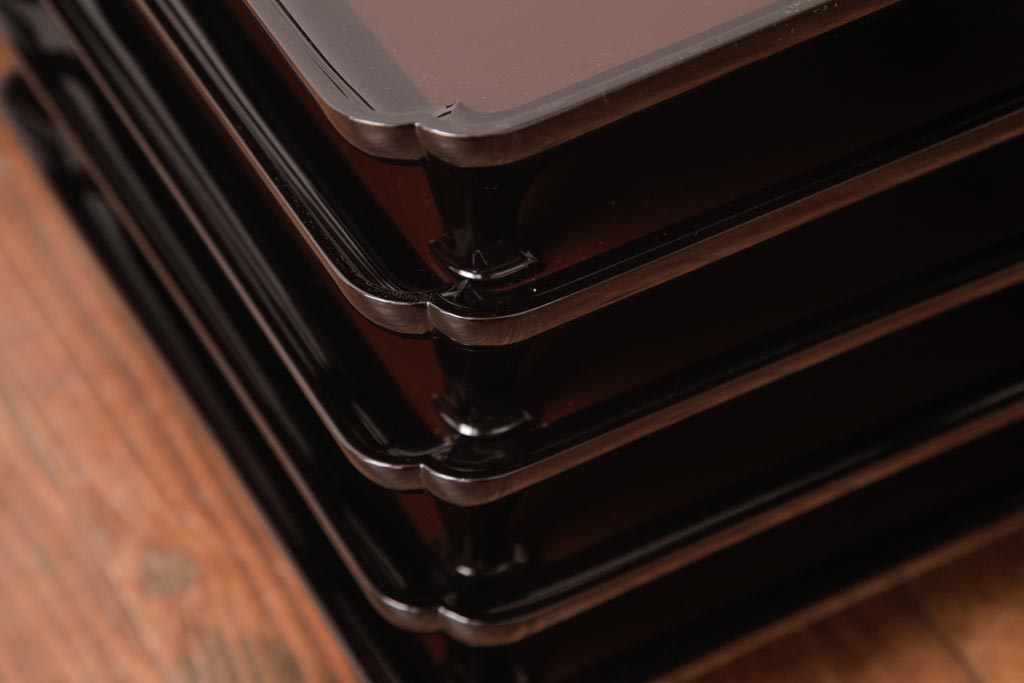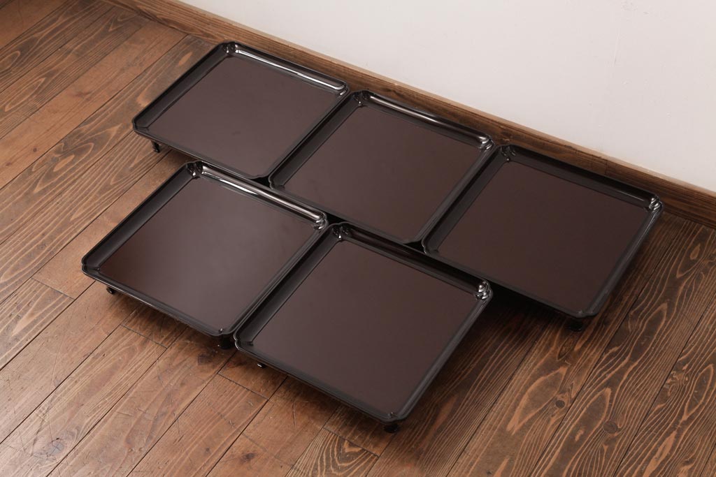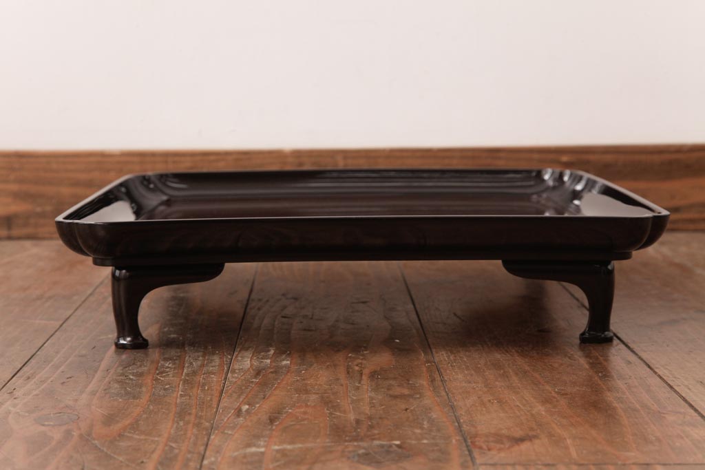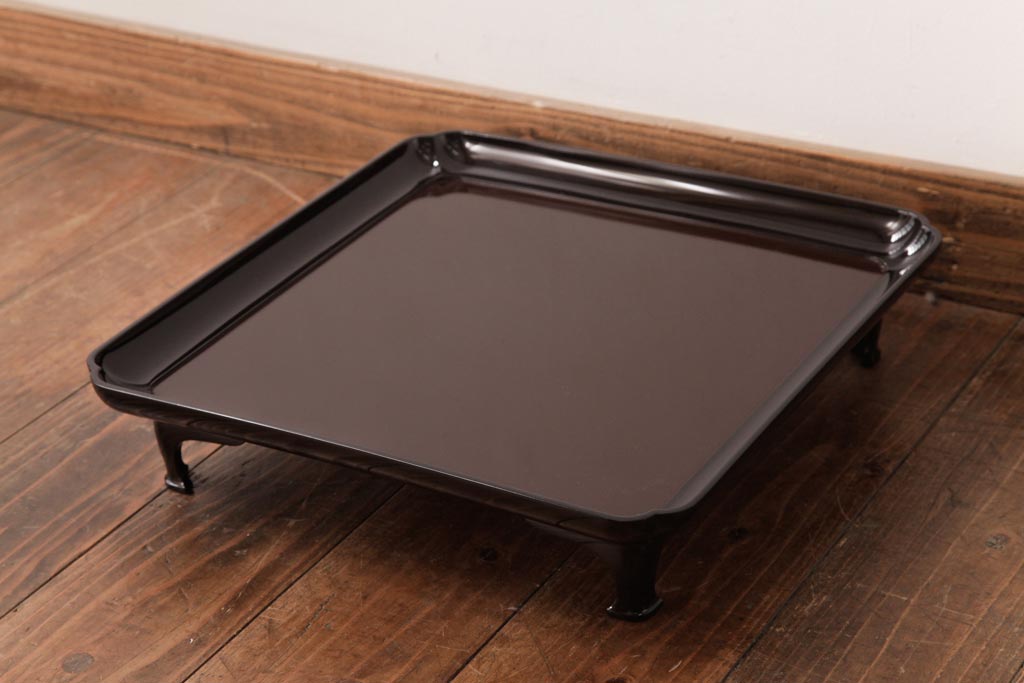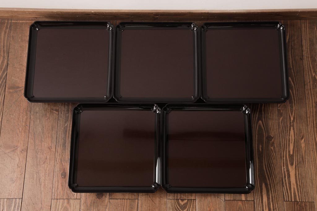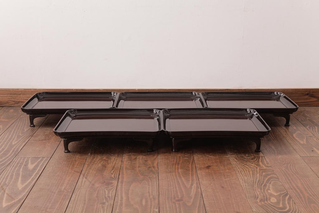 アンティーク雑貨 鶴田双鶴銅 栗色香盆形木製膳5客セット・箱付き(お膳、漆器、脚付膳、和食器)(R-036260)