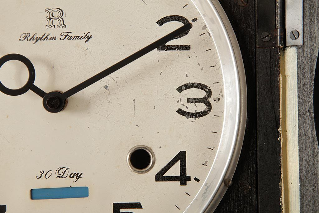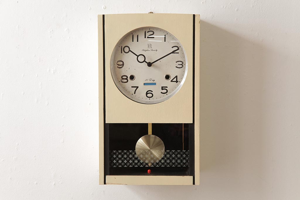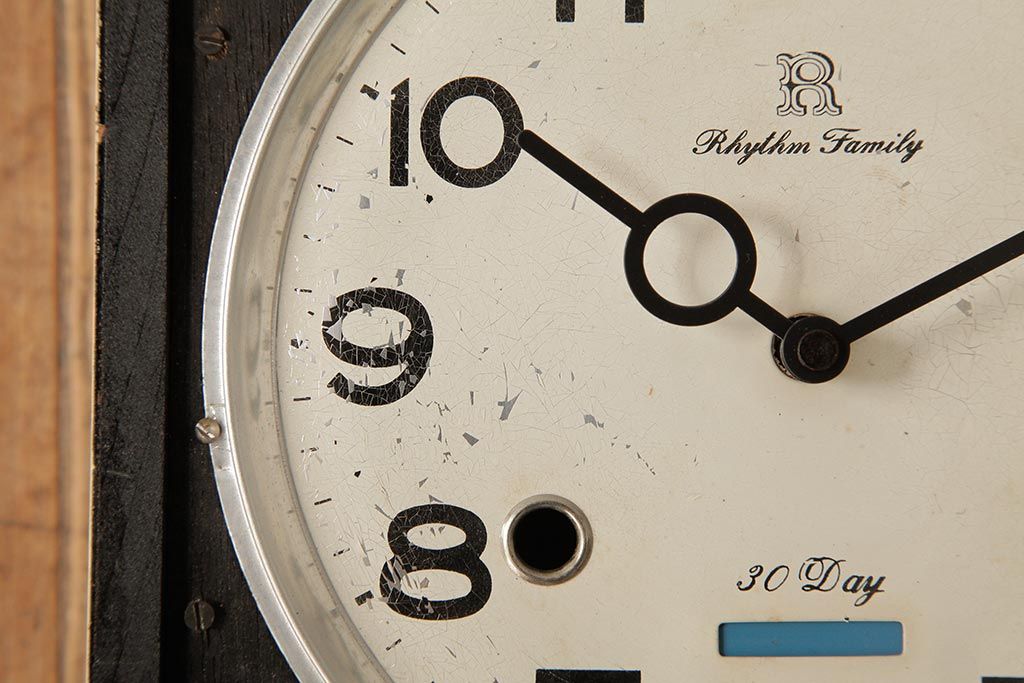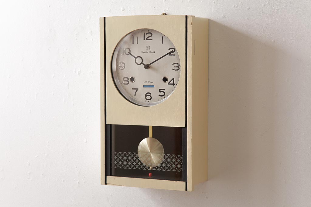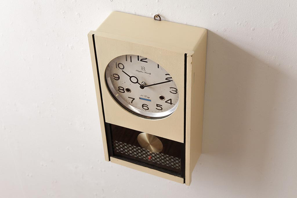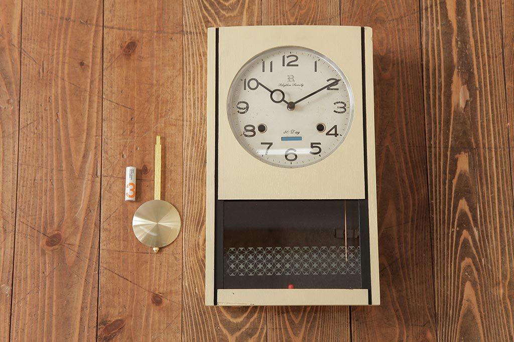 時計> 掛け時計 > レトロ雑貨 RHYTHM(リズム時計工業) 30DAY 電池式 レトロな雰囲気が魅力のペイント掛け時計(振り子時計、柱時計)(R-037666)
