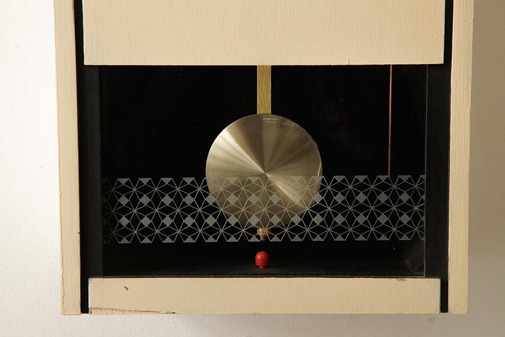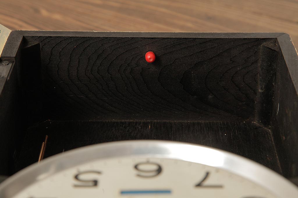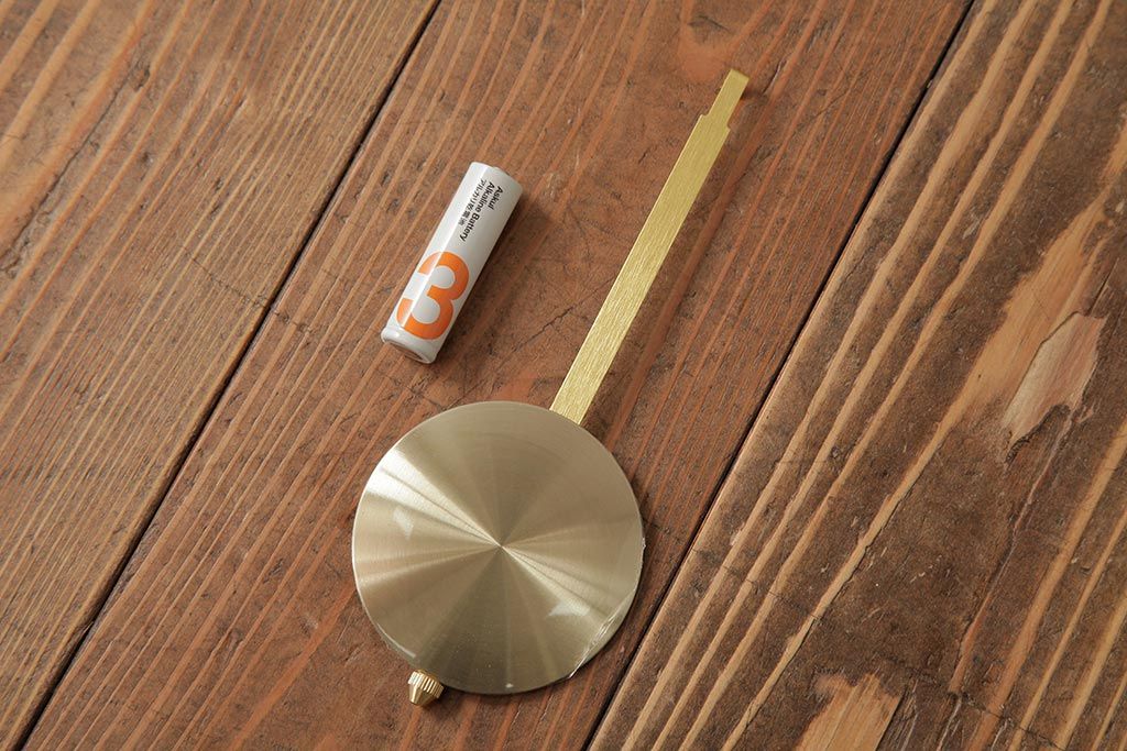 ムーブメントは新品の電池式に交換してあります。乾電池が付属します。振り子は飾りで、動きますが針と連動はしていません。