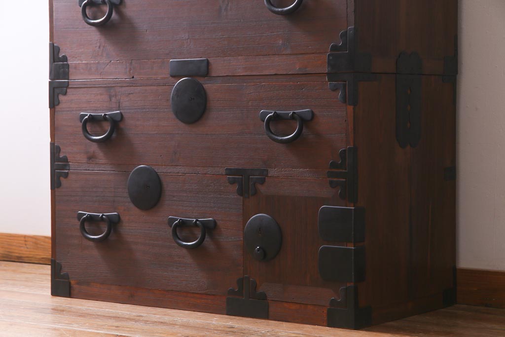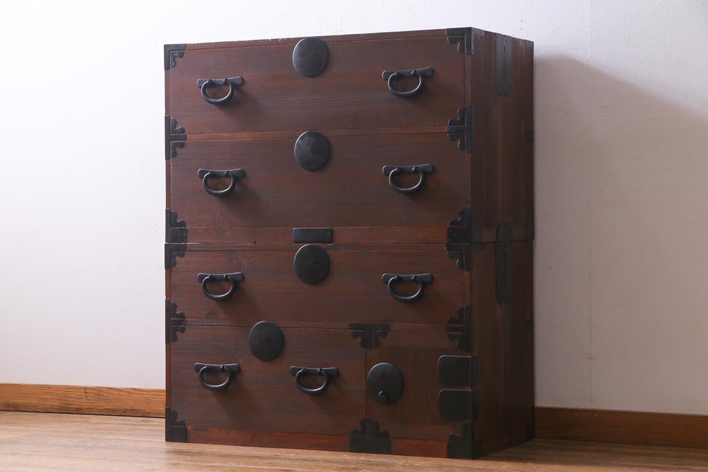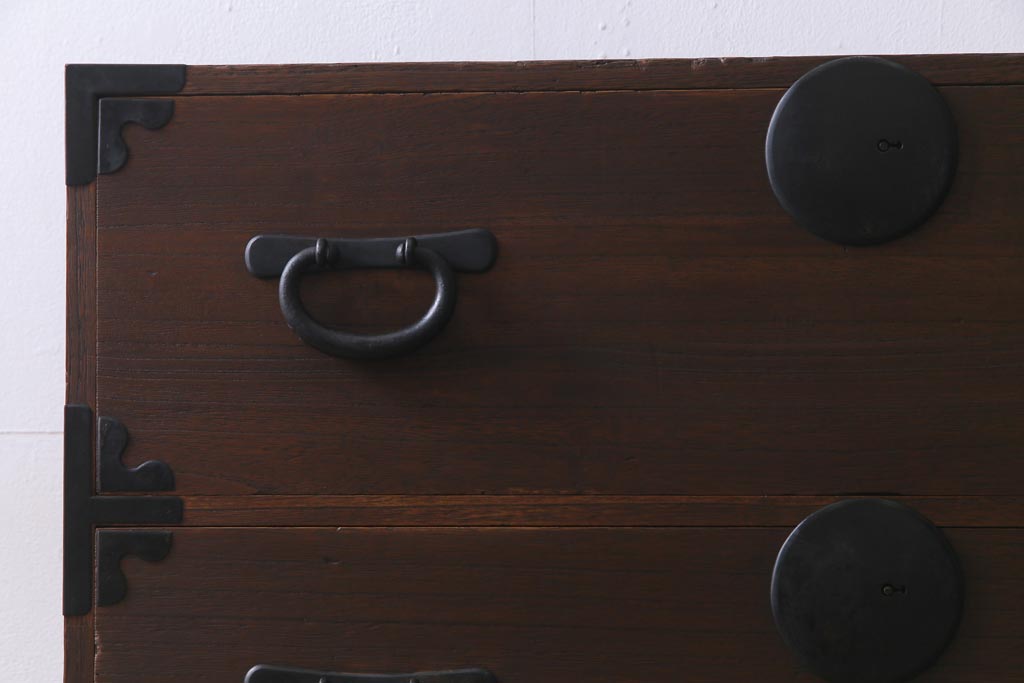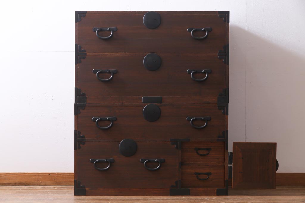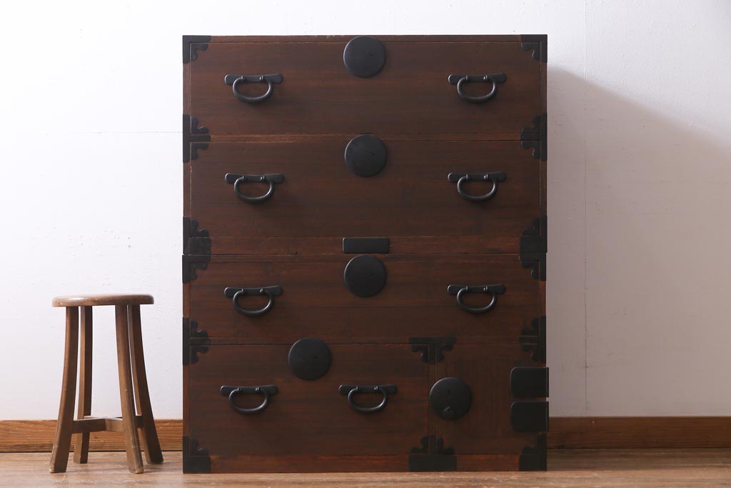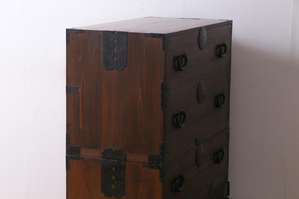 アンティーク家具 和製アンティーク 桐材・杉材 丸金具が目を引く重ね箪笥(衣装箪笥、和タンス、桐箪笥、桐たんす)(R-037706)