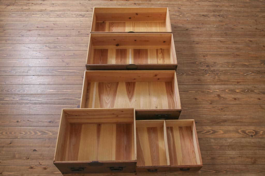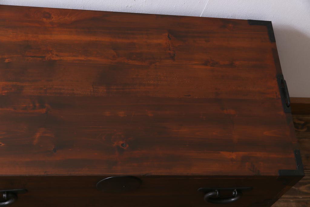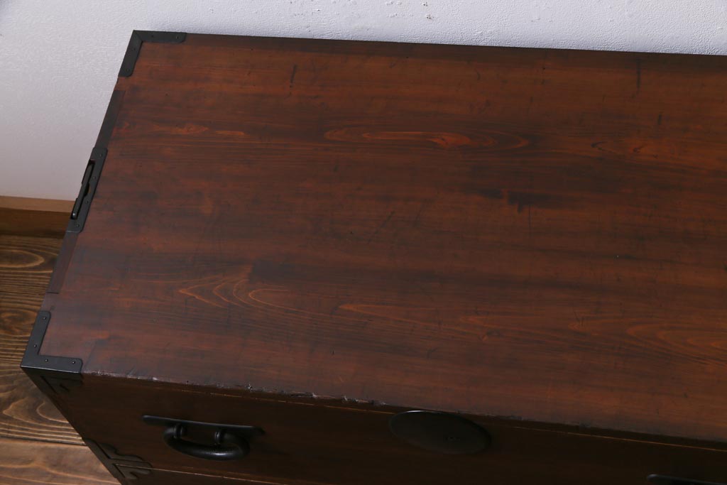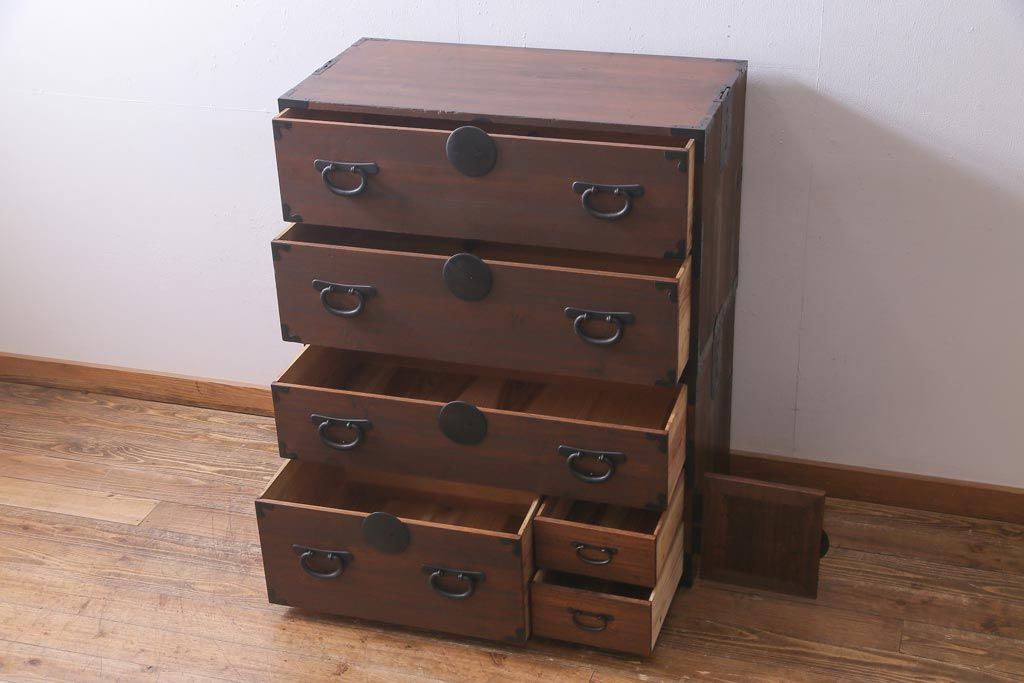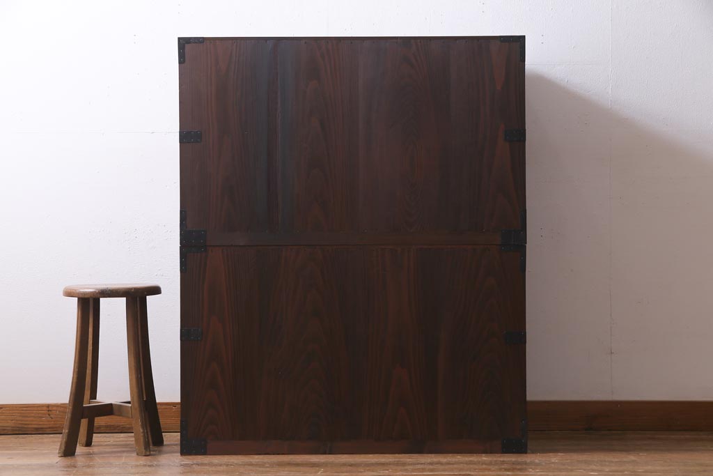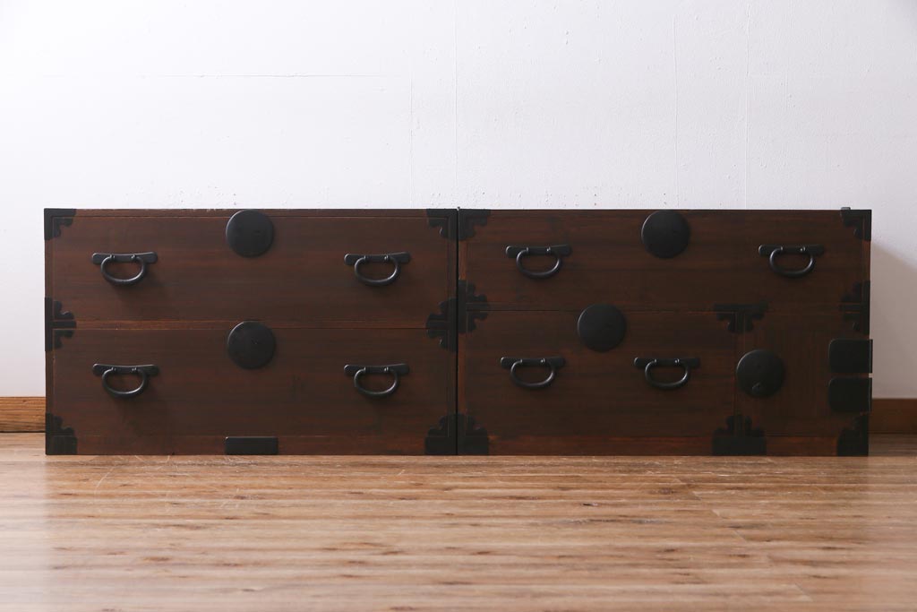 アンティーク家具 和製アンティーク 桐材・杉材 丸金具が目を引く重ね箪笥(衣装箪笥、和タンス、桐箪笥、桐たんす)(R-037706)