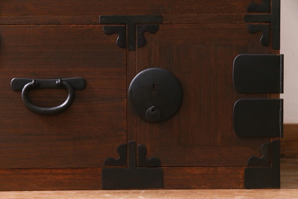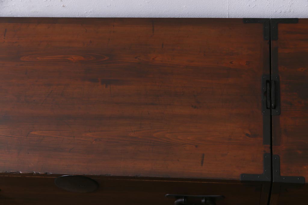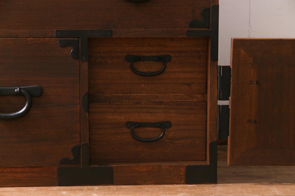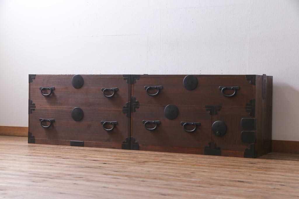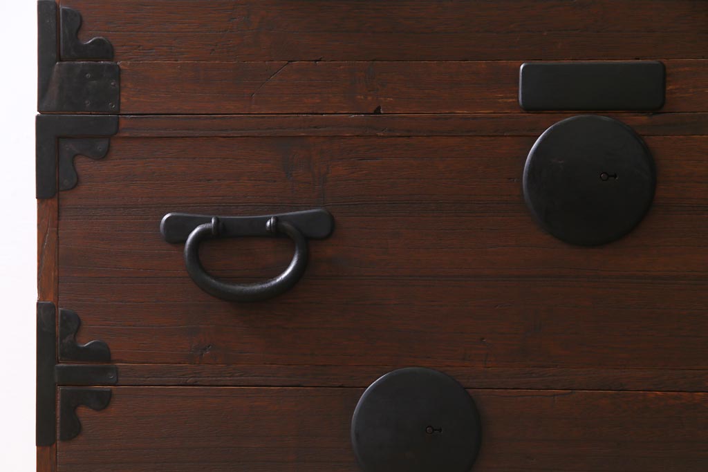 和箪笥 > アンティーク家具 和製アンティーク 桐材・杉材 丸金具が目を引く重ね箪笥(衣装箪笥、和タンス、桐箪笥、桐たんす)(R-037706)