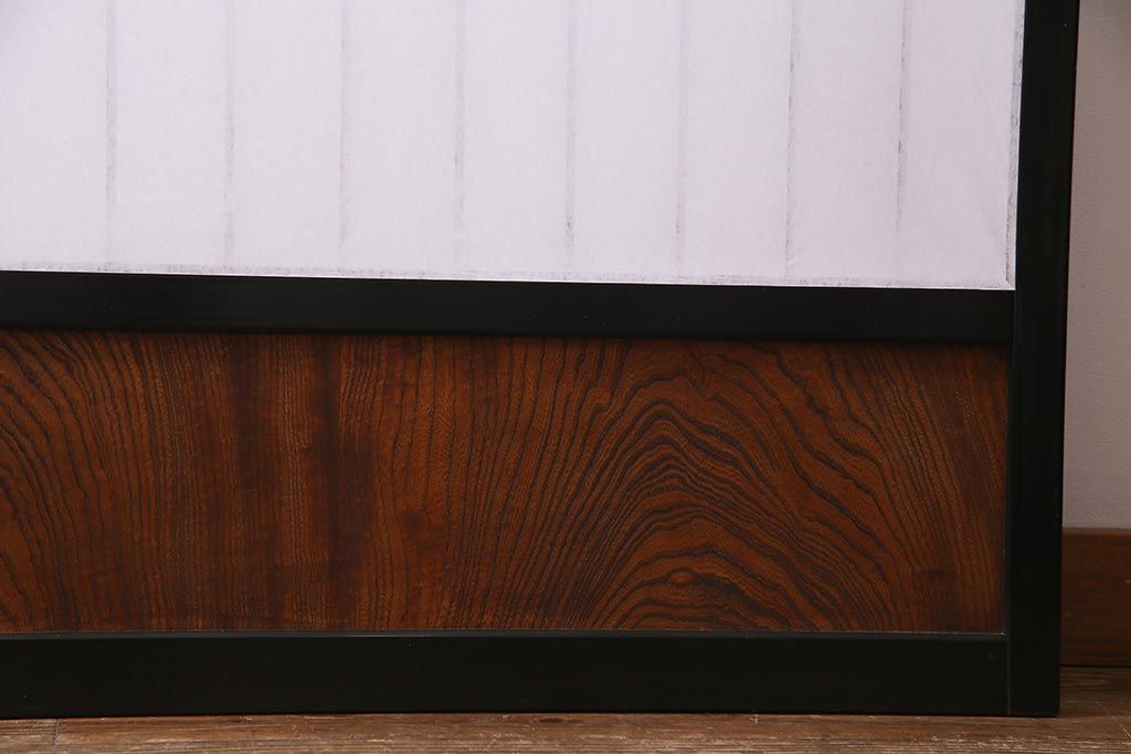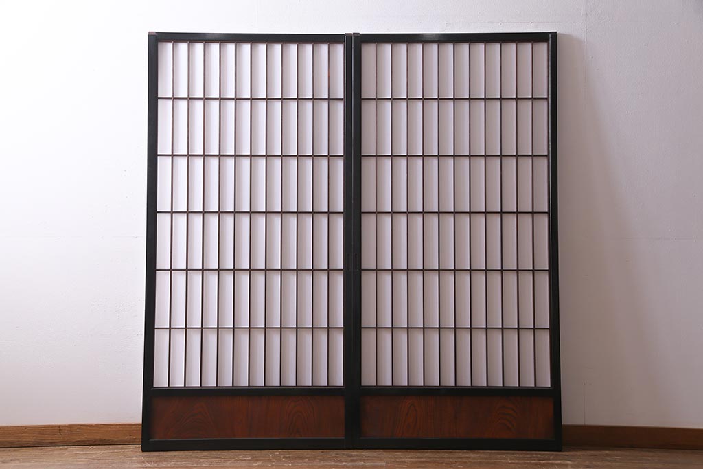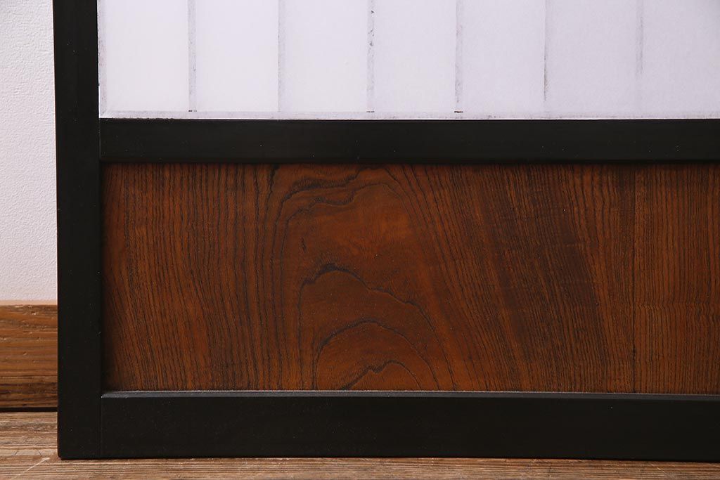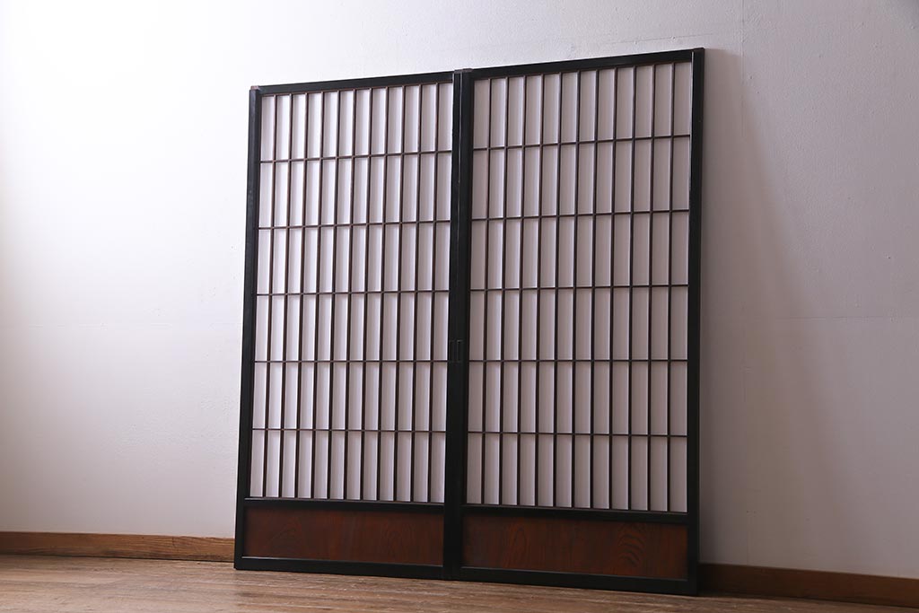アンティーク建具 腰板ケヤキ材 黒い縁取りが格好良い障子戸2枚セット(引き戸)(R-037741)
