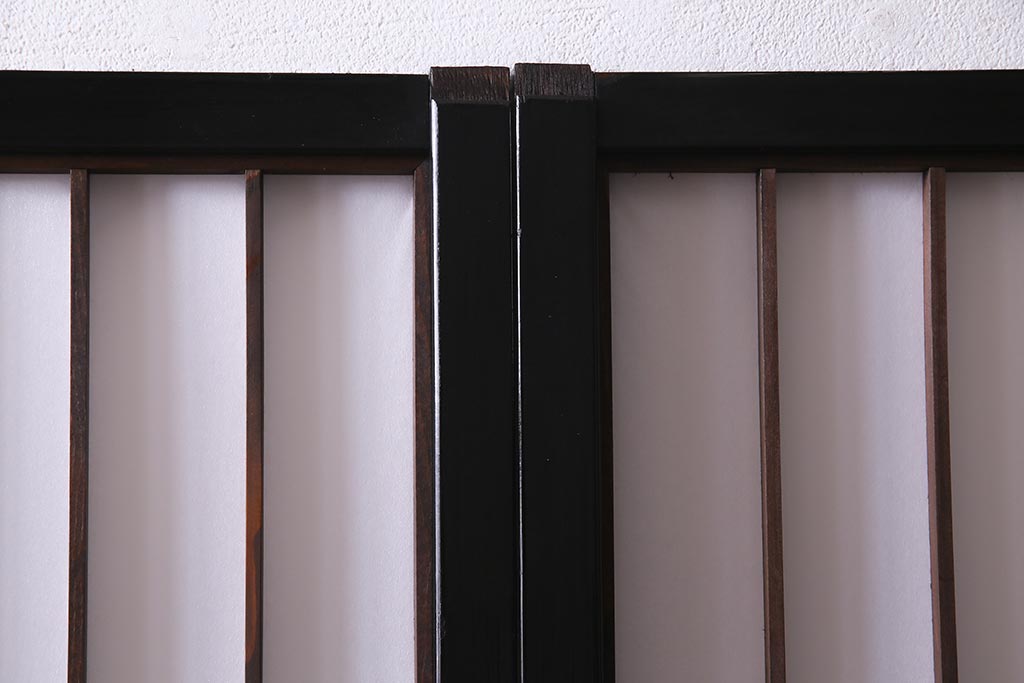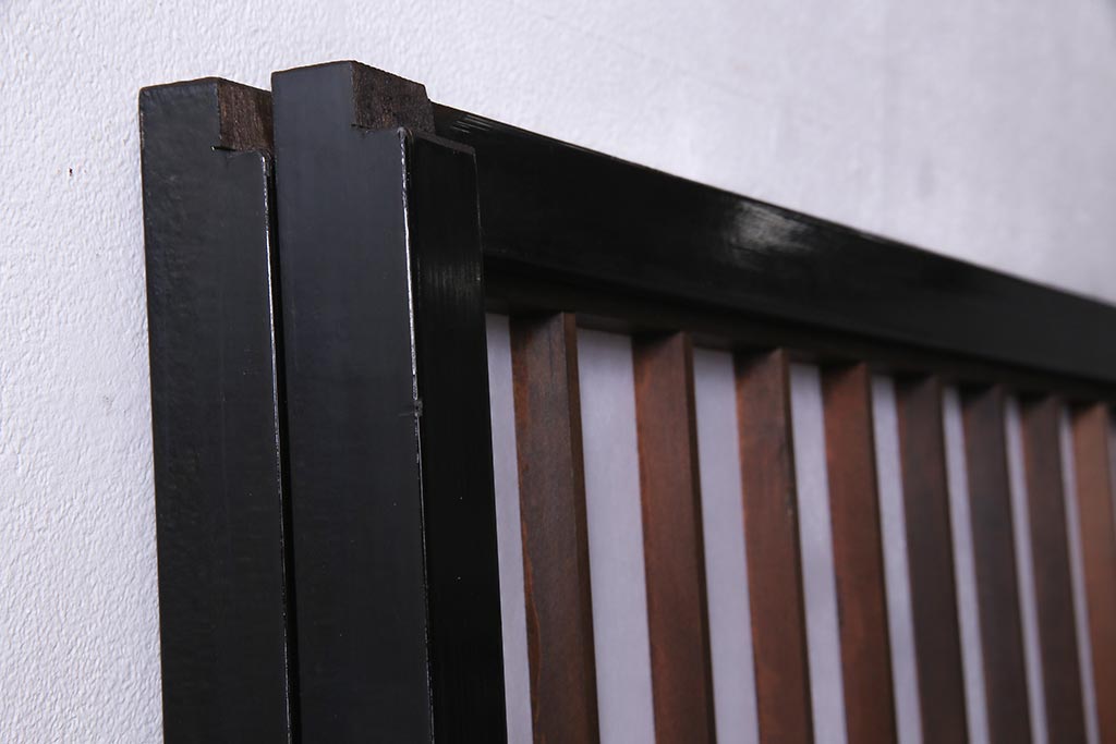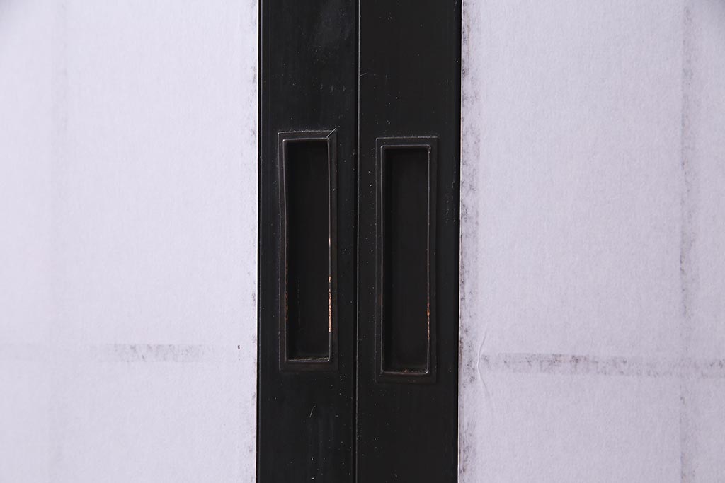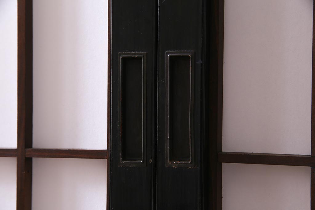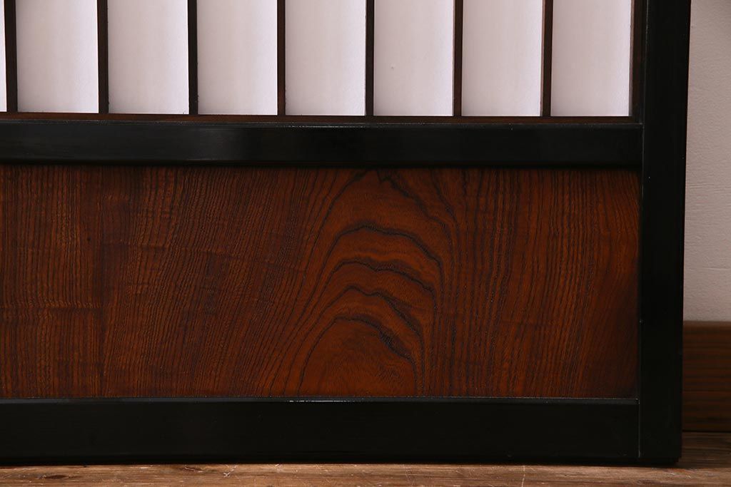アンティーク建具 腰板ケヤキ材 黒い縁取りが格好良い障子戸2枚セット(引き戸)(R-037741)