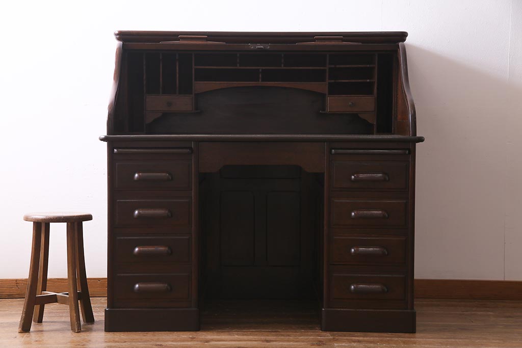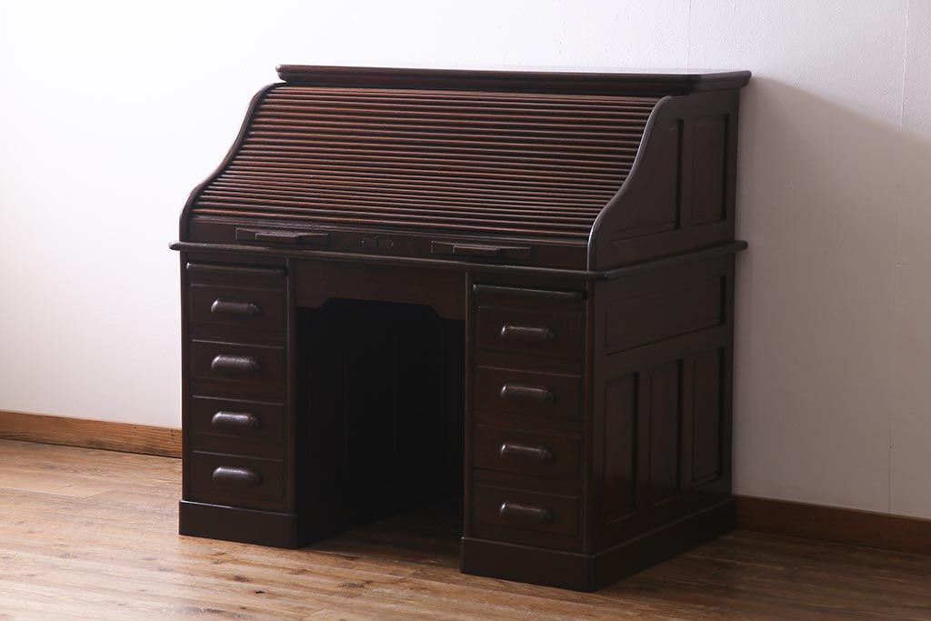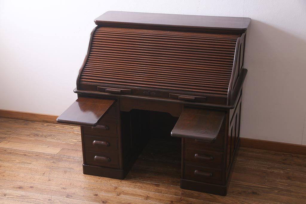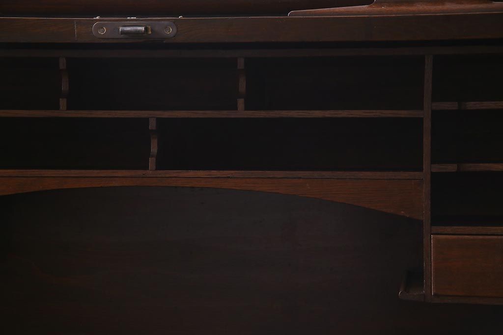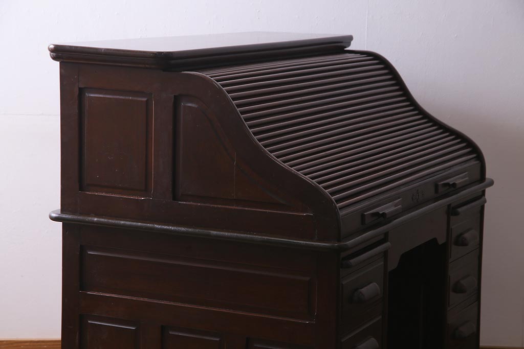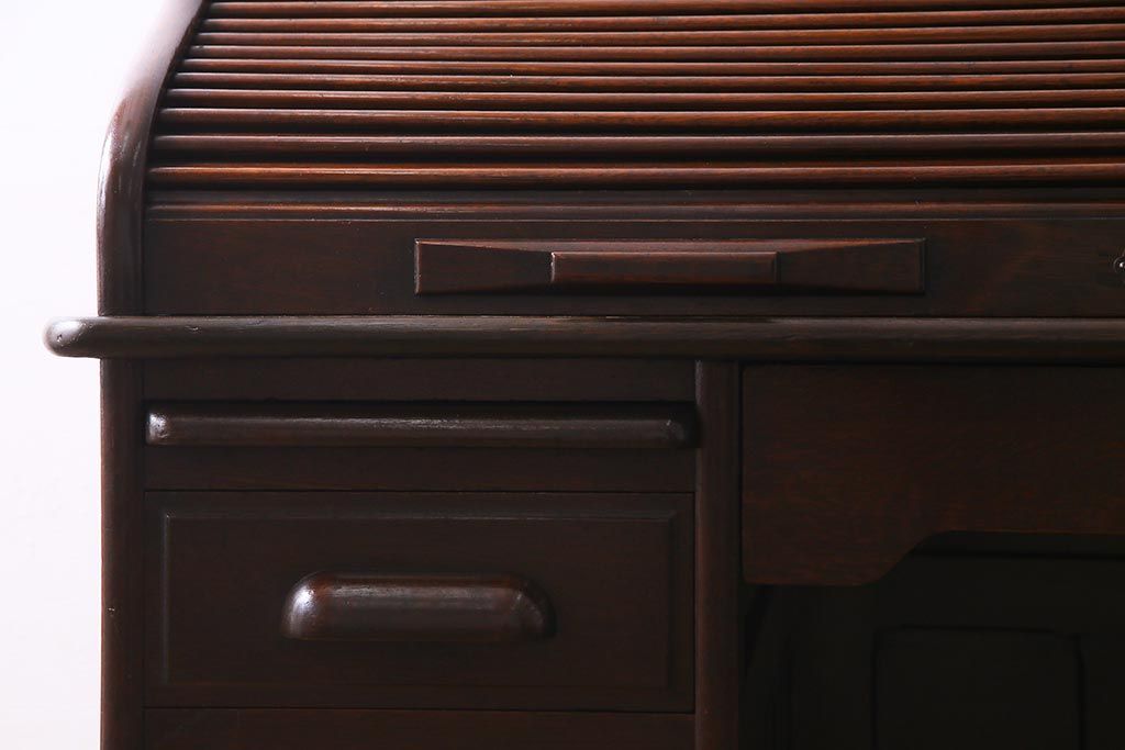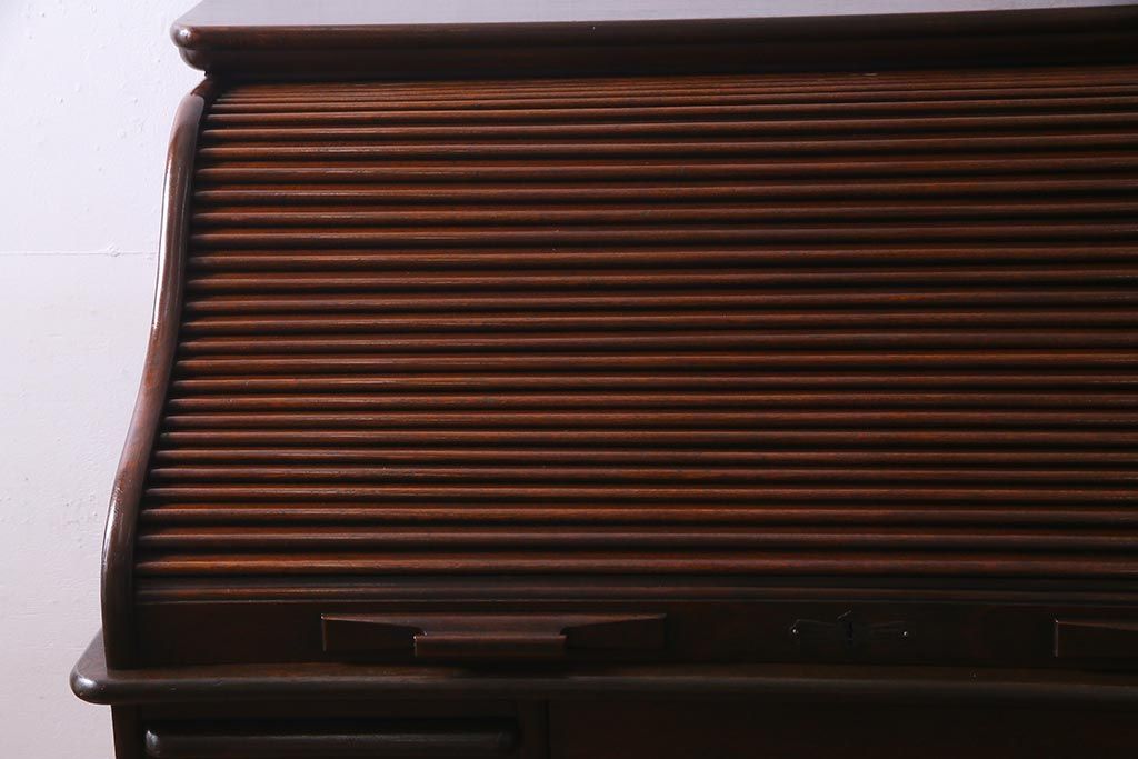アンティーク家具 ナラ材 大正ロマン香るシックな佇まいのロールトップデスク(両袖机)(R-037728)です。