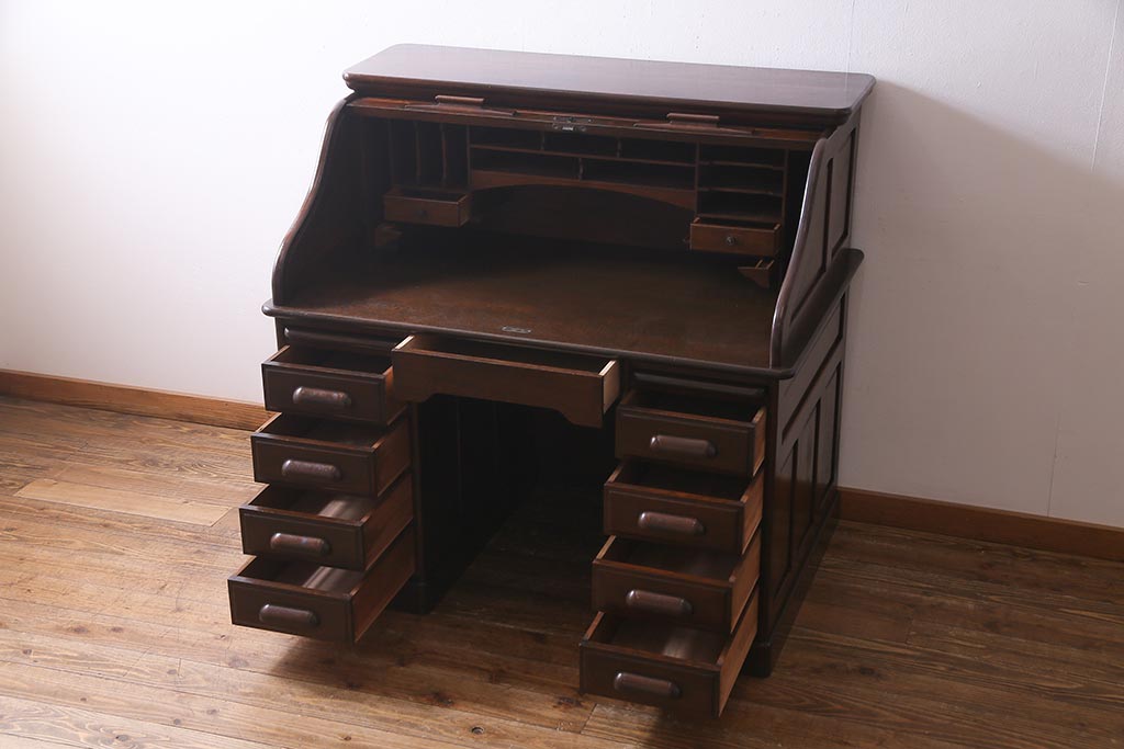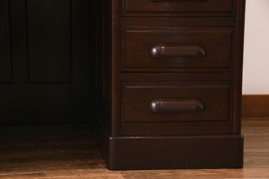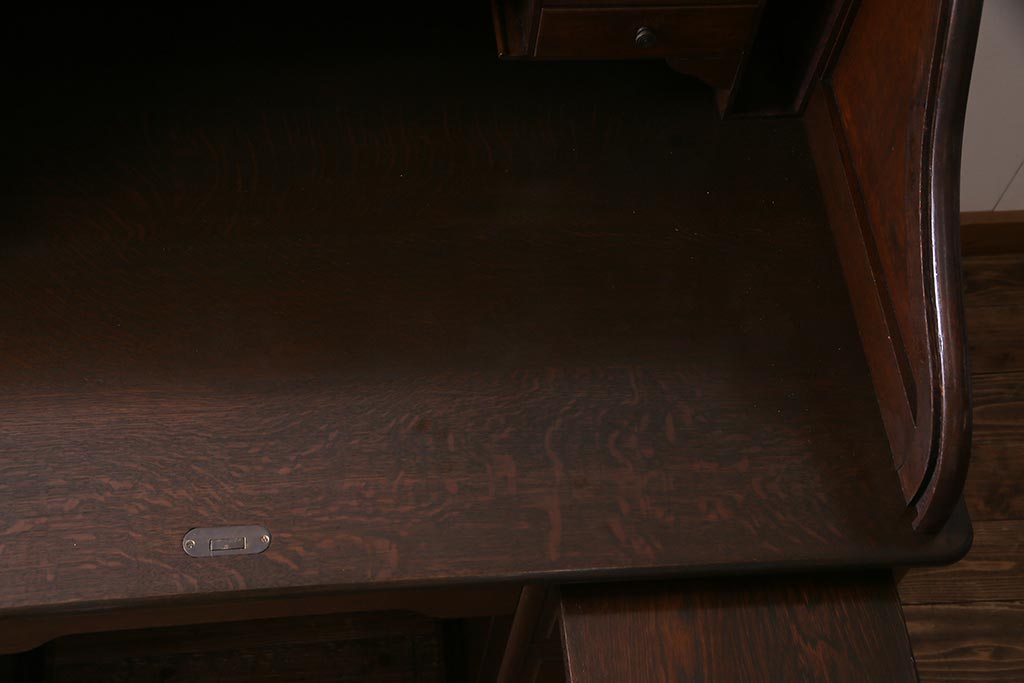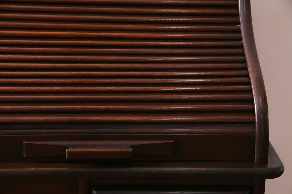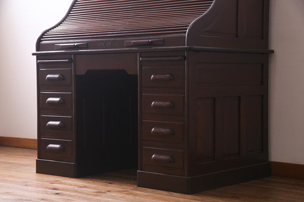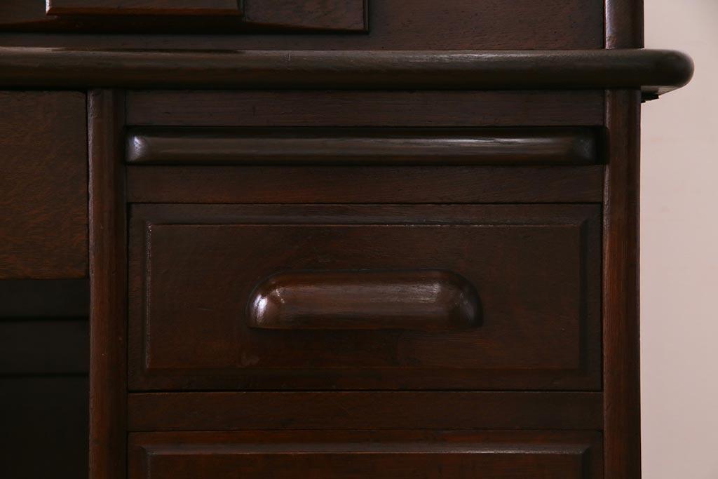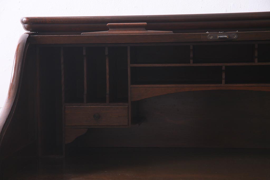 アンティーク家具 ナラ材 大正ロマン香るシックな佇まいのロールトップデスク(両袖机)(R-037728)です。