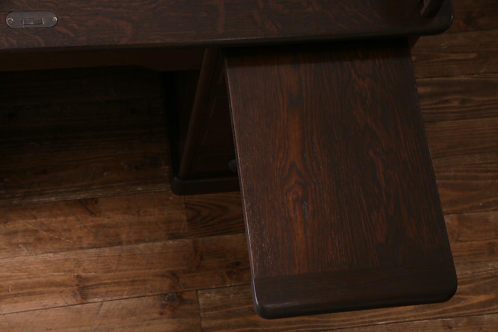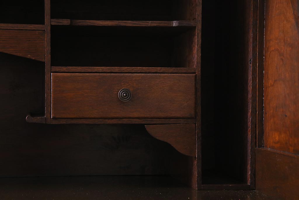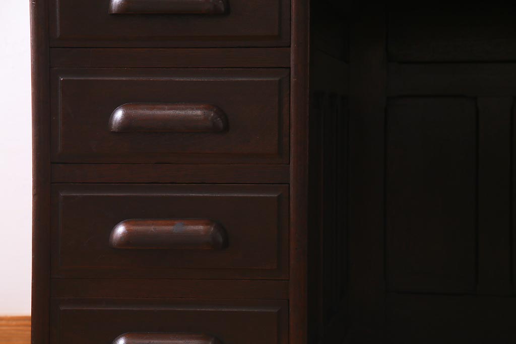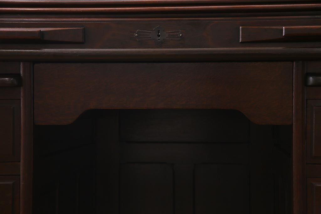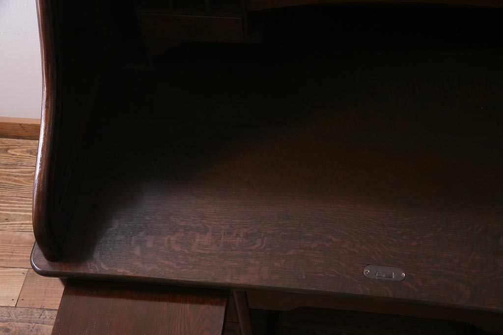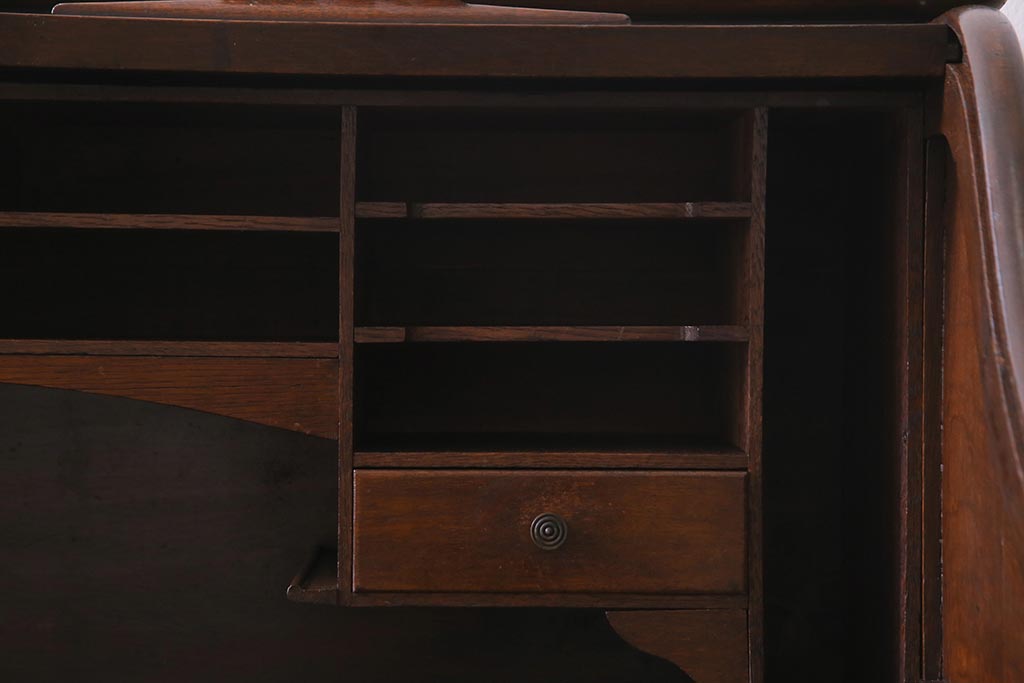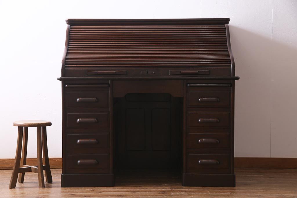アンティーク家具 ナラ材 大正ロマン香るシックな佇まいのロールトップデスク(両袖机)(R-037728)です。