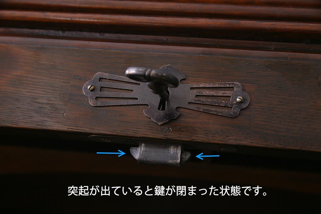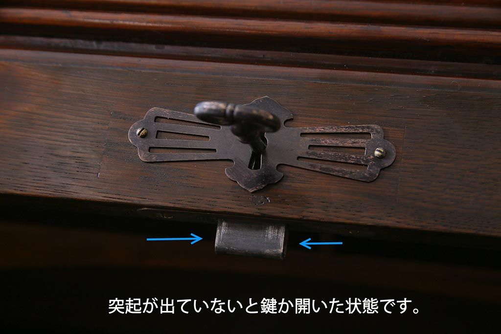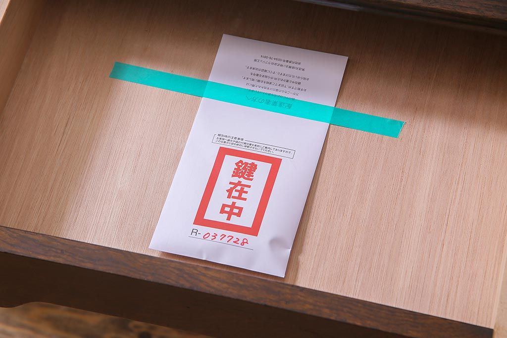 鍵は付属します。画像にありますように、袋に入れお付けします。スムーズに動くように調整していますが、あくまでも古いものや中古品ですので、長期の使用保証は出来かねます。ご購入後不具合が発生した場合は、当店でサポートさせていただきますので、お気軽にご相談くださいませ。