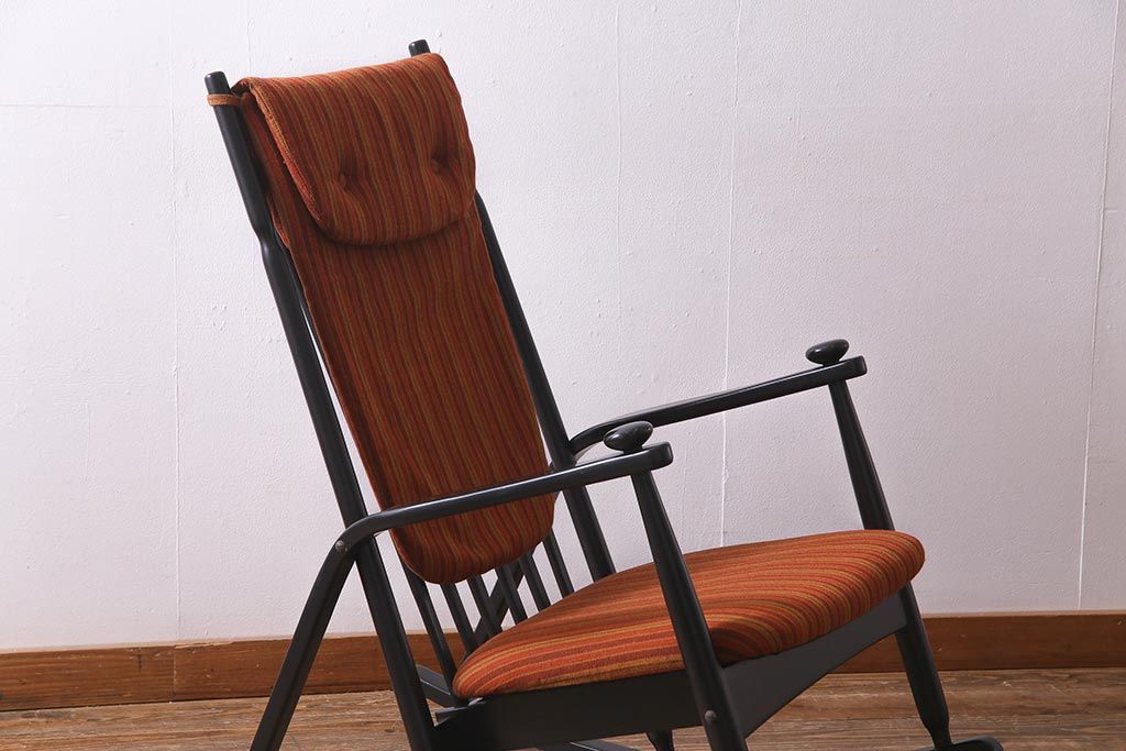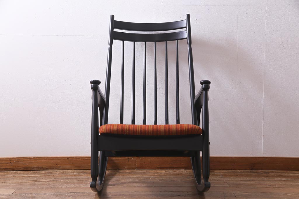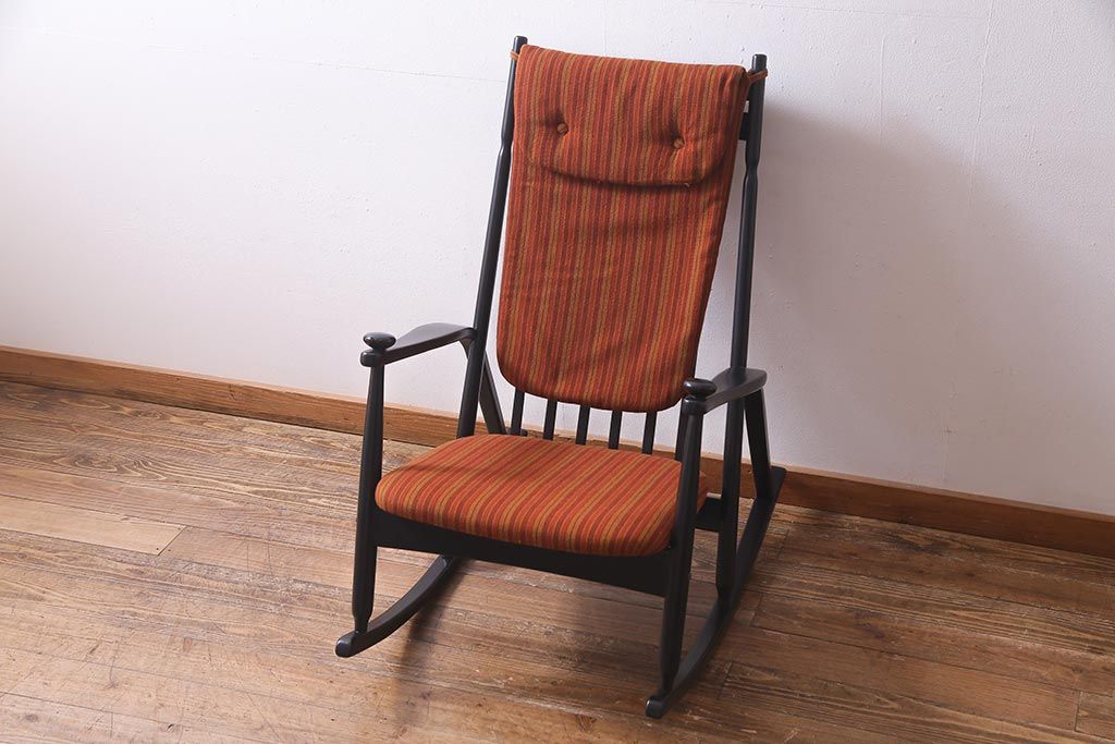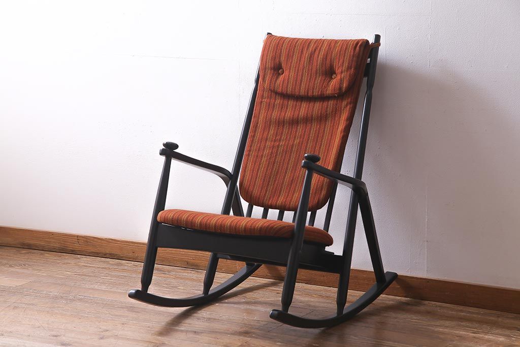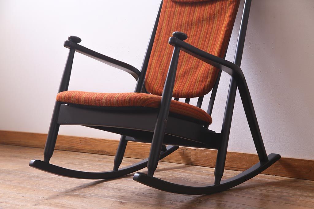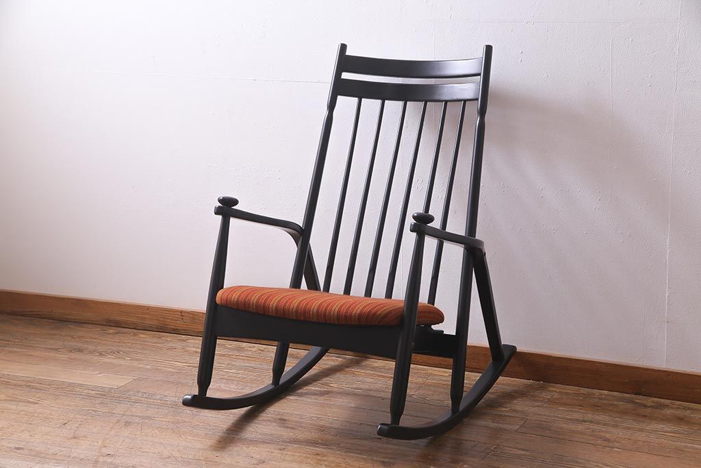 ビンテージ家具 和製ビンテージ レア!黒のフレームが目を引くレトロなロッキングチェア(R-037769)