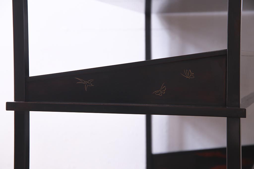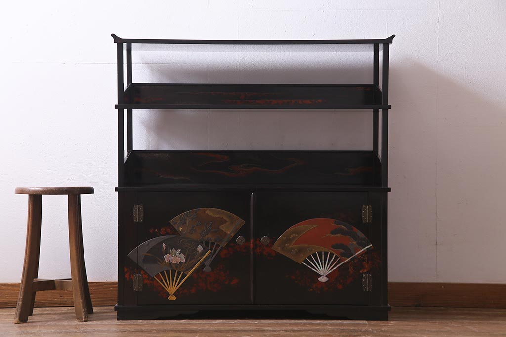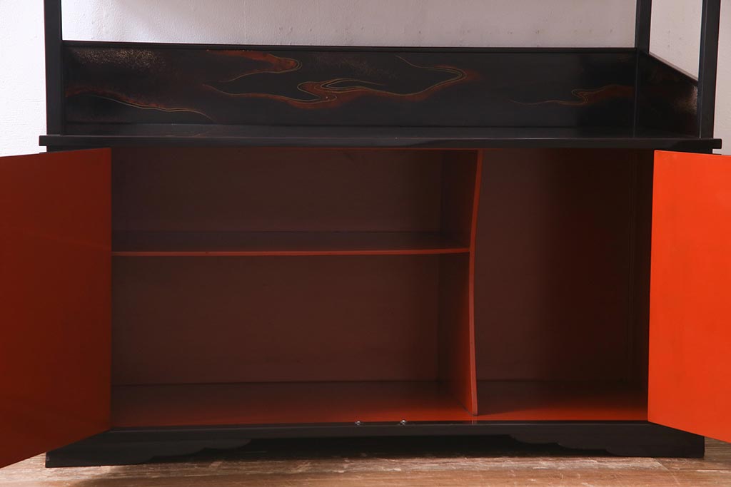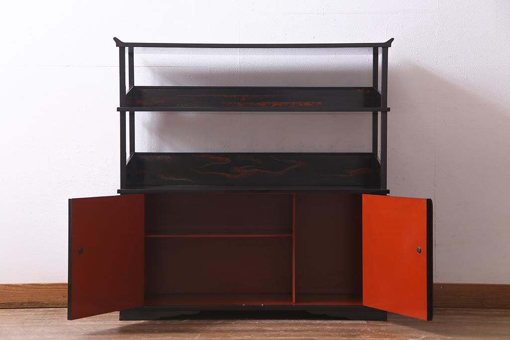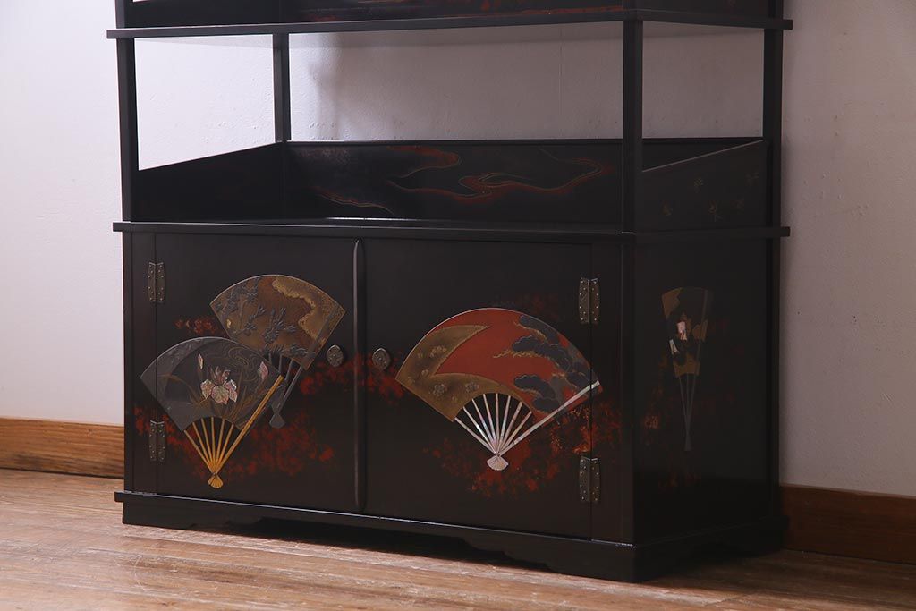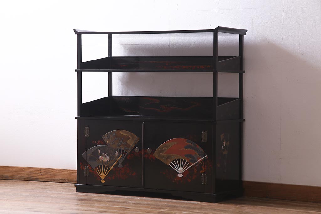 ビンテージ 国産工芸家具 漆塗り・螺鈿細工 上質な和の雰囲気漂う茶棚(飾り棚、収納棚)(R-037788)です。