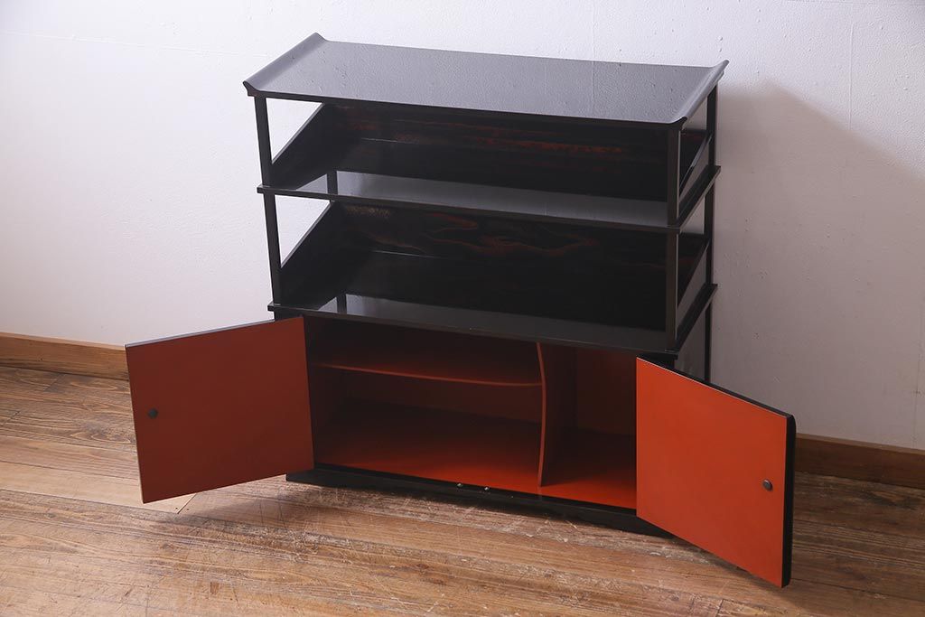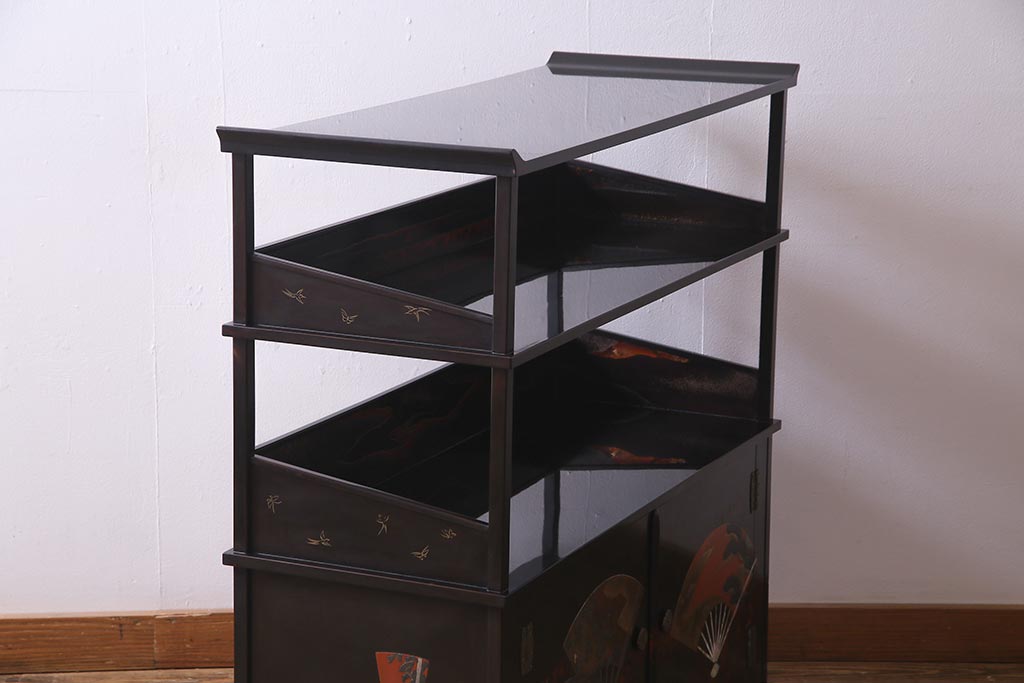 ビンテージ 国産工芸家具 漆塗り・螺鈿細工 上質な和の雰囲気漂う茶棚(飾り棚、収納棚、ヴィンテージ)(R-037788)