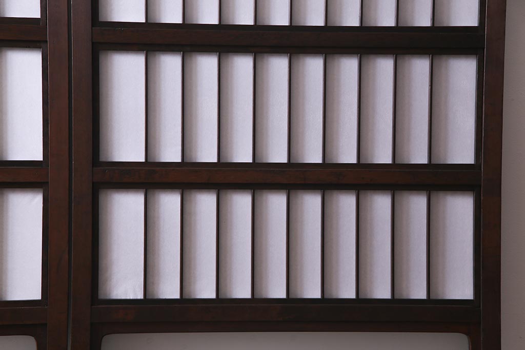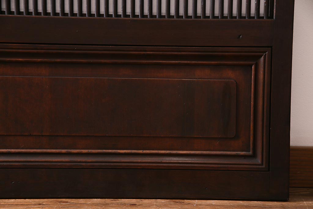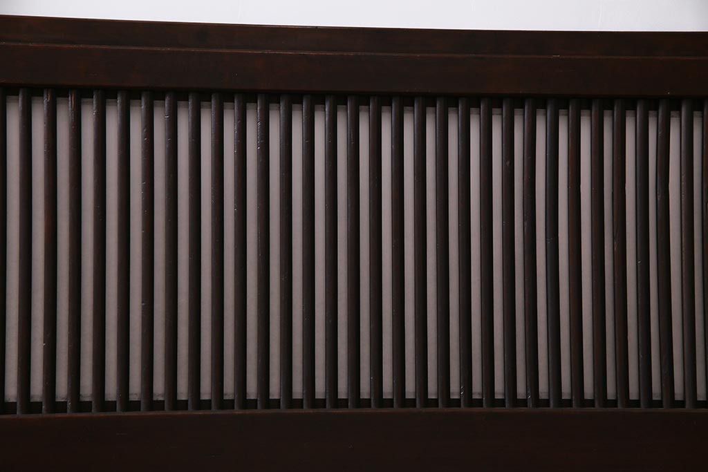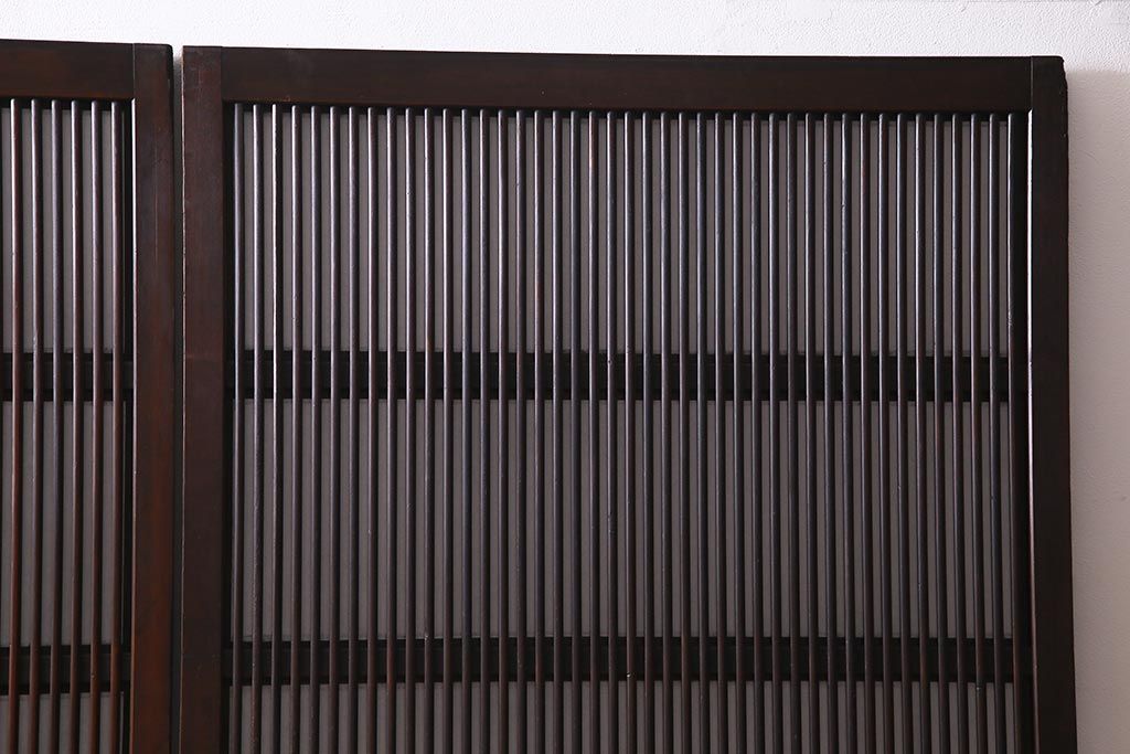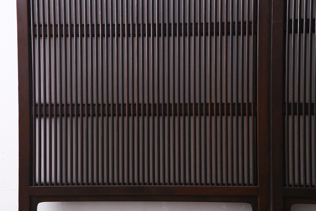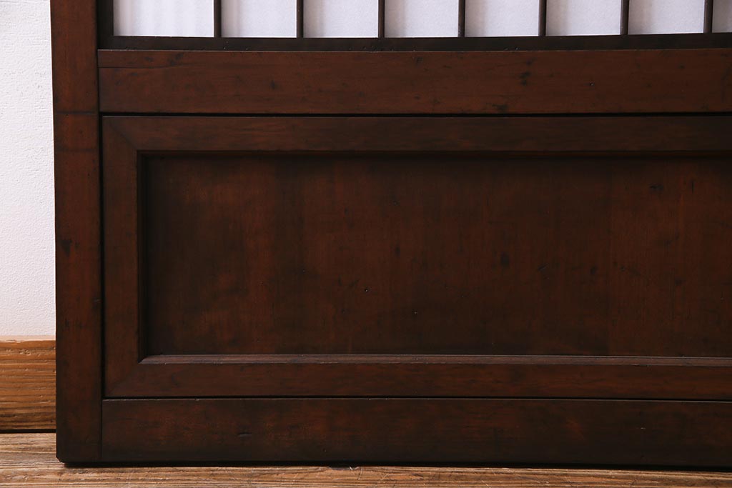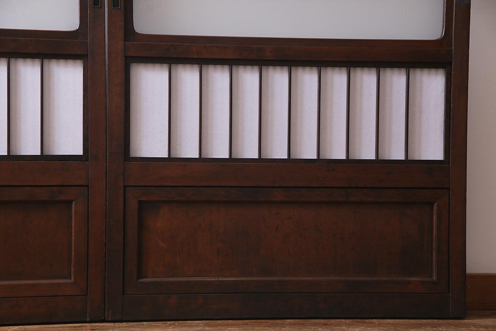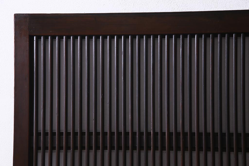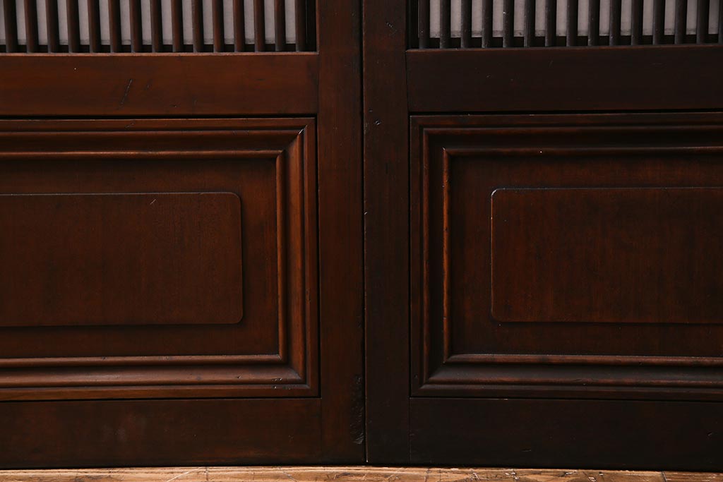 ドア・建具> 格子戸 > アンティーク建具 和製アンティーク 大正昭和初期 裏障子付き 小さな葉っぱ模様のガラスと細かな縦桟が目を引く格子戸2枚セット(引き戸、障子戸、建具)(R-037744)