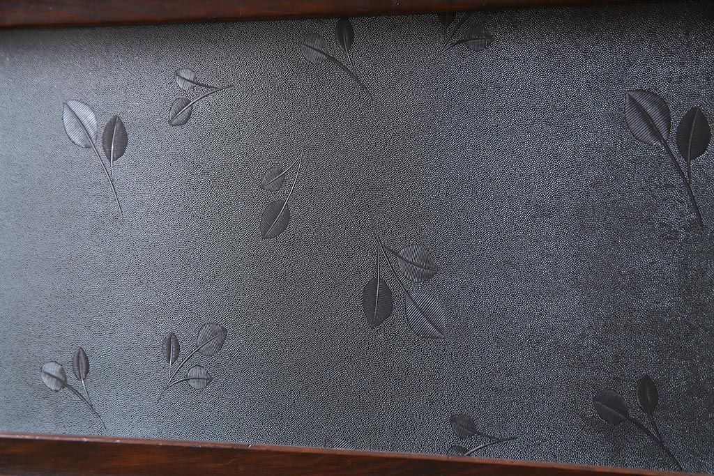 アンティーク建具 和製アンティーク 大正昭和初期 裏障子付き 小さな葉っぱ模様のガラスと細かな縦桟が目を引く格子戸2枚セット(引き戸、障子戸、帯戸、建具)(R-037744)です。