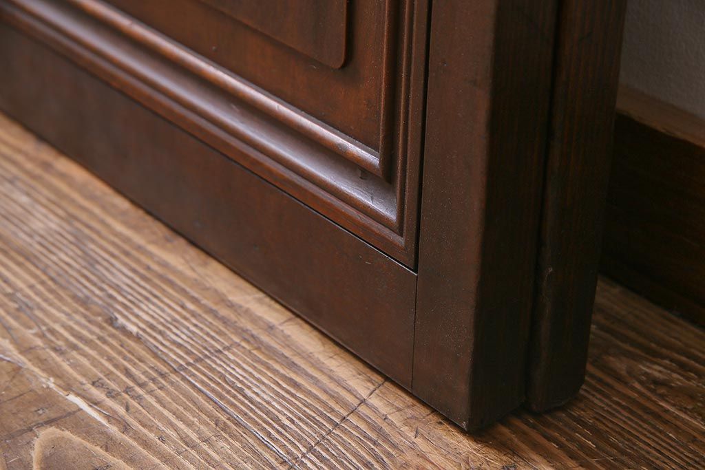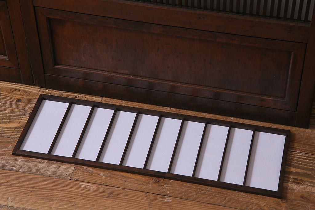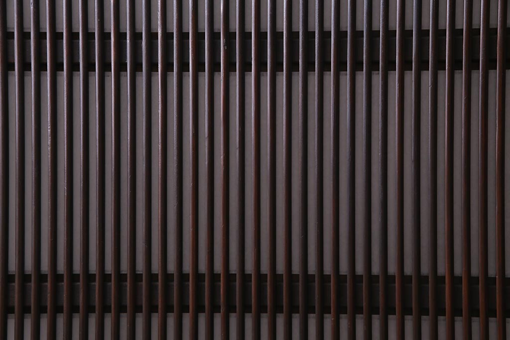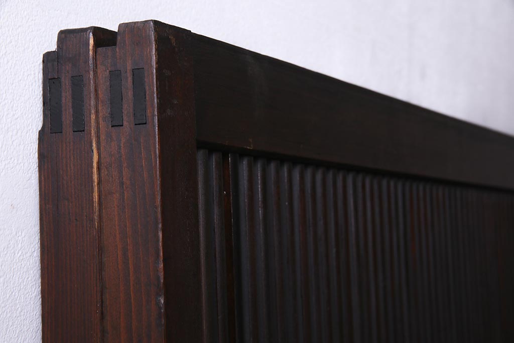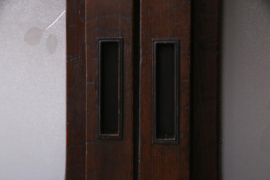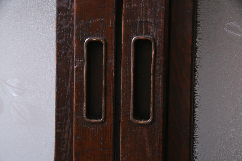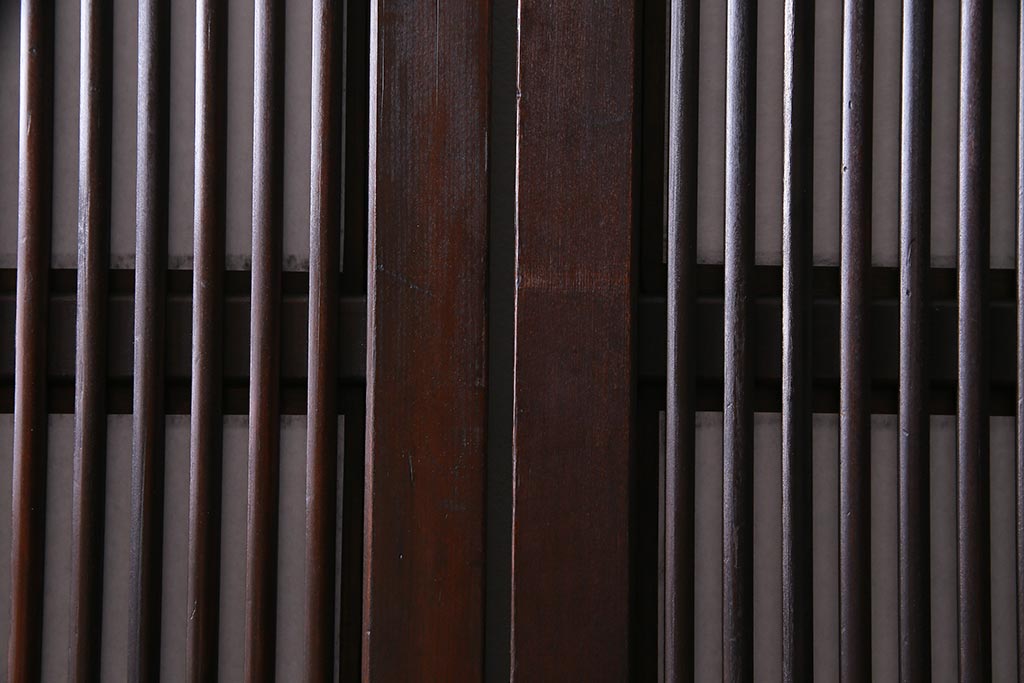 ドア・建具> 引き戸 > アンティーク建具 和製アンティーク 大正昭和初期 裏障子付き 小さな葉っぱ模様のガラスと細かな縦桟が目を引く格子戸2枚セット(引き戸、障子戸、建具)(R-037744)