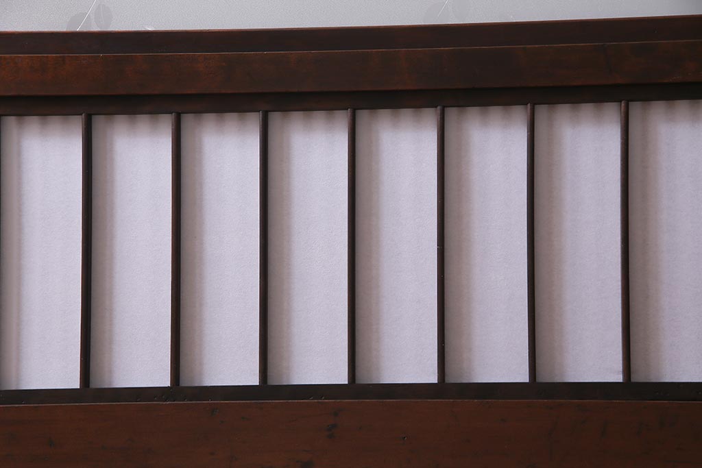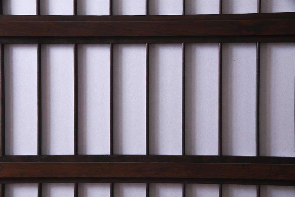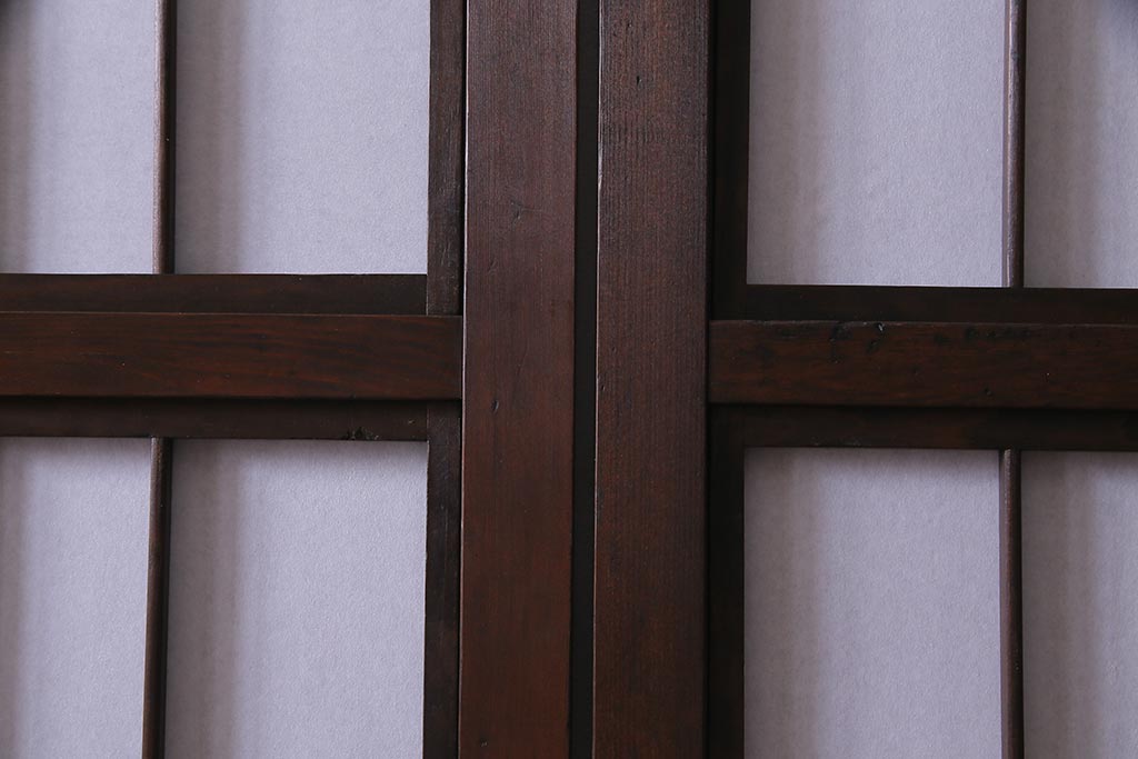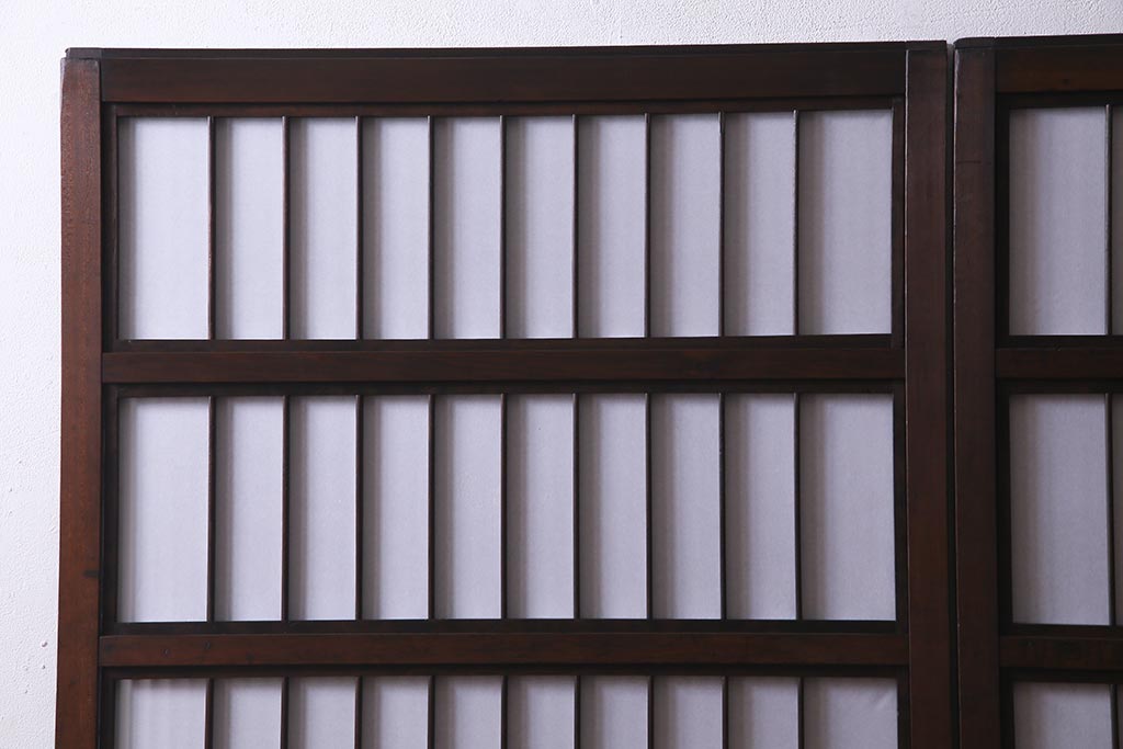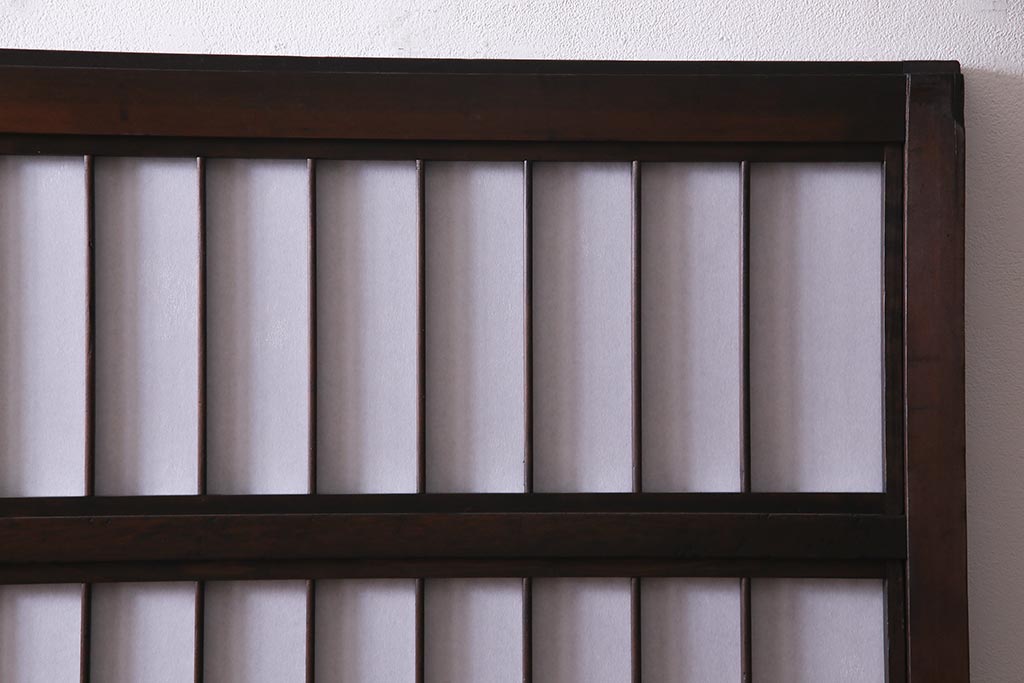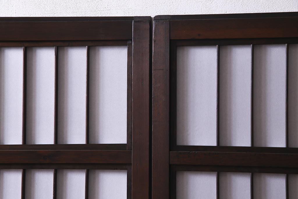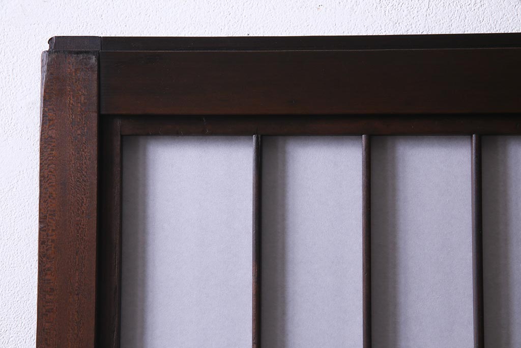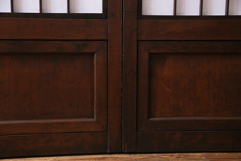 ドア・建具> 障子戸 > アンティーク建具 和製アンティーク 大正昭和初期 裏障子付き 小さな葉っぱ模様のガラスと細かな縦桟が目を引く格子戸2枚セット(引き戸、障子戸、建具)(R-037744)